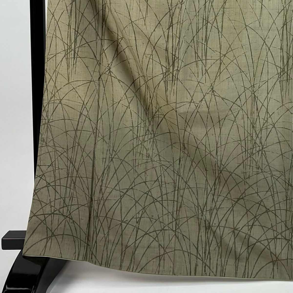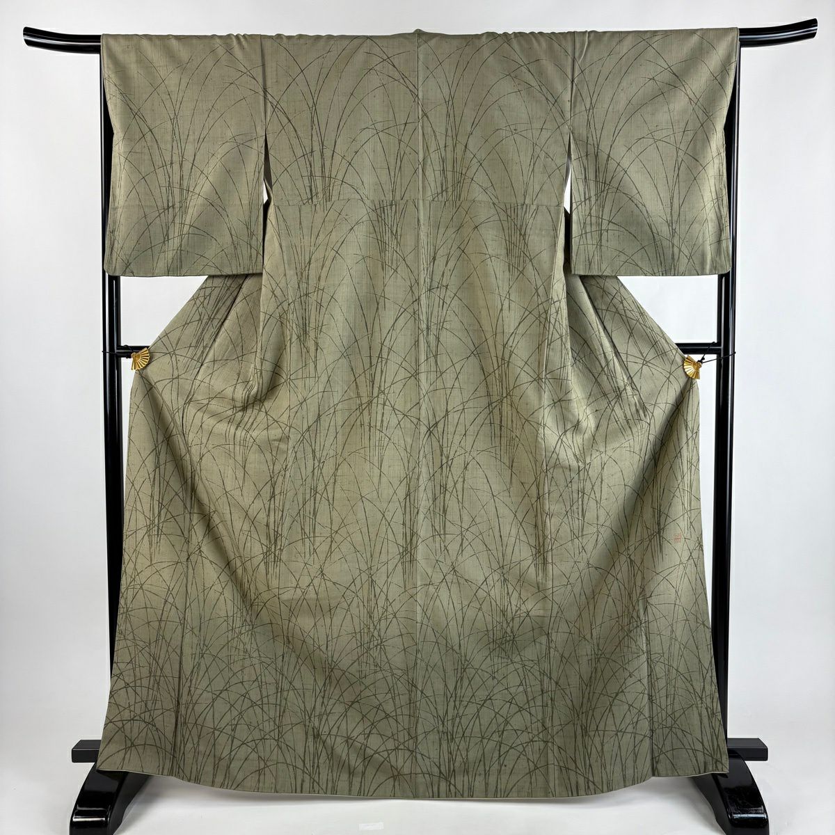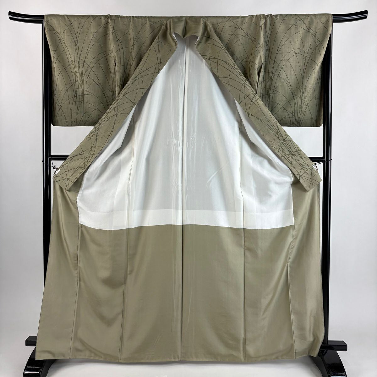 50%OFF 付下げ 身丈168cm 裄丈67.5cm L 袷 紬地 落款あり 葉 灰緑 正絹 秀品 K50