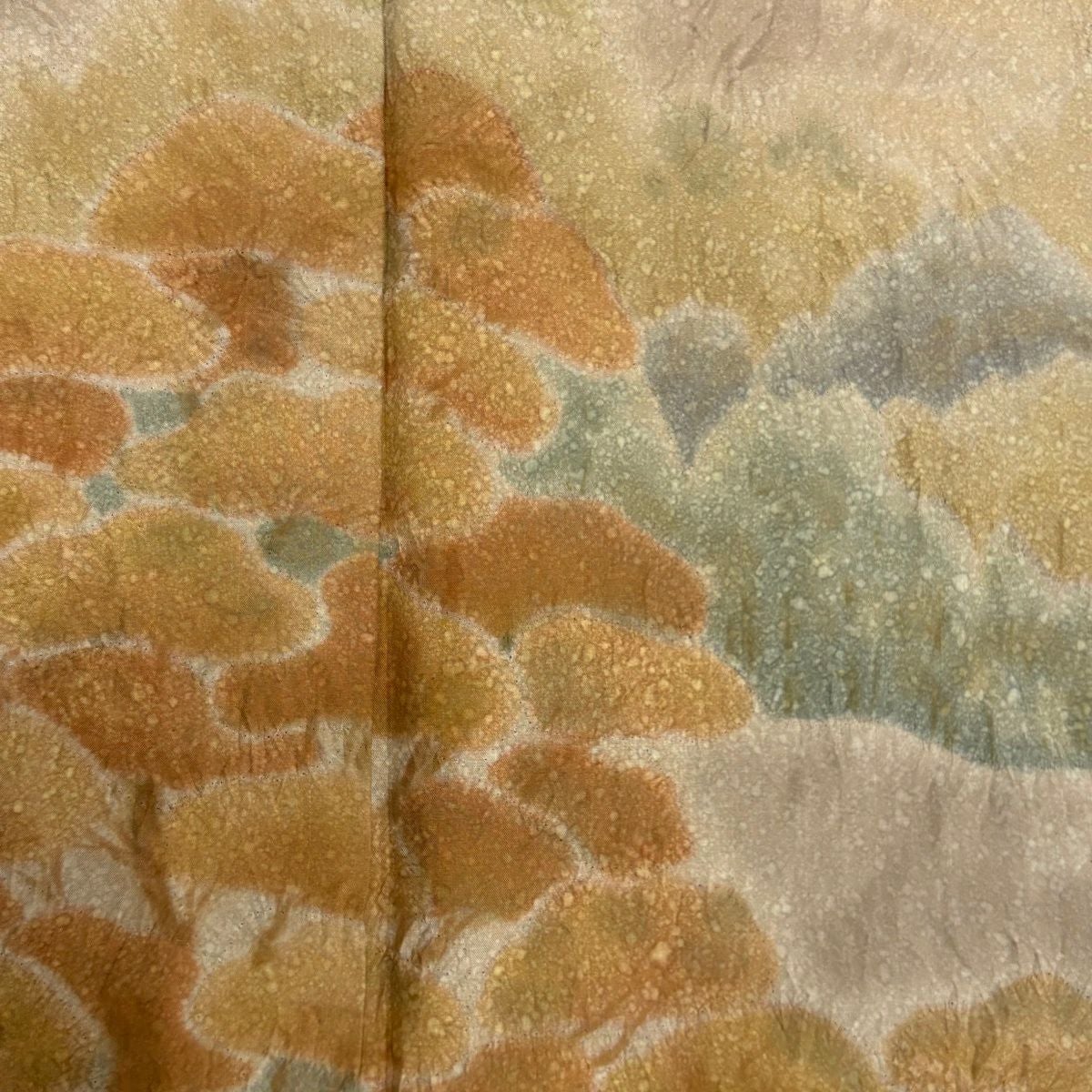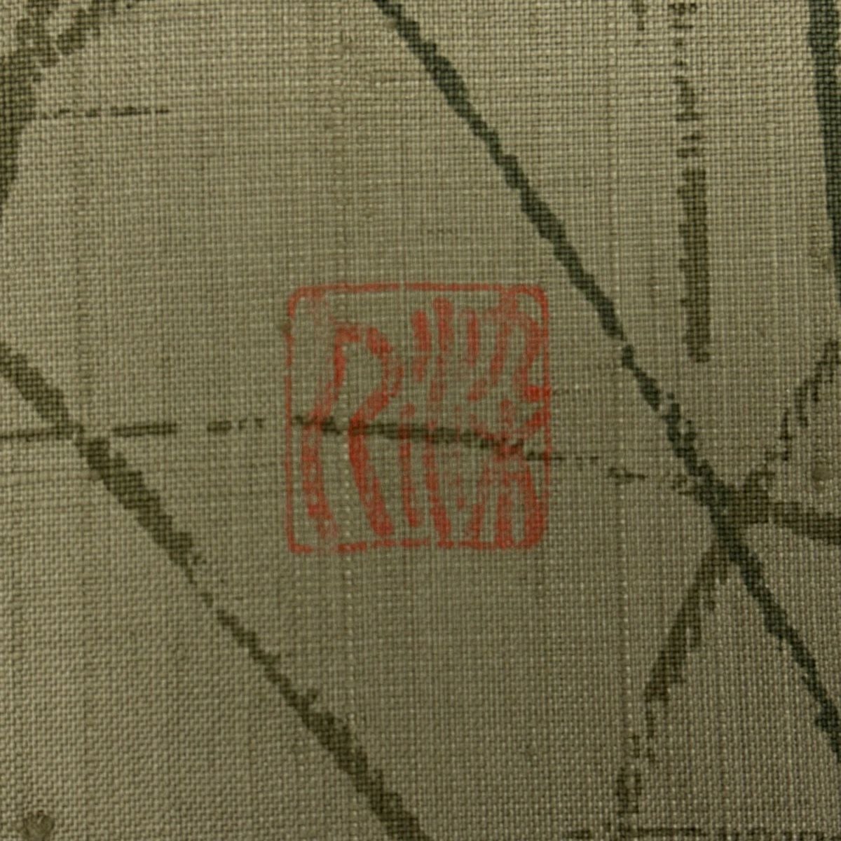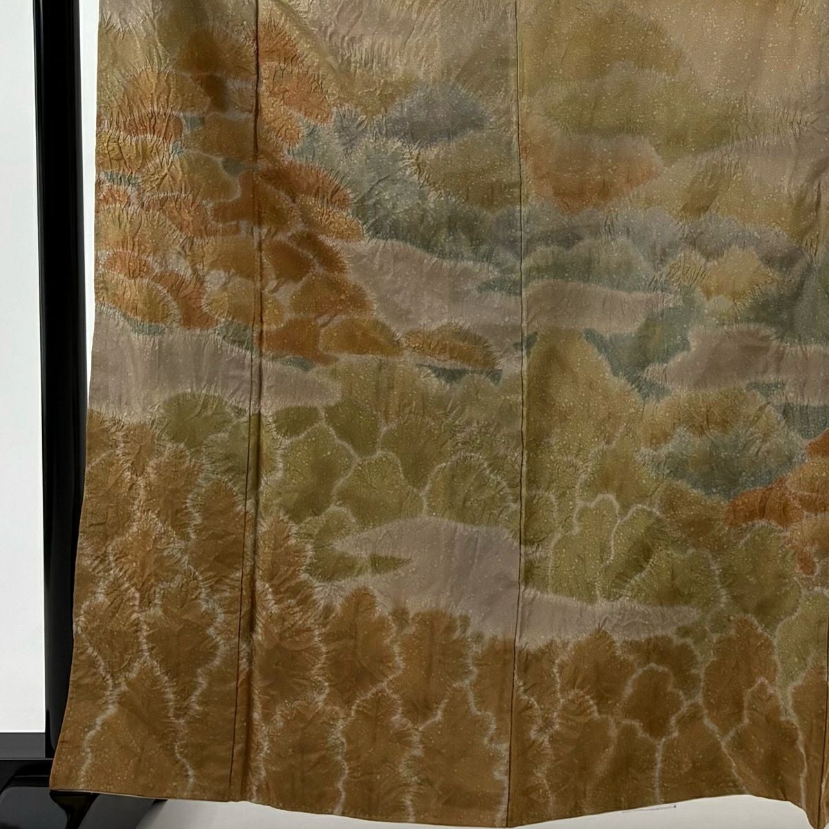 50%OFF 付下げ 身丈168cm 裄丈67.5cm L 袷 紬地 落款あり 葉 灰緑 正絹 秀品 K50