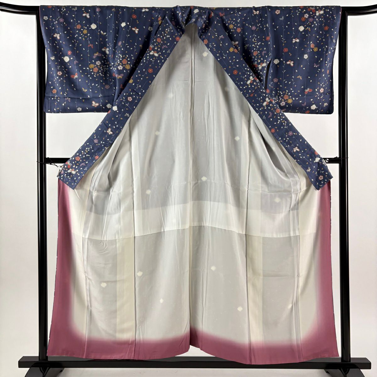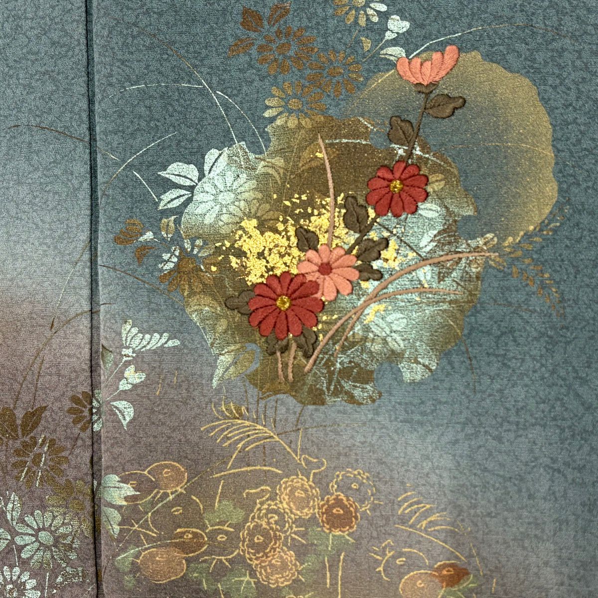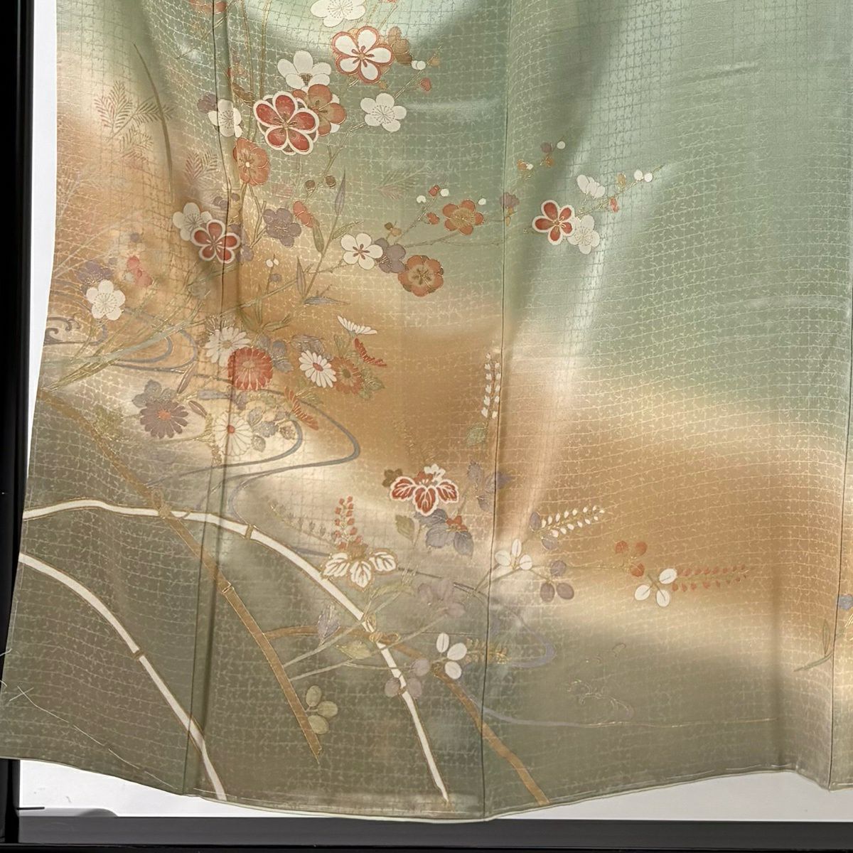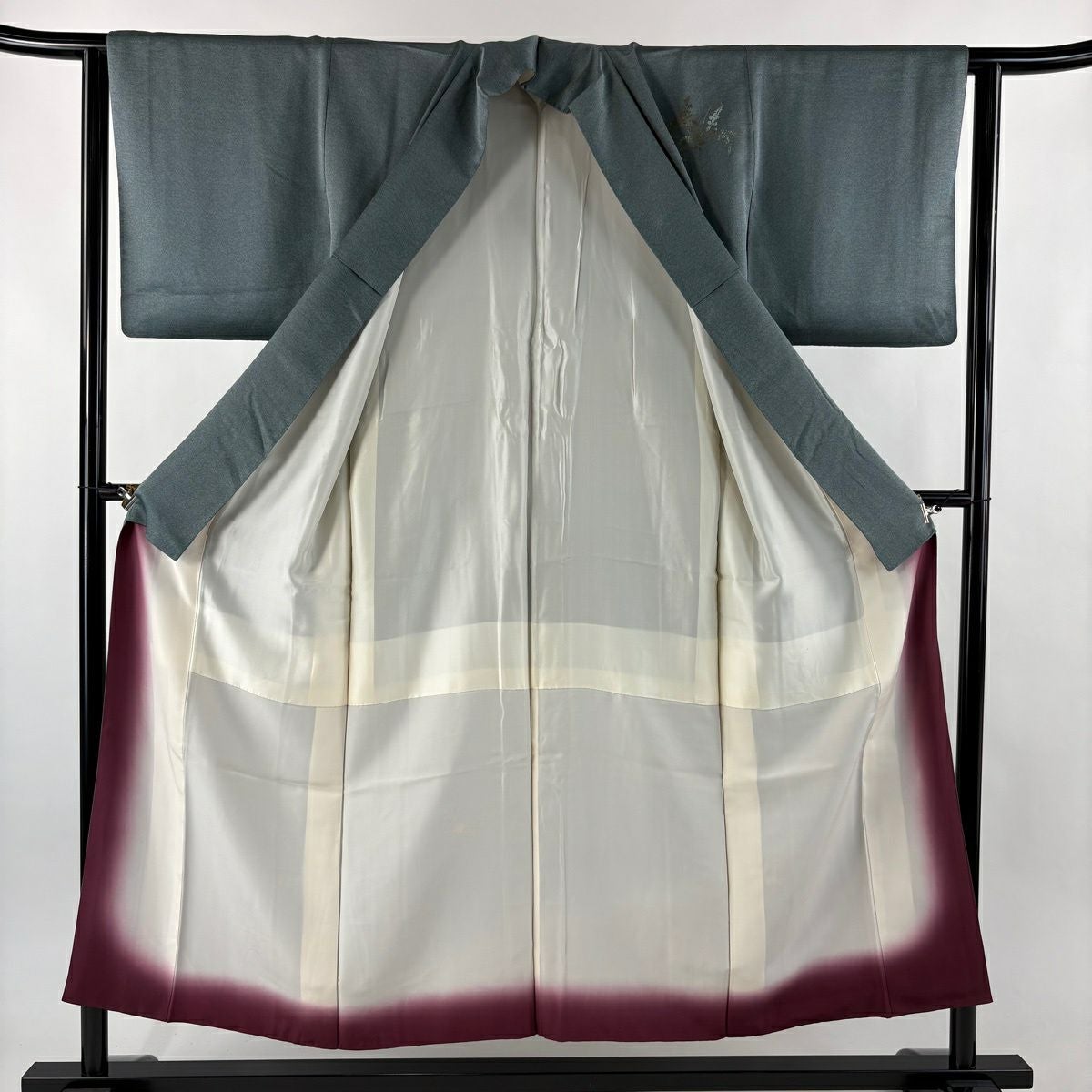 50%OFF 訪問着 身丈154cm 裄丈65cm M 袷 草花 染め分け ぼかし 灰緑 正絹 秀品 K50