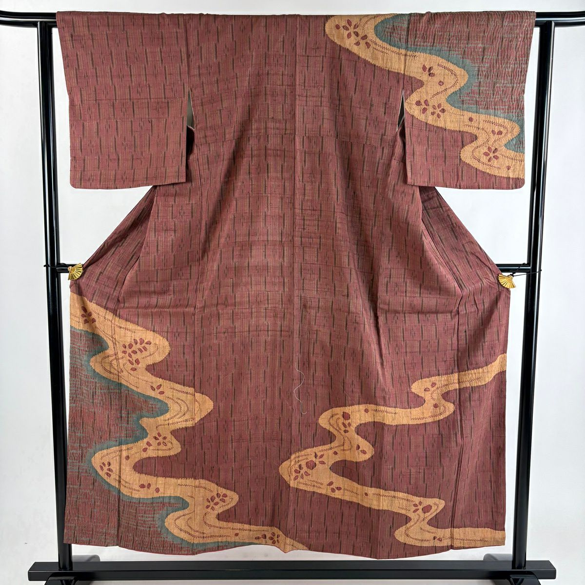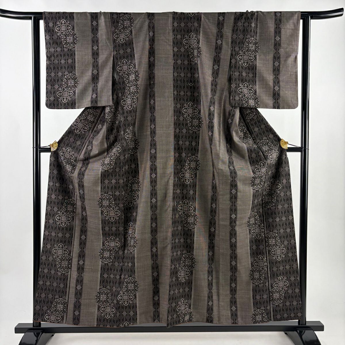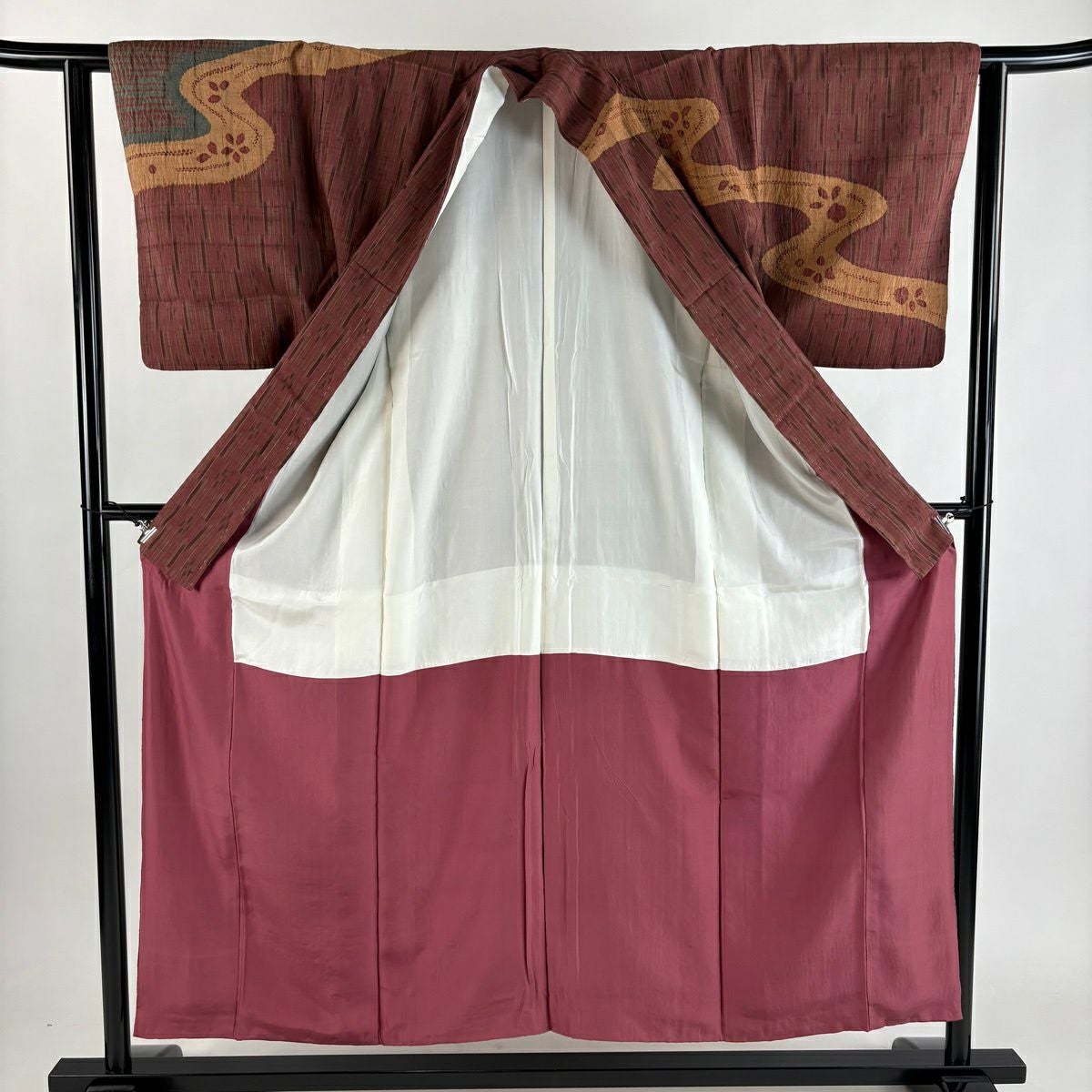 50%OFF 【美品】 紬 身丈157cm 裄丈62.5cm S 袷 華文 縦縞 焦茶色 正絹 秀品 K50