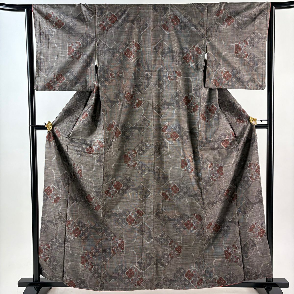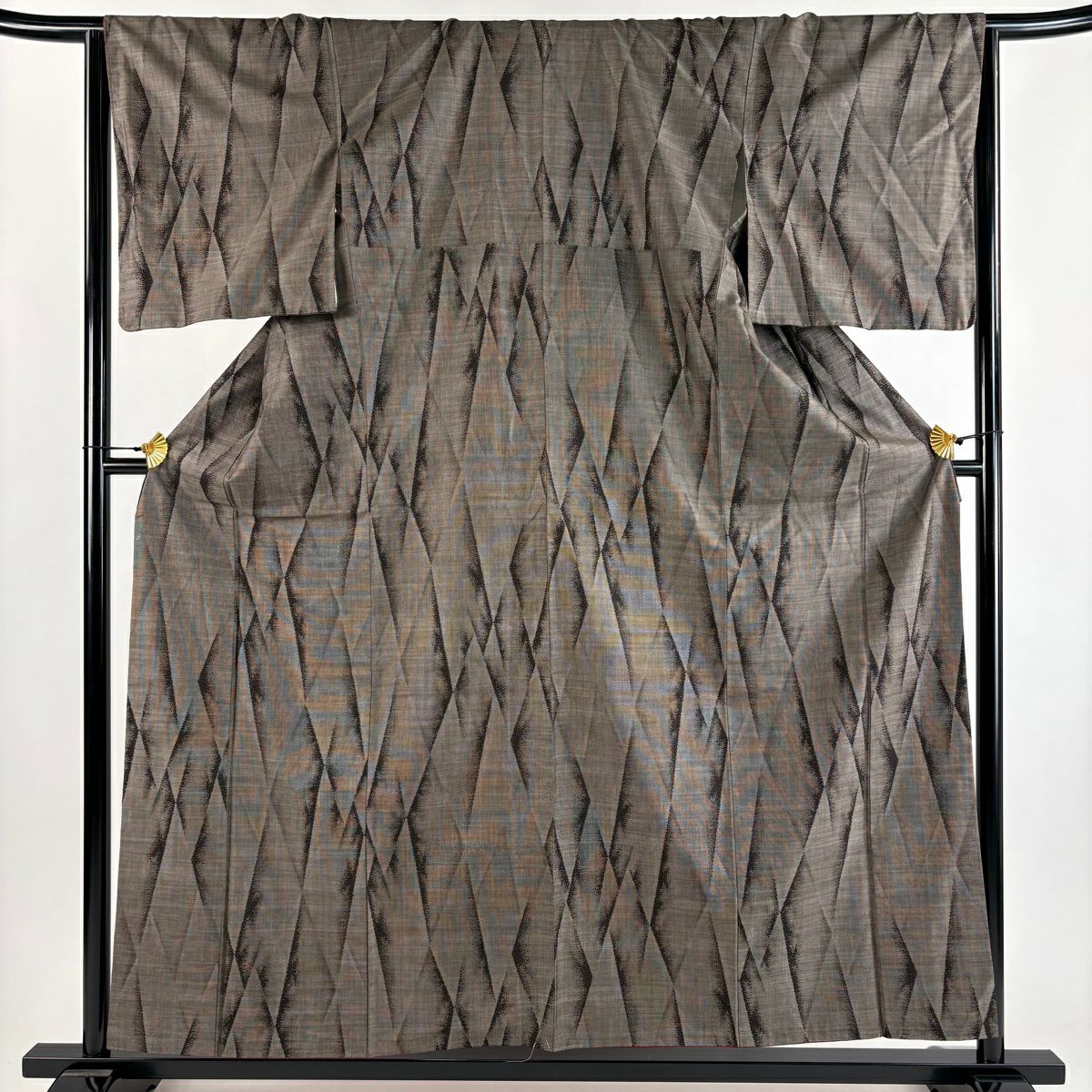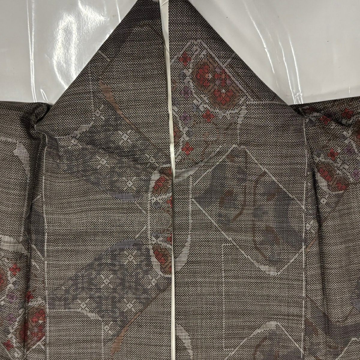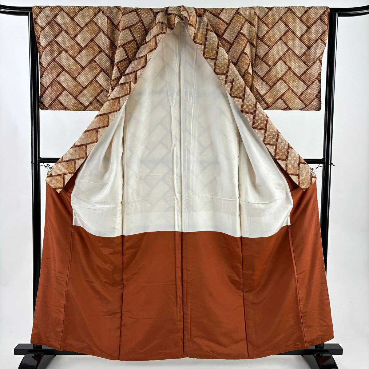 50%OFF 【美品】 紬 身丈157cm 裄丈61.5cm S 袷 幾何学模様 焦茶色 正絹 秀品 K50