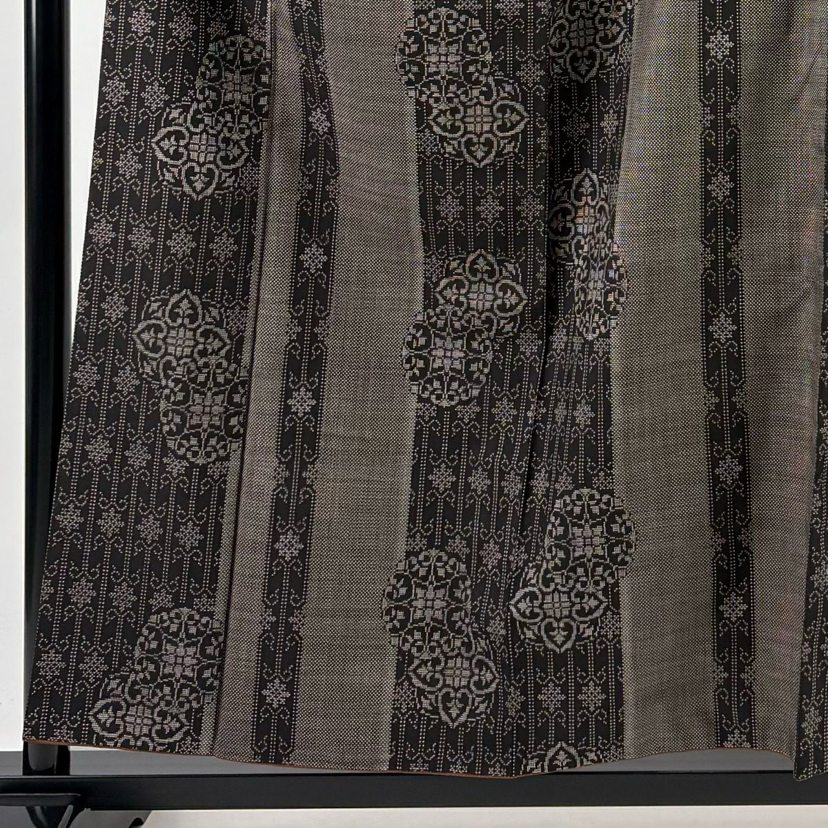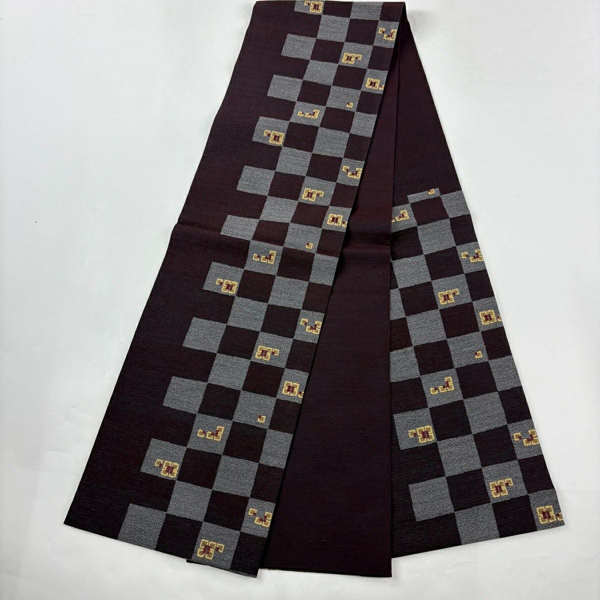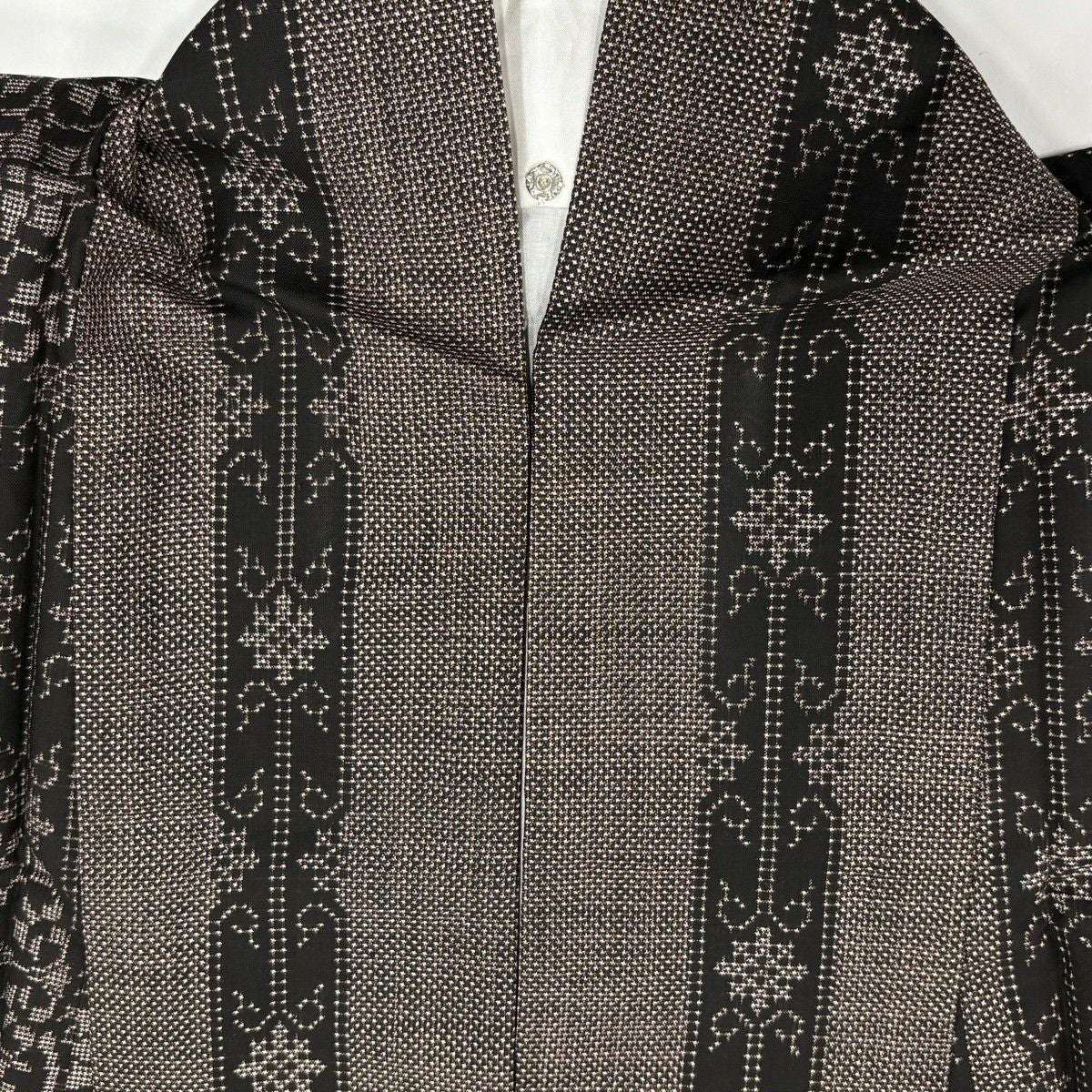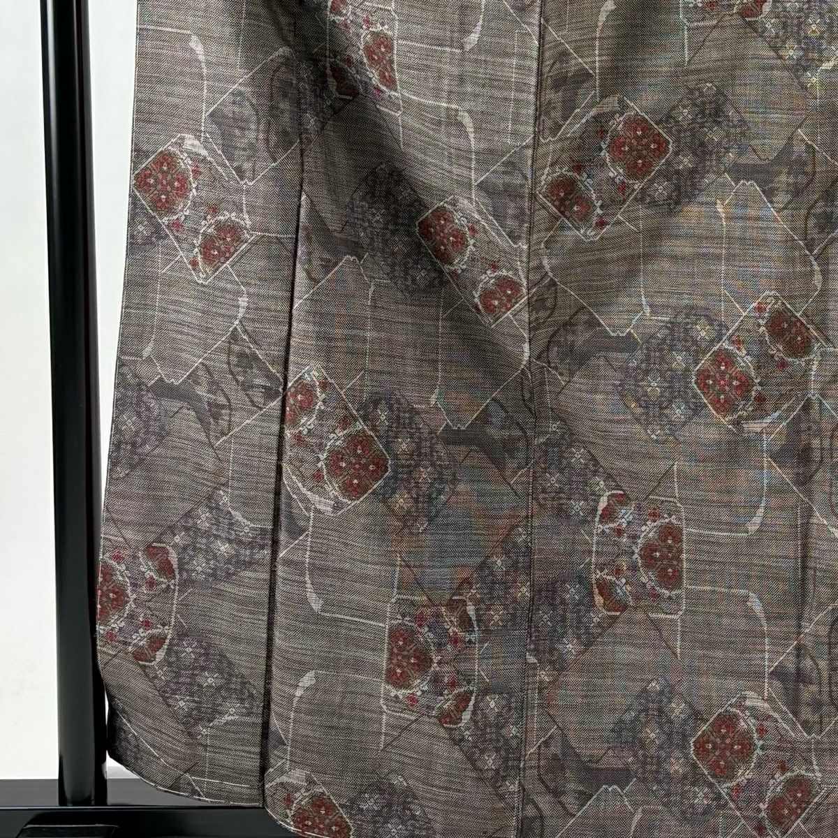 50%OFF 【美品】 紬 身丈157cm 裄丈61.5cm S 袷 幾何学模様 焦茶色 正絹 秀品 K50