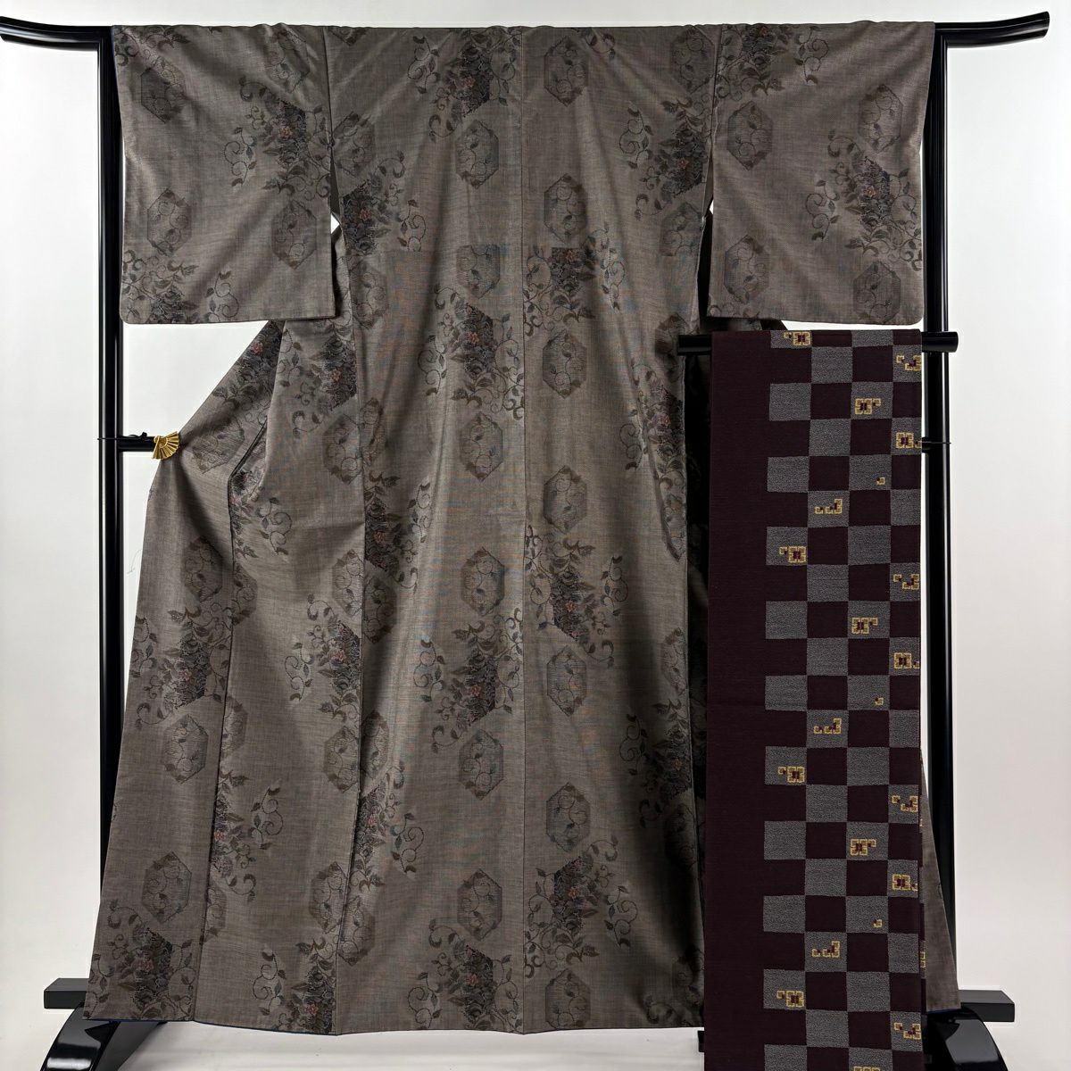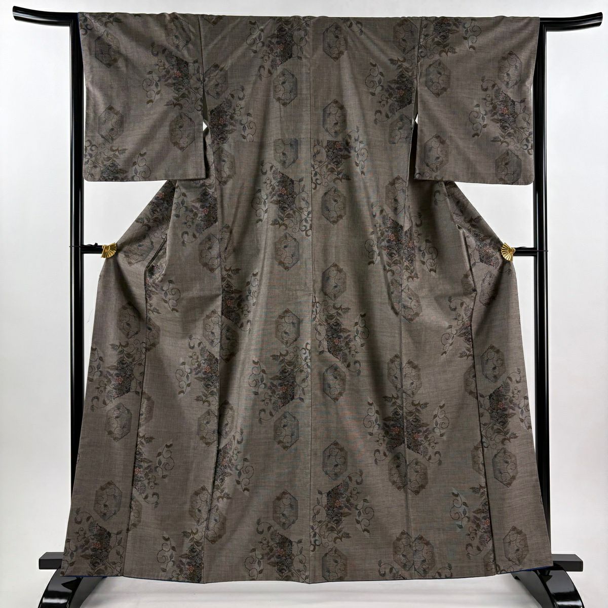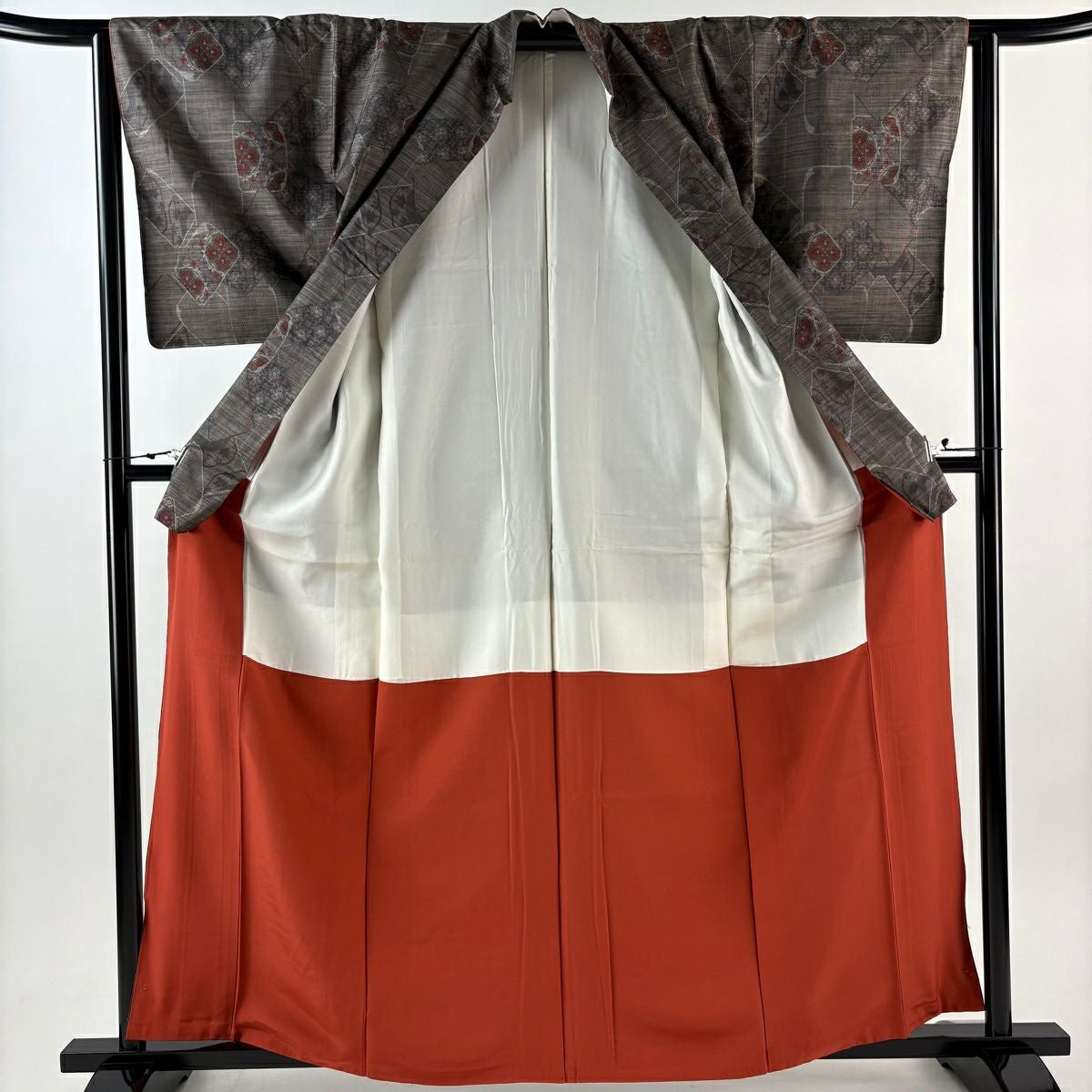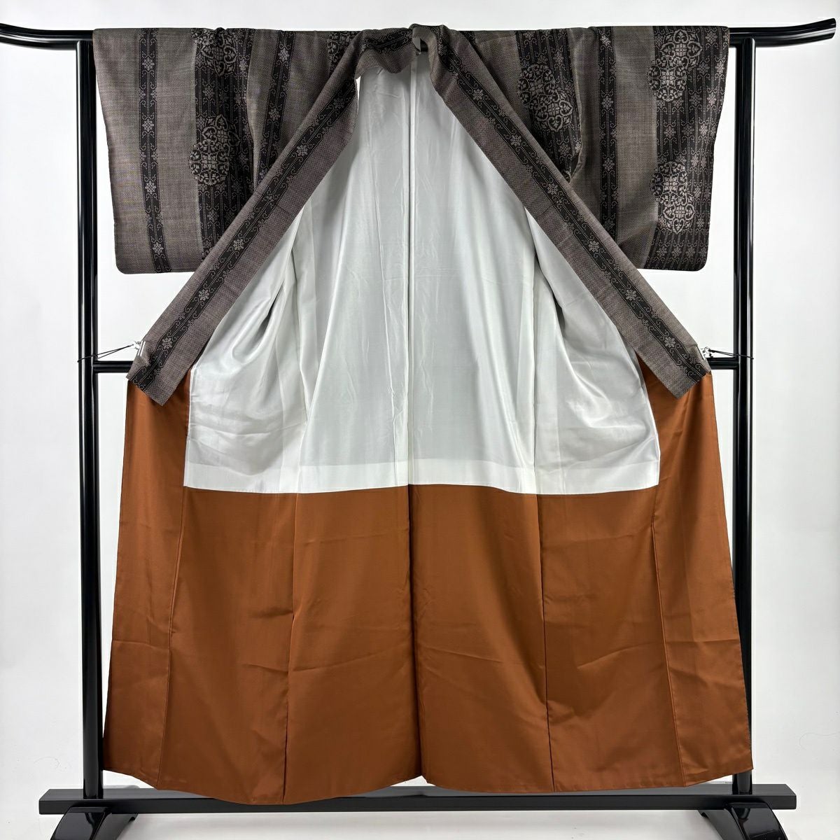 50%OFF 【美品】 紬 身丈161.5cm 裄丈64cm M 袷 華文 色紙 焦茶色 正絹 秀品 K50