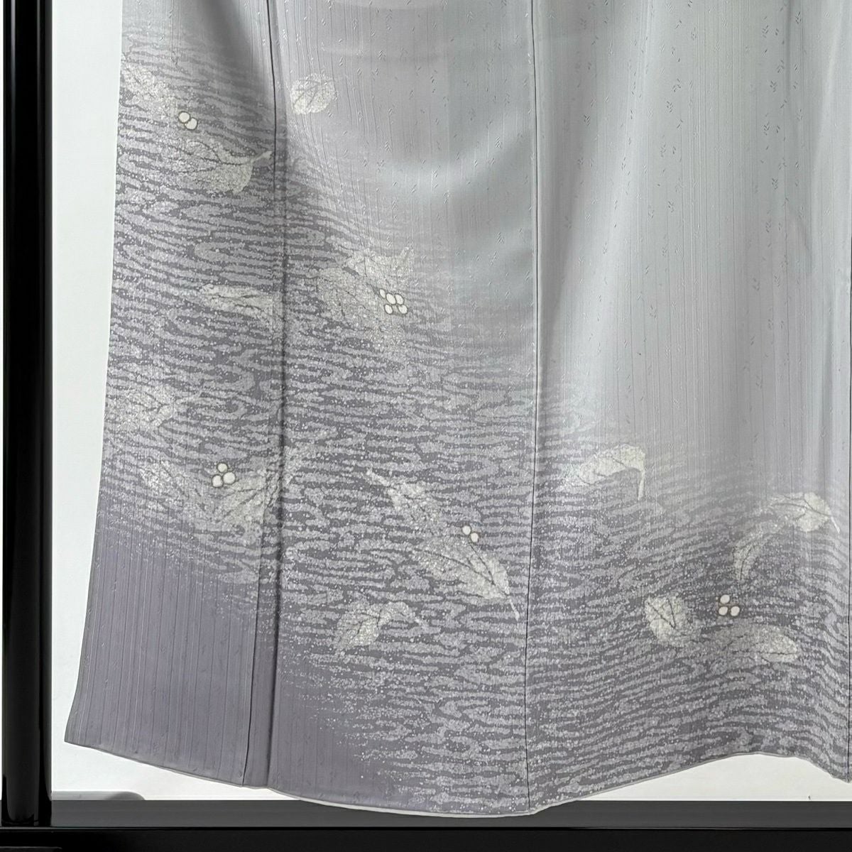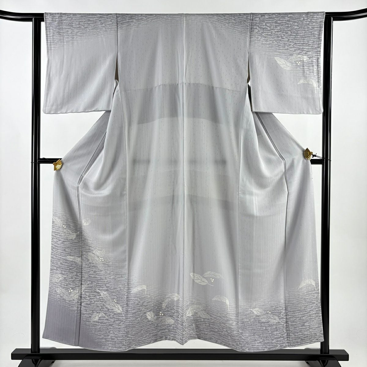 50%OFF 訪問着 身丈154cm 裄丈62cm S 袷 葉柄 実 金彩 ぼかし 灰色 正絹 秀品 K50