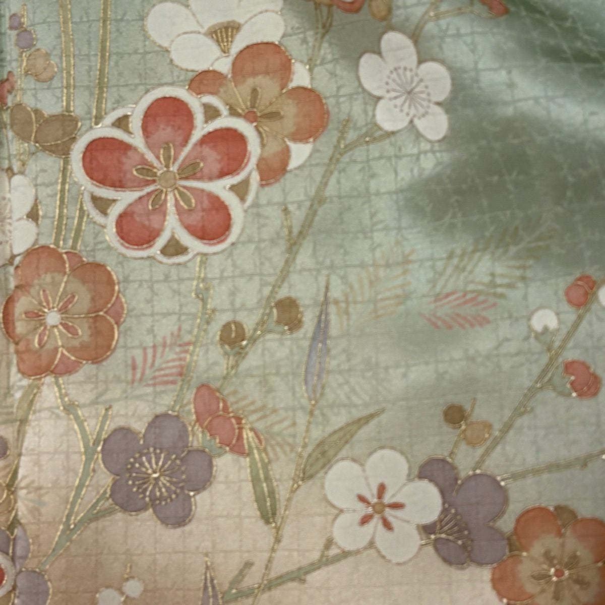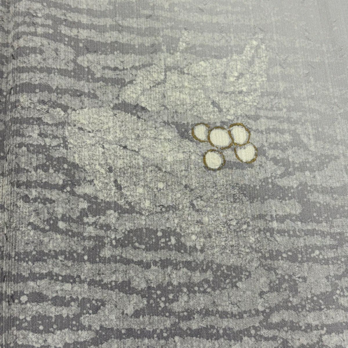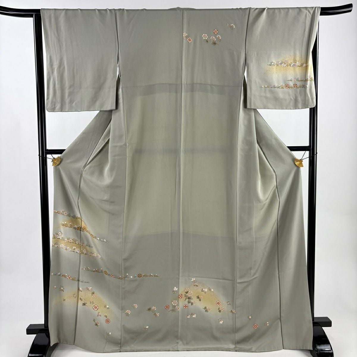 50%OFF 付下げ 身丈152cm 裄丈63cm S 袷 雪輪 草花 金糸 刺繍 灰緑 正絹 秀品 K50