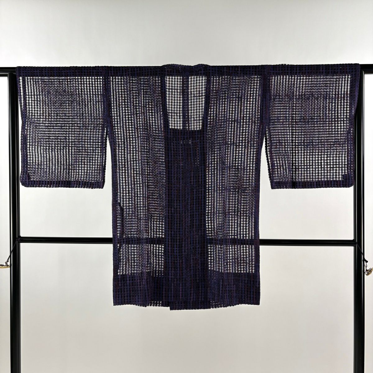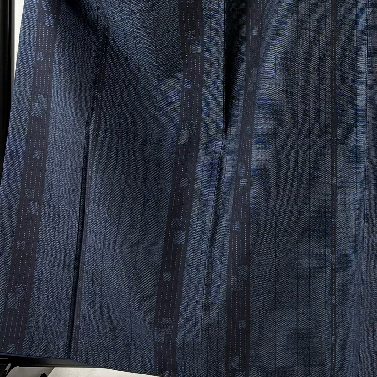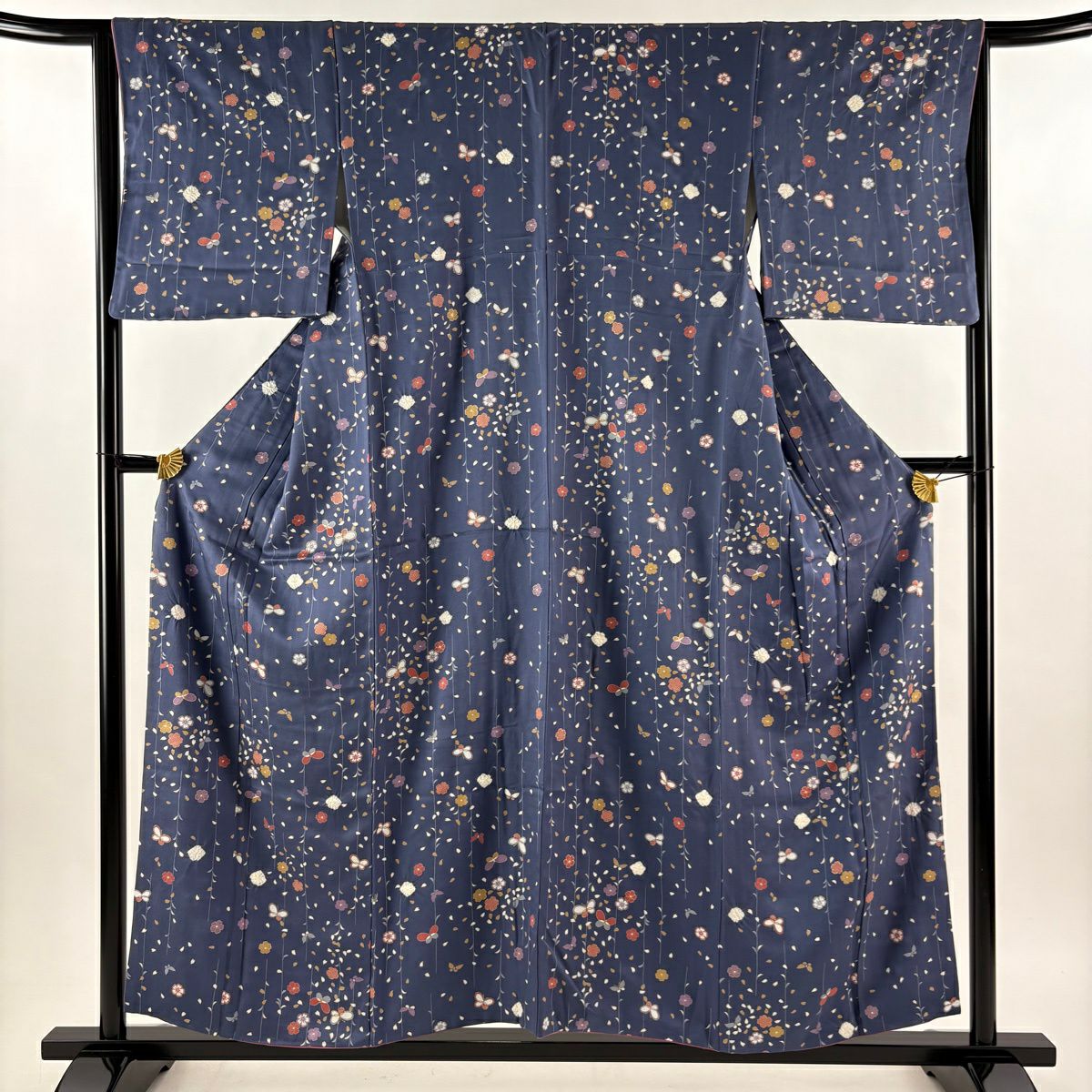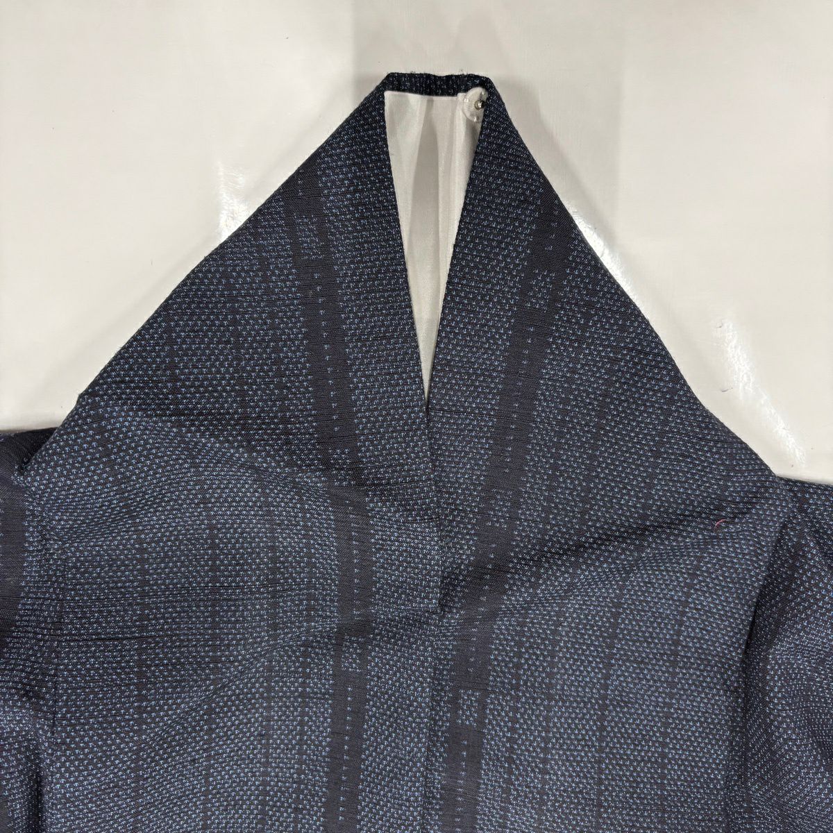 50%OFF 紬 身丈156.5cm 裄丈63cm S 薄物 夏紬 幾何学模様 縞 紺色 正絹 秀品 K50