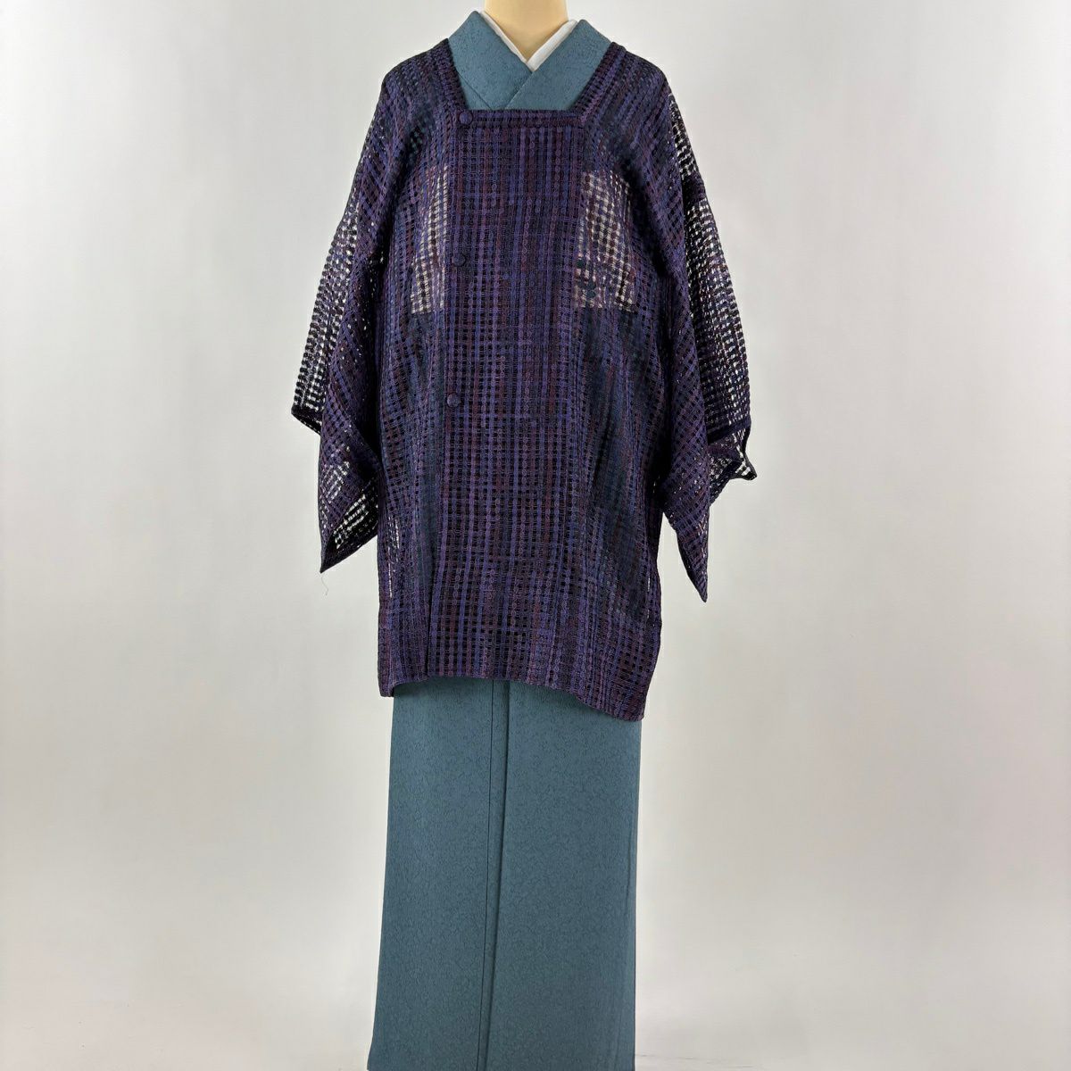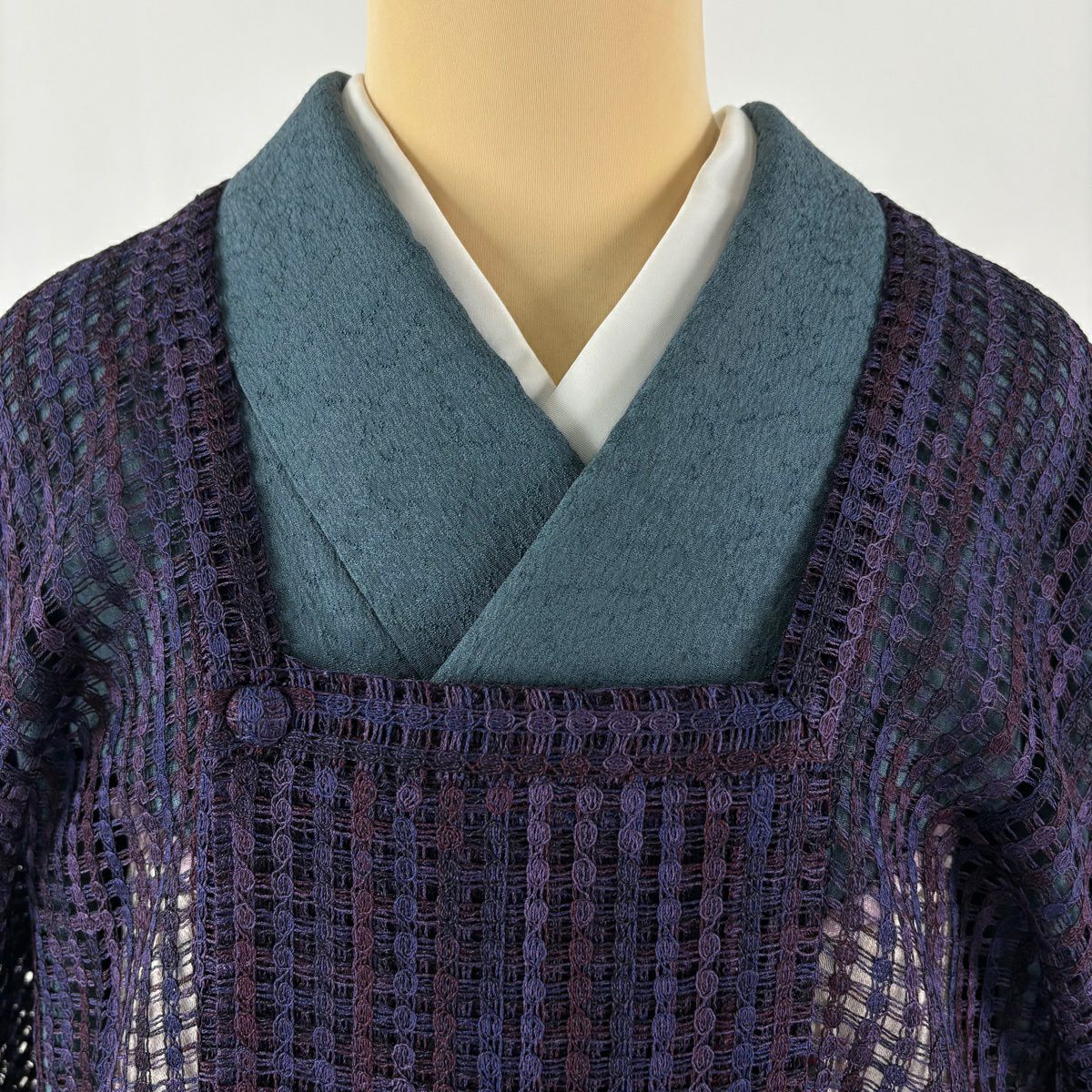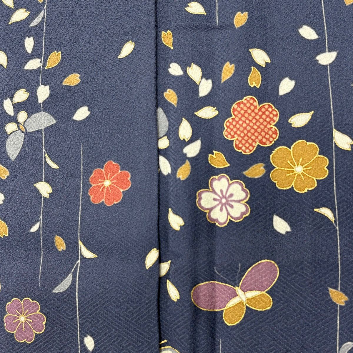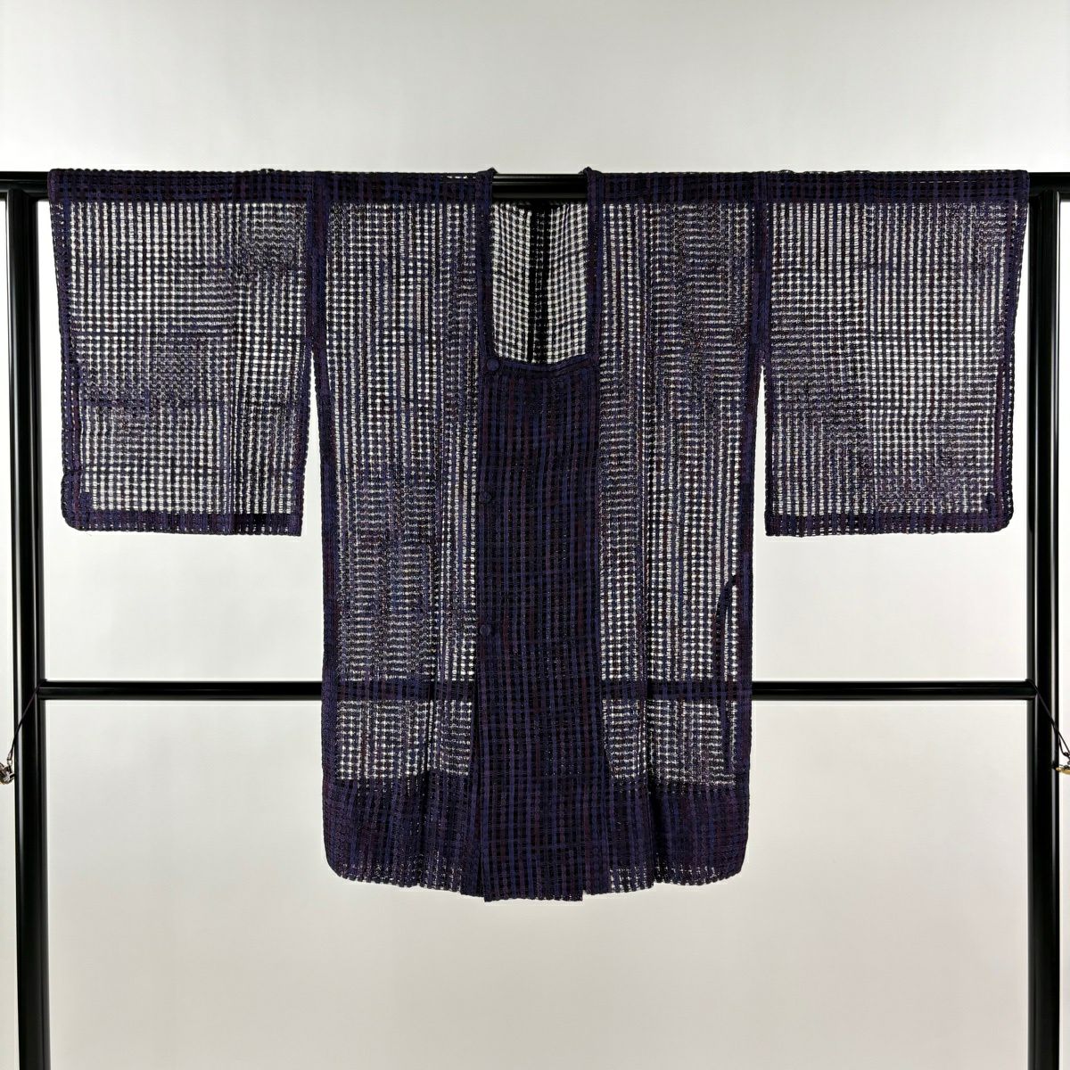 50%OFF 紬 身丈156.5cm 裄丈63cm S 薄物 夏紬 幾何学模様 縞 紺色 正絹 秀品 K50