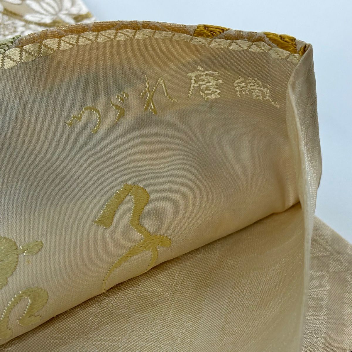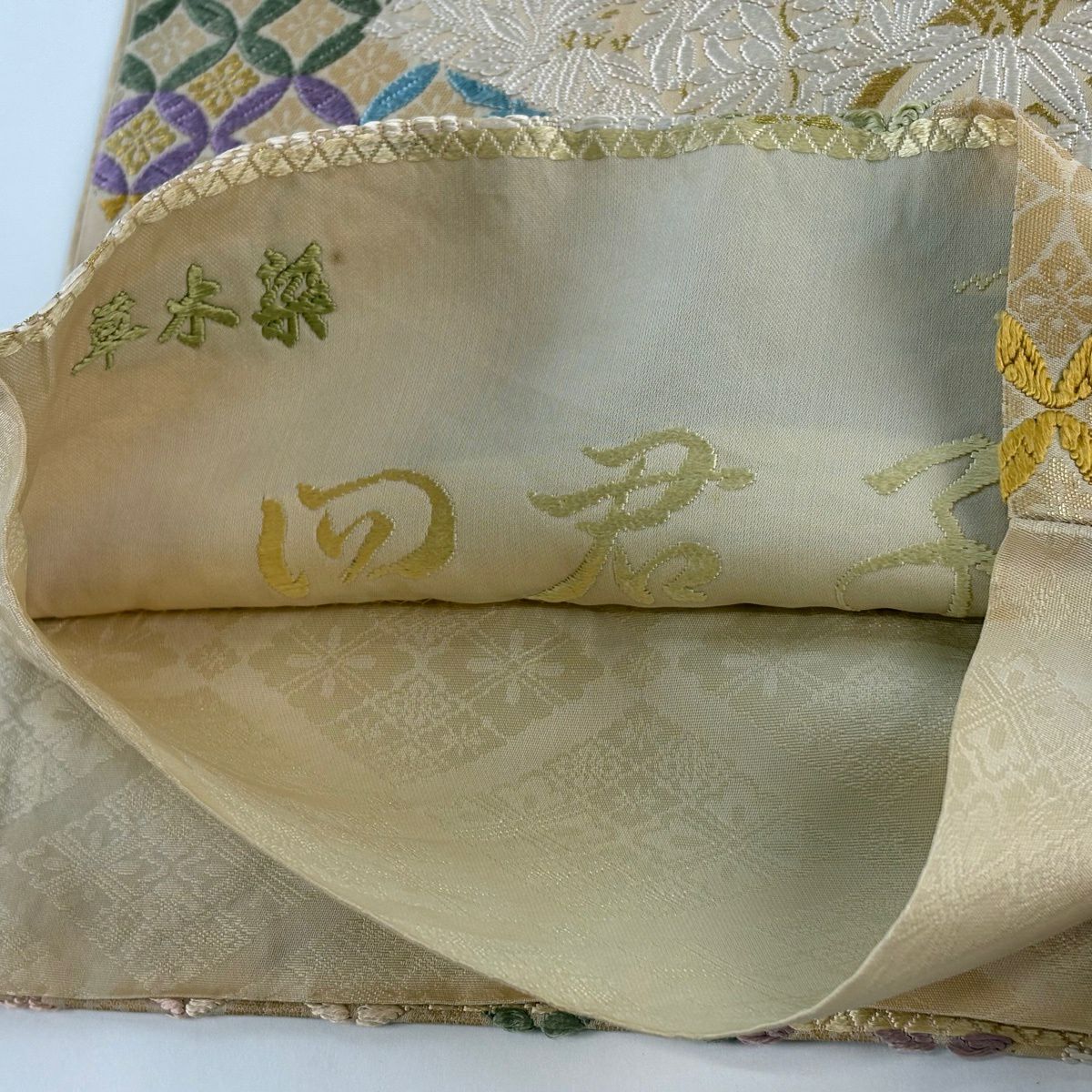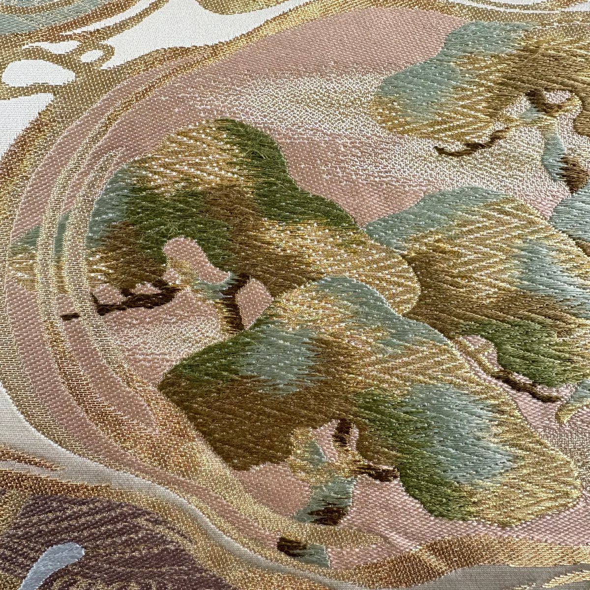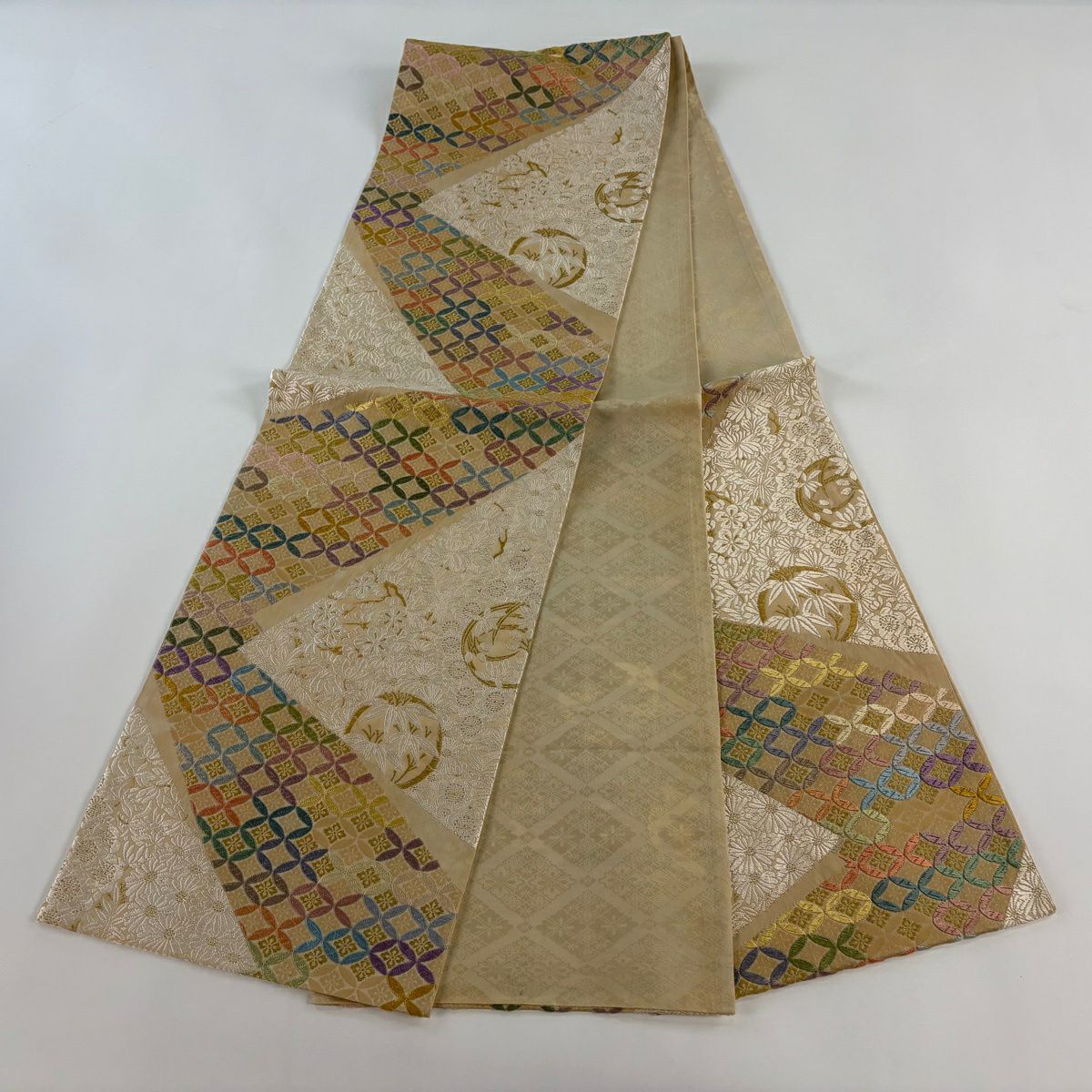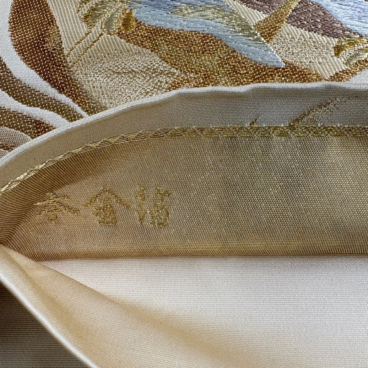 50%OFF 【美品】 袋帯 秀品 本金箔 流水鶴松文 葡萄 唐織 金糸 ベージュ 六通 正絹 K50