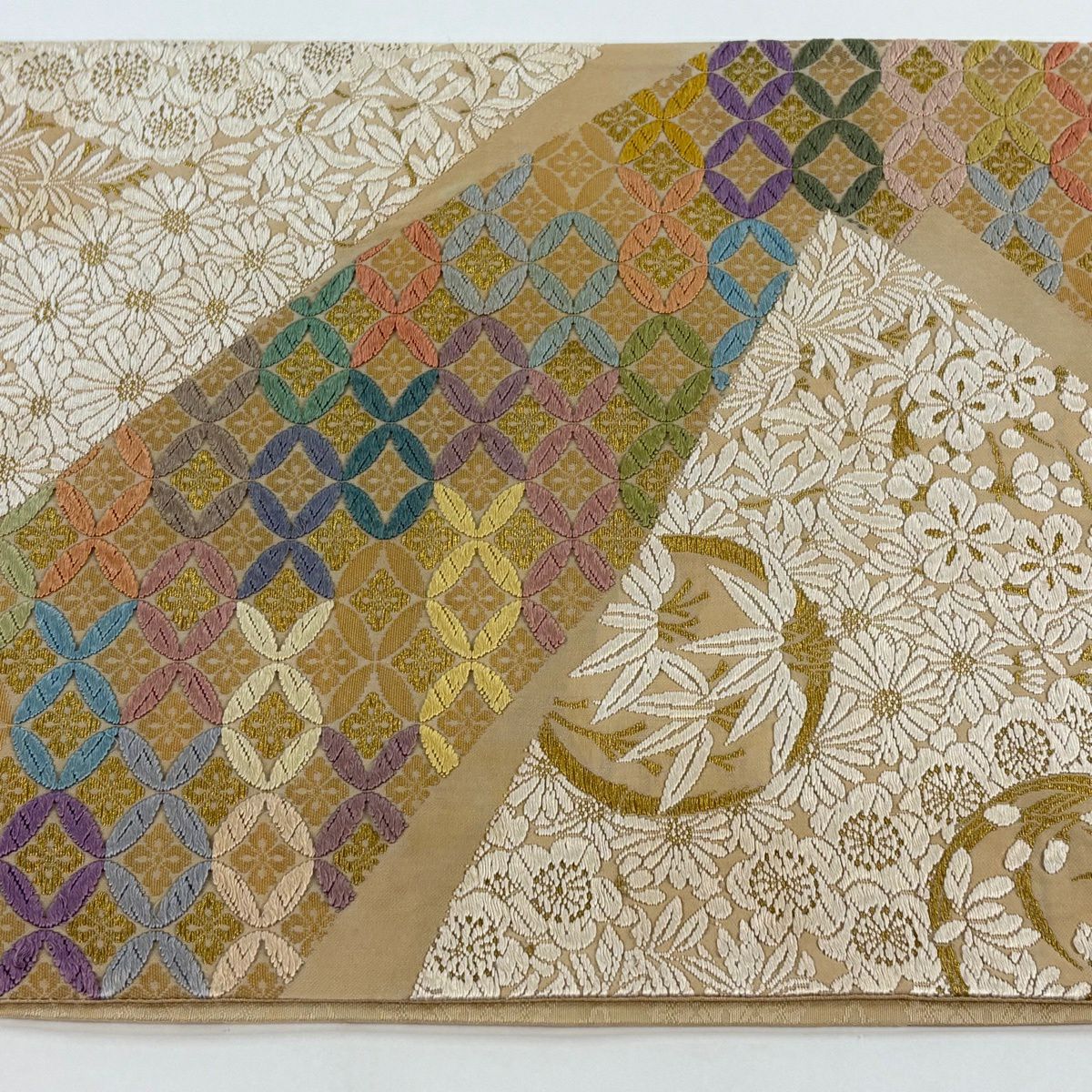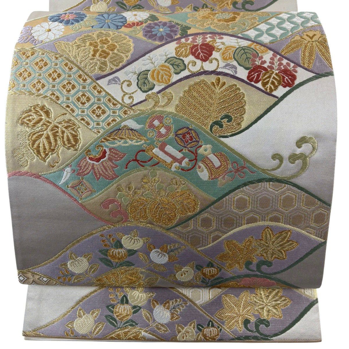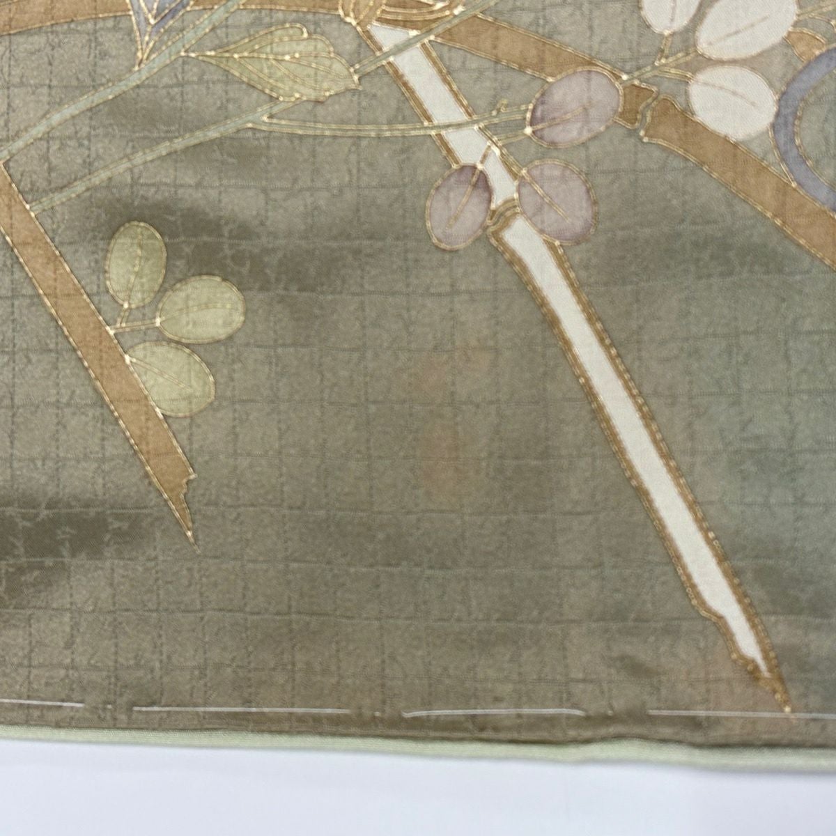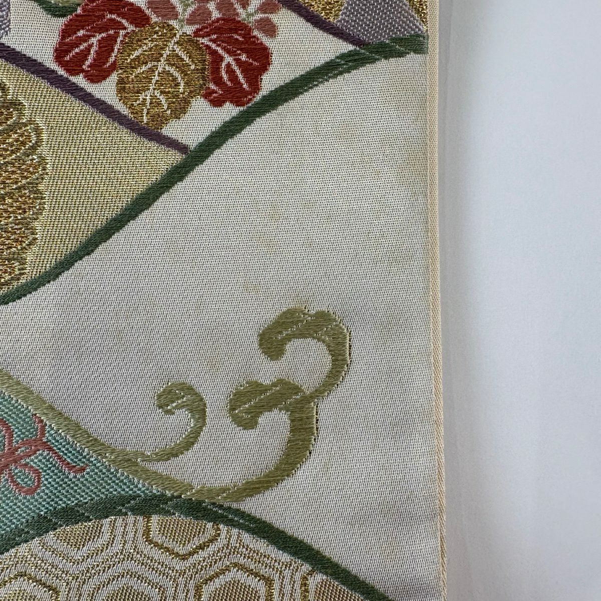 50%OFF 【美品】 袋帯 秀品 本金箔 流水鶴松文 葡萄 唐織 金糸 ベージュ 六通 正絹 K50