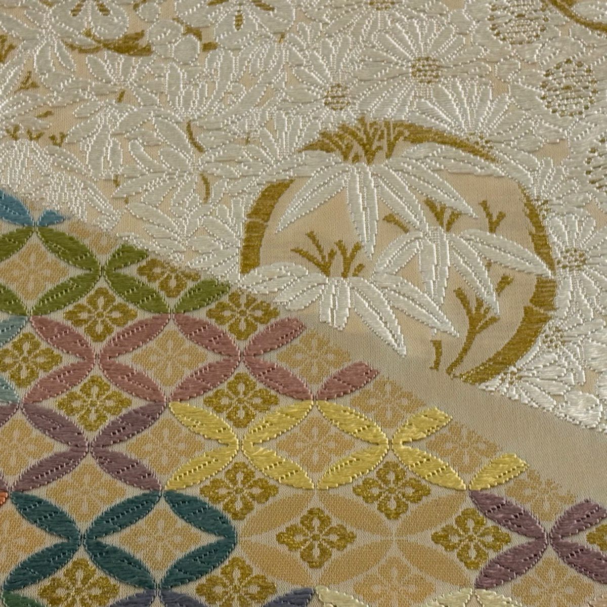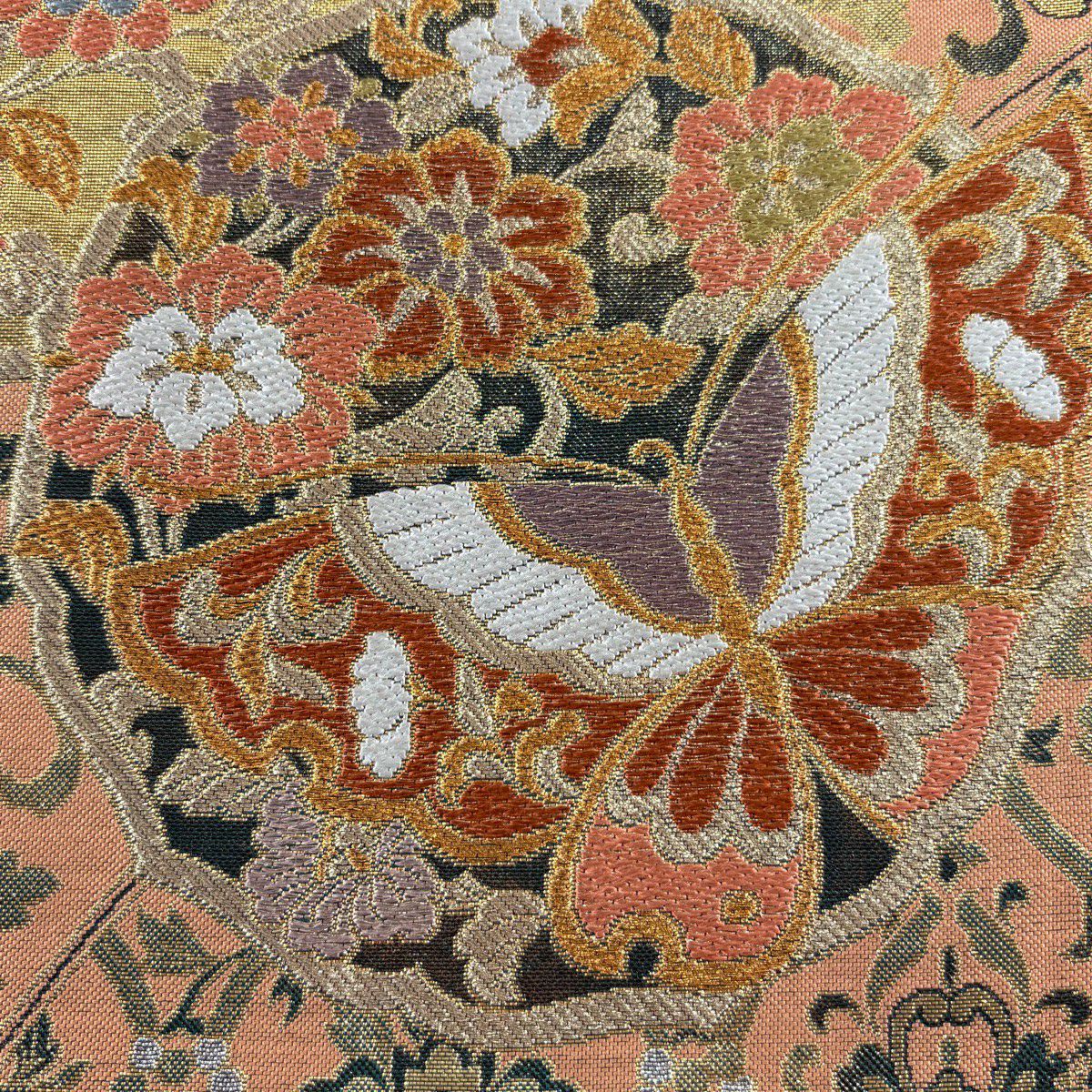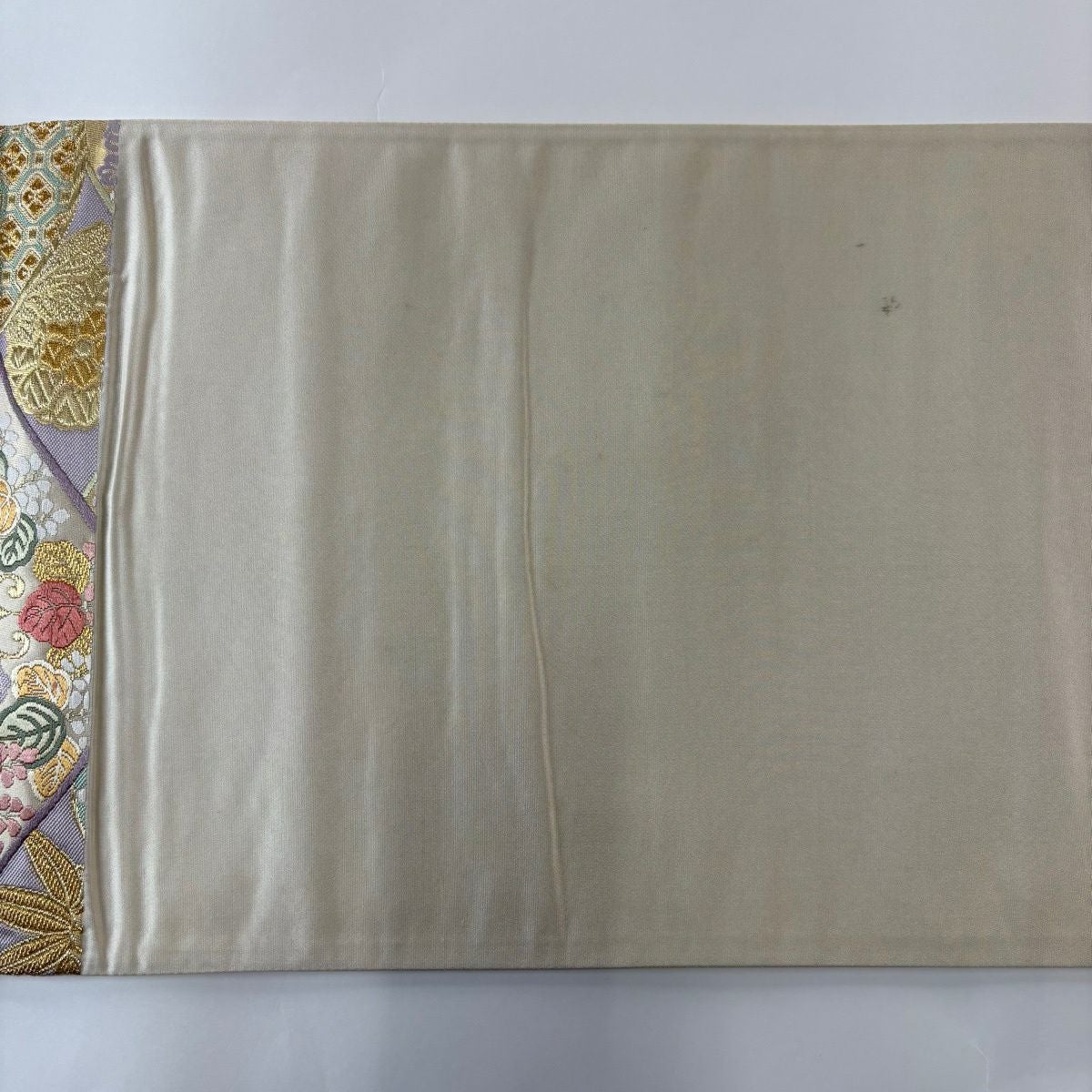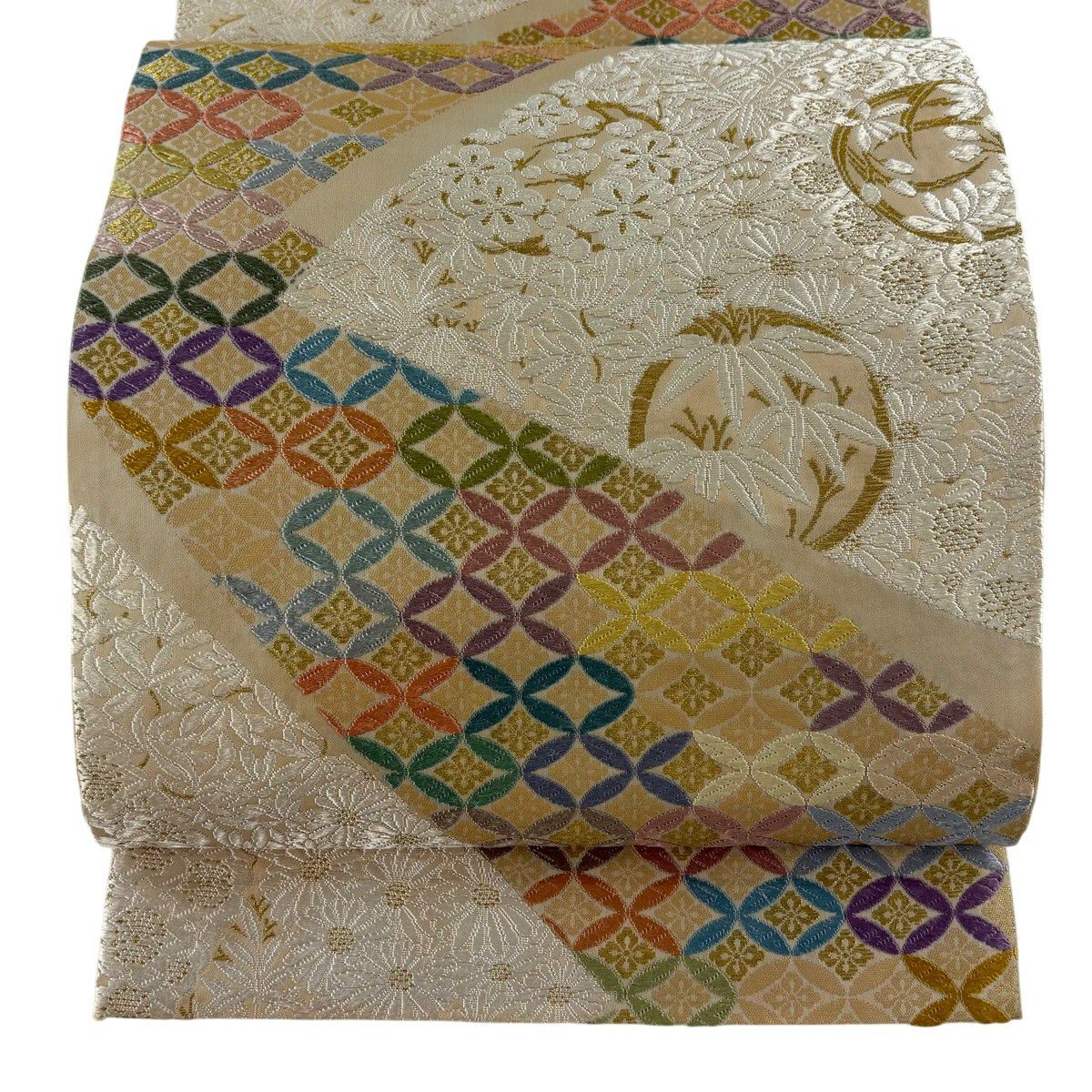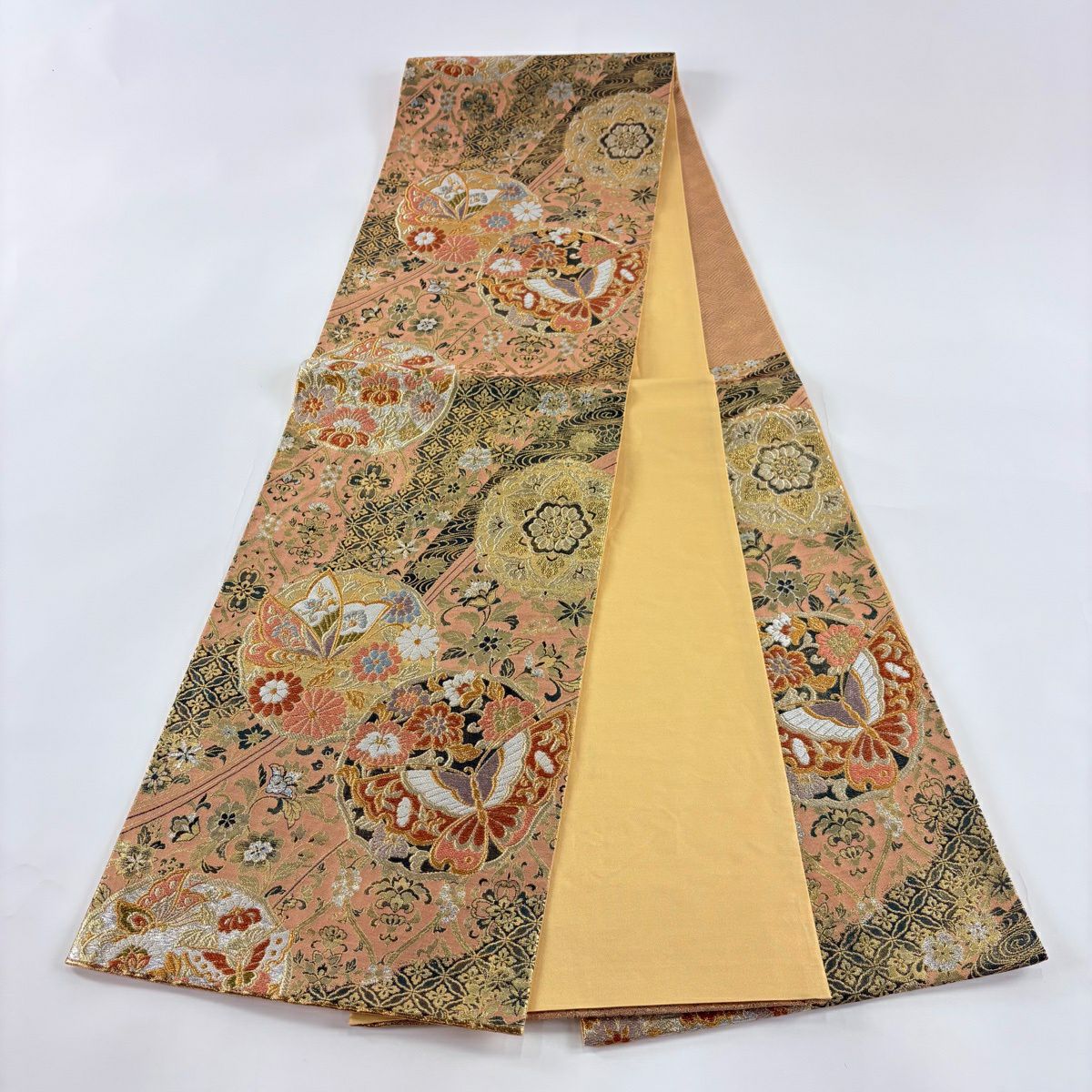 50%OFF 【美品】 袋帯 秀品 本金箔 流水鶴松文 葡萄 唐織 金糸 ベージュ 六通 正絹 K50
