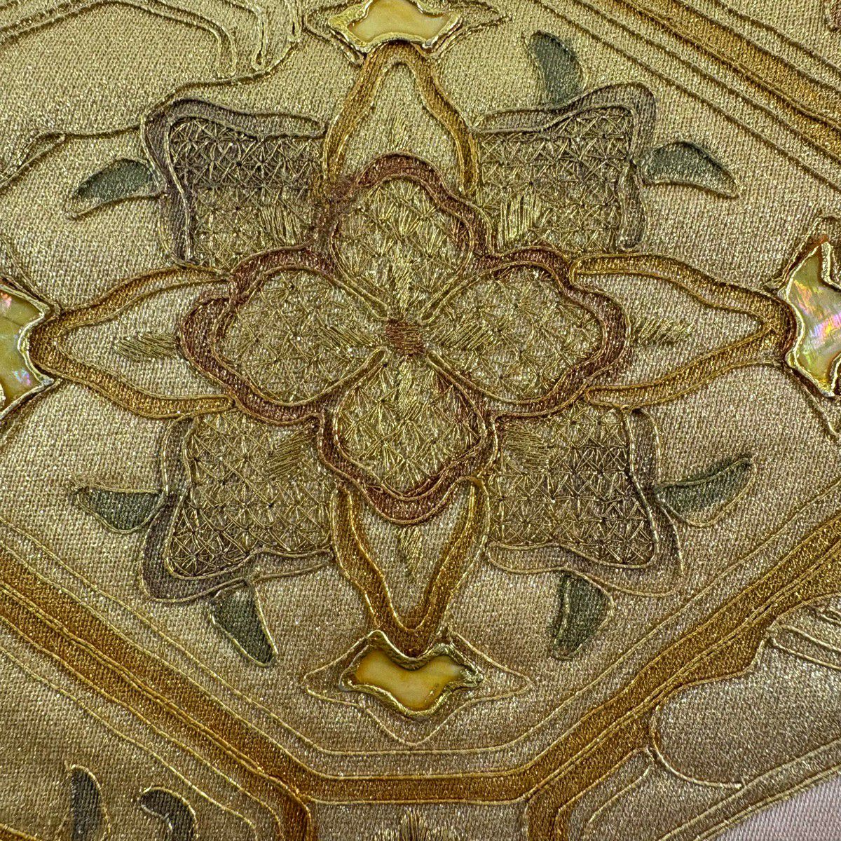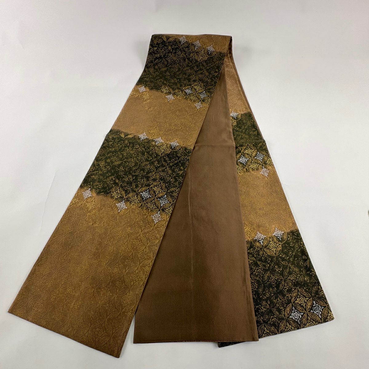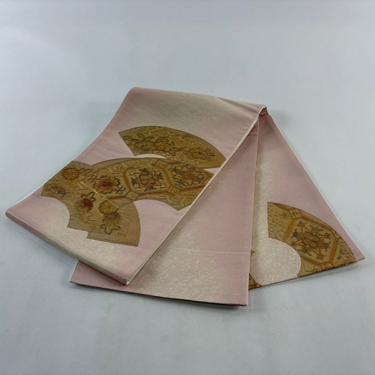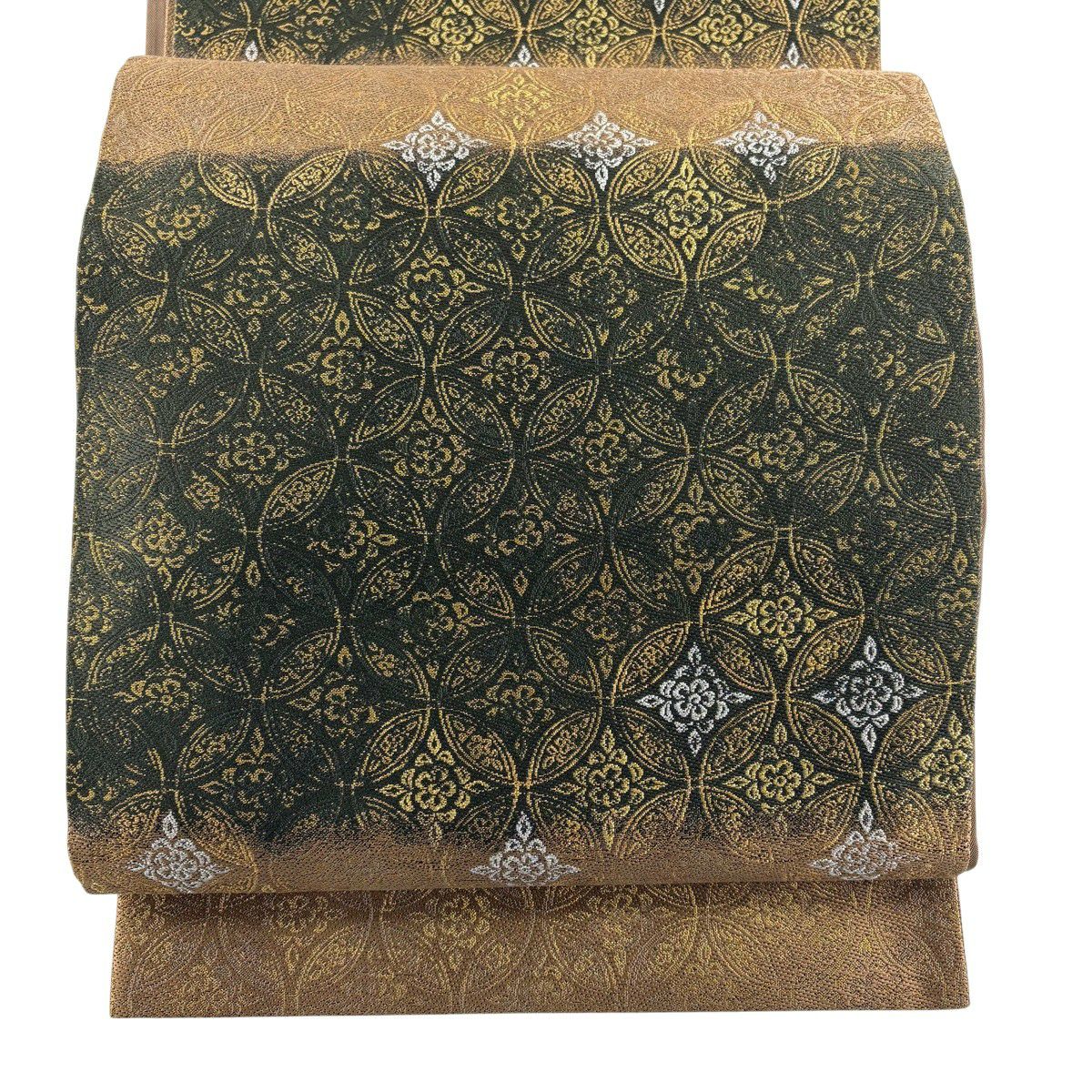 50%OFF 【美品】 袋帯 秀品 本金箔 流水鶴松文 葡萄 唐織 金糸 ベージュ 六通 正絹 K50