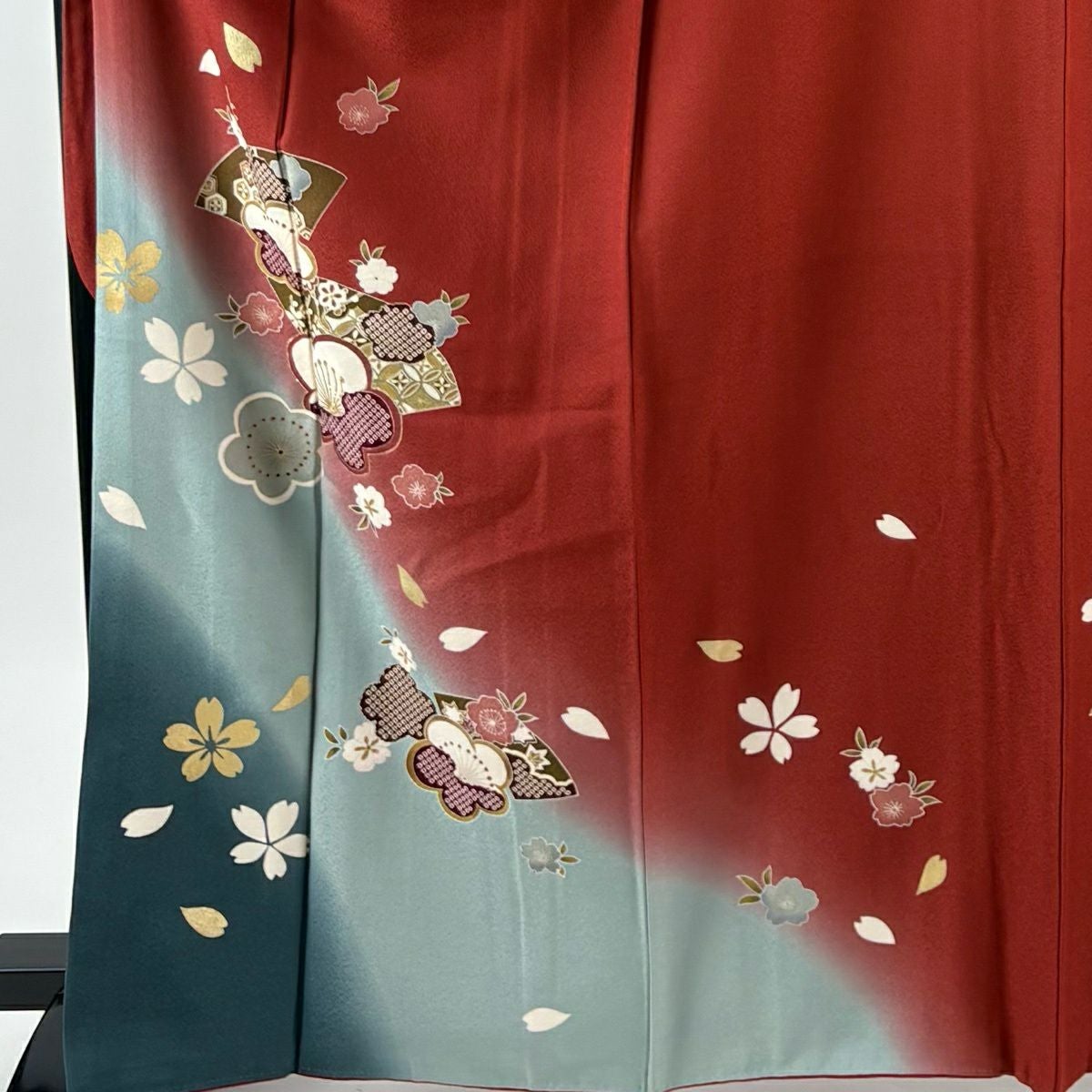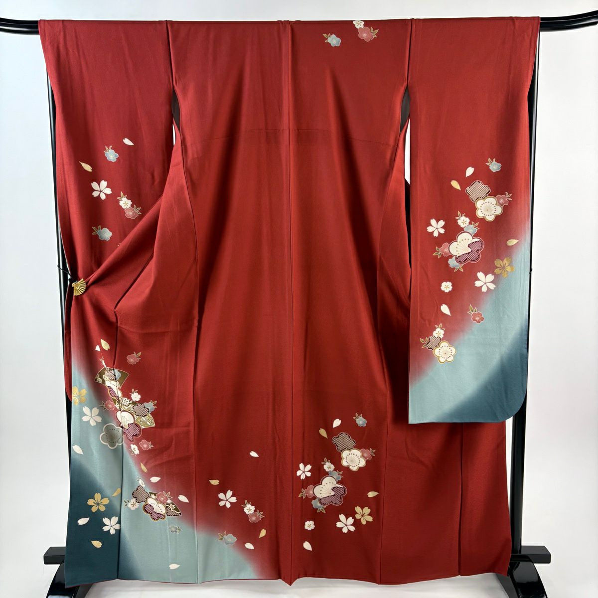 50%OFF 振袖 身丈167cm 裄丈67cm M 袷 宝尽くし 笠松 金銀彩 ぼかし 赤 正絹 秀品 K50