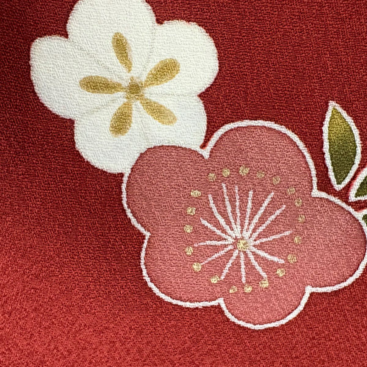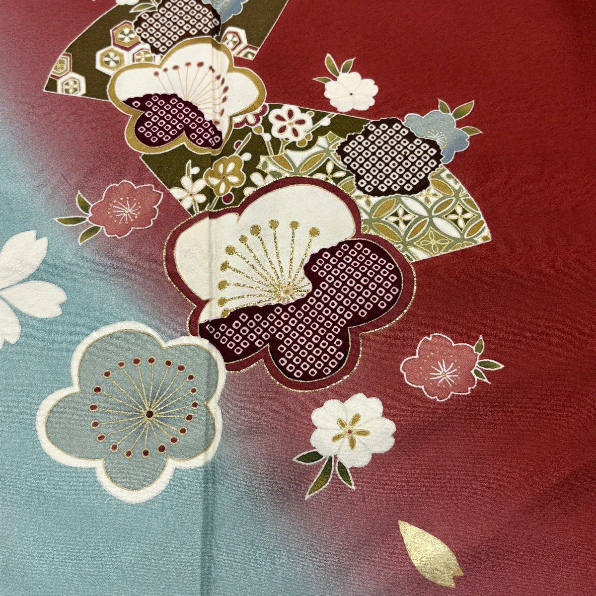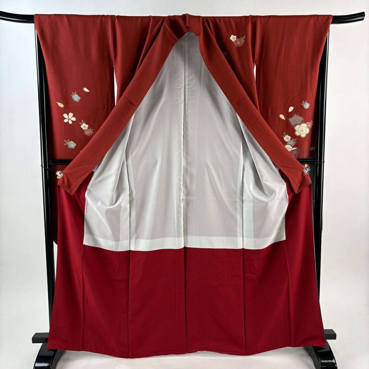 50%OFF 振袖 身丈167.5cm 裄丈67cm M 袷 梅 桜 箔 金彩 えんじ色 正絹 秀品 K50