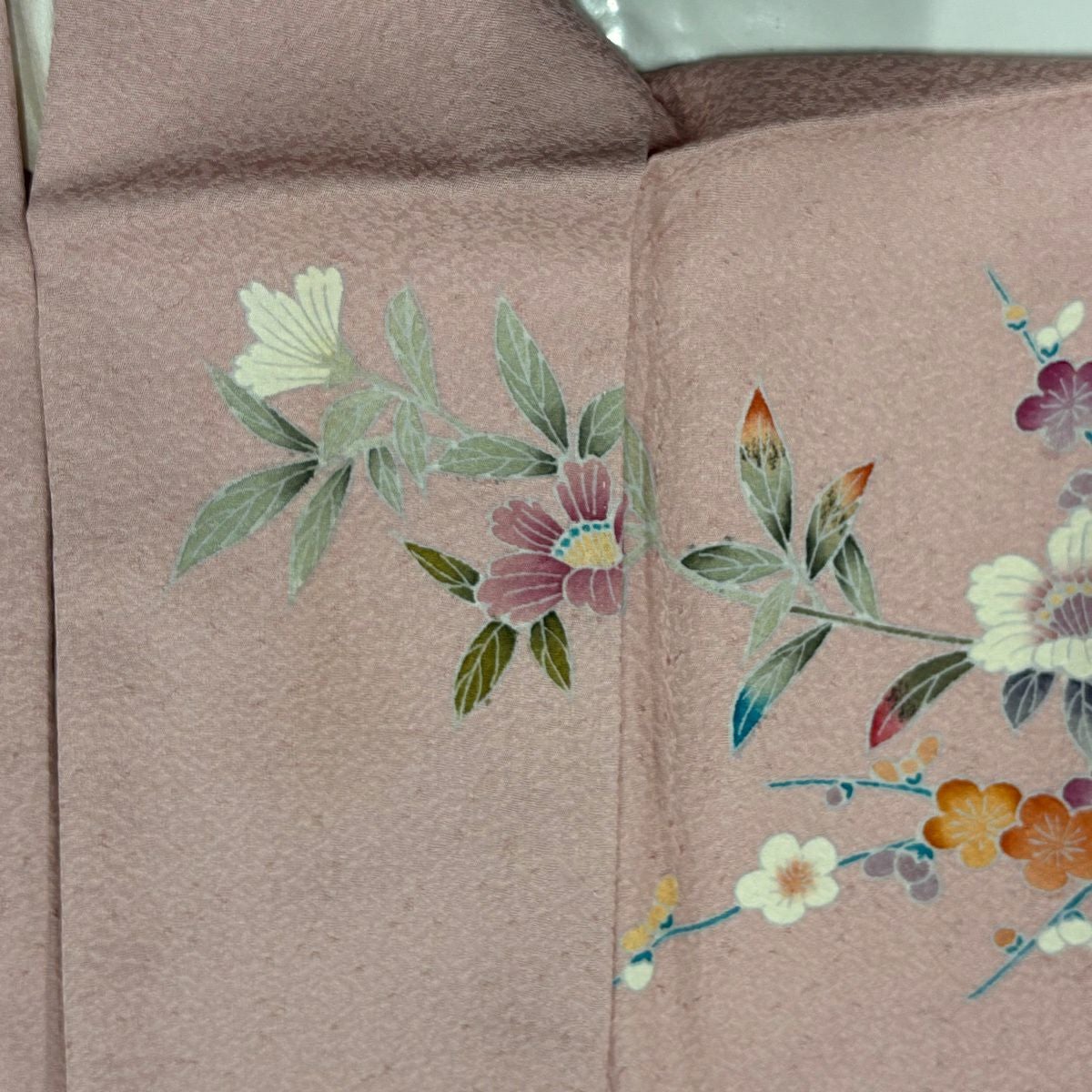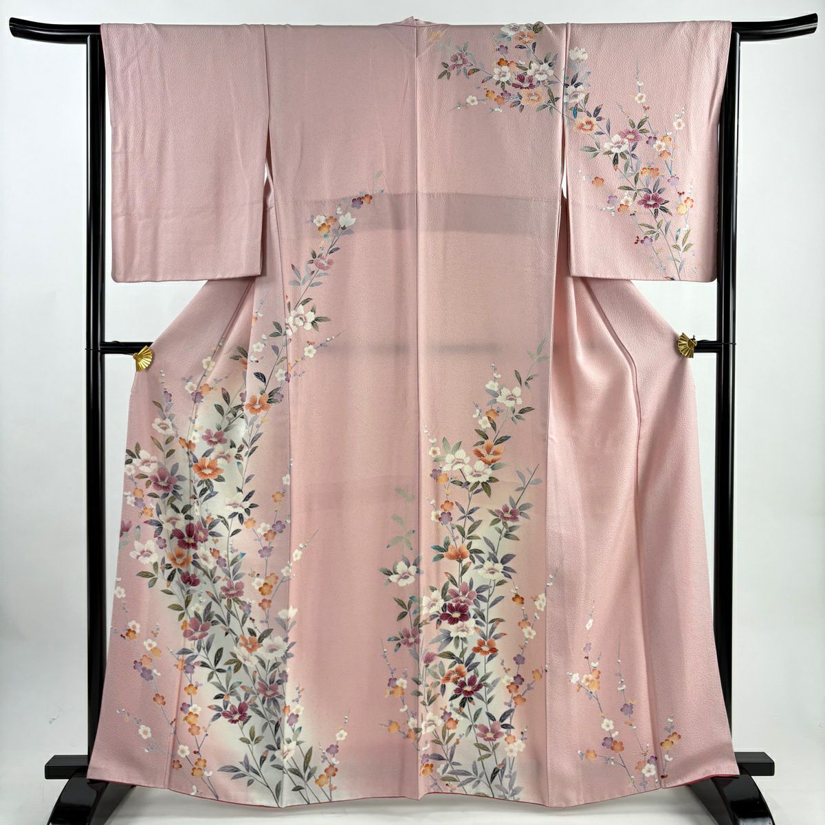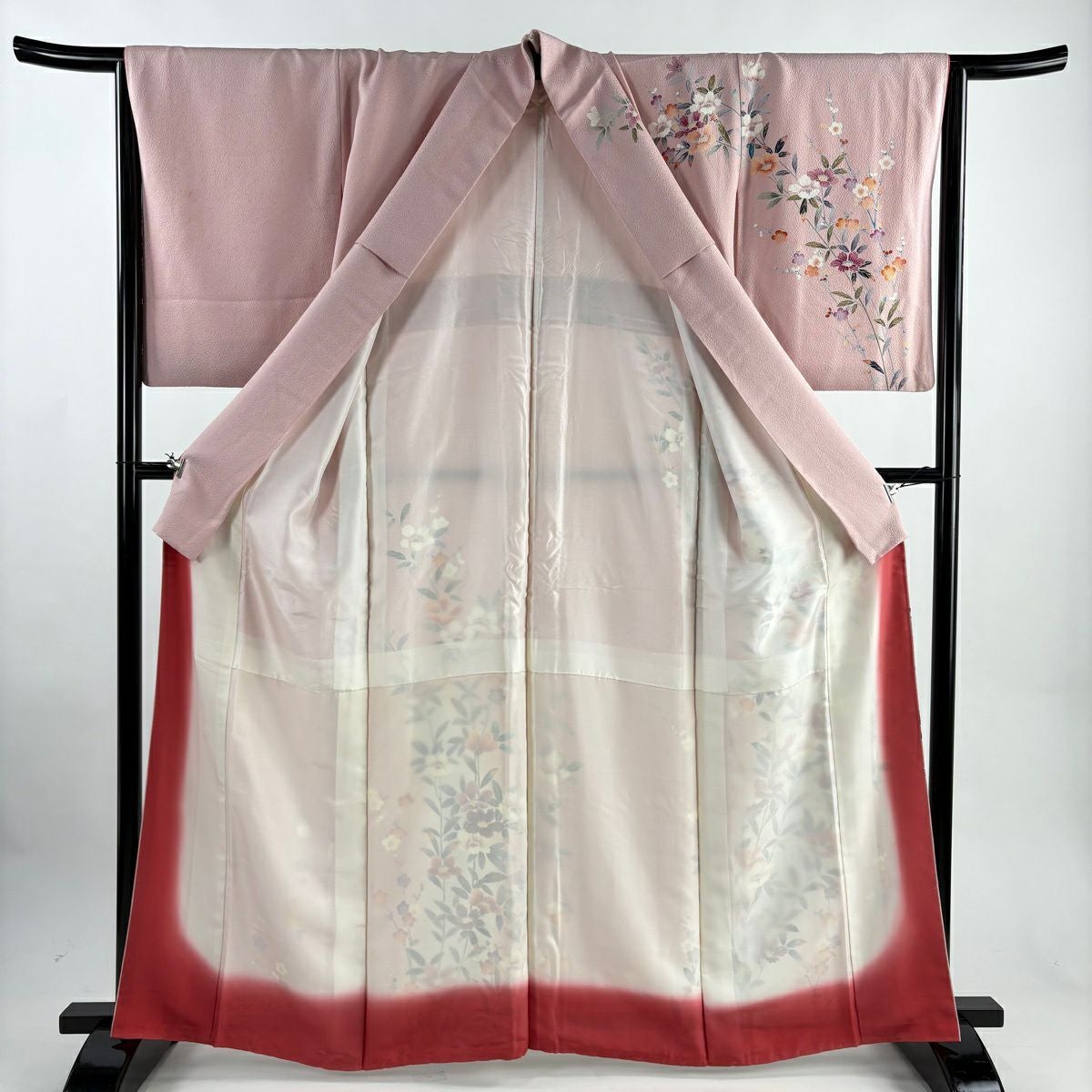 50%OFF 付下げ 身丈160cm 裄丈63.5cm S 袷 文箱 扇 刺繍 ピンク 正絹 秀品 K50