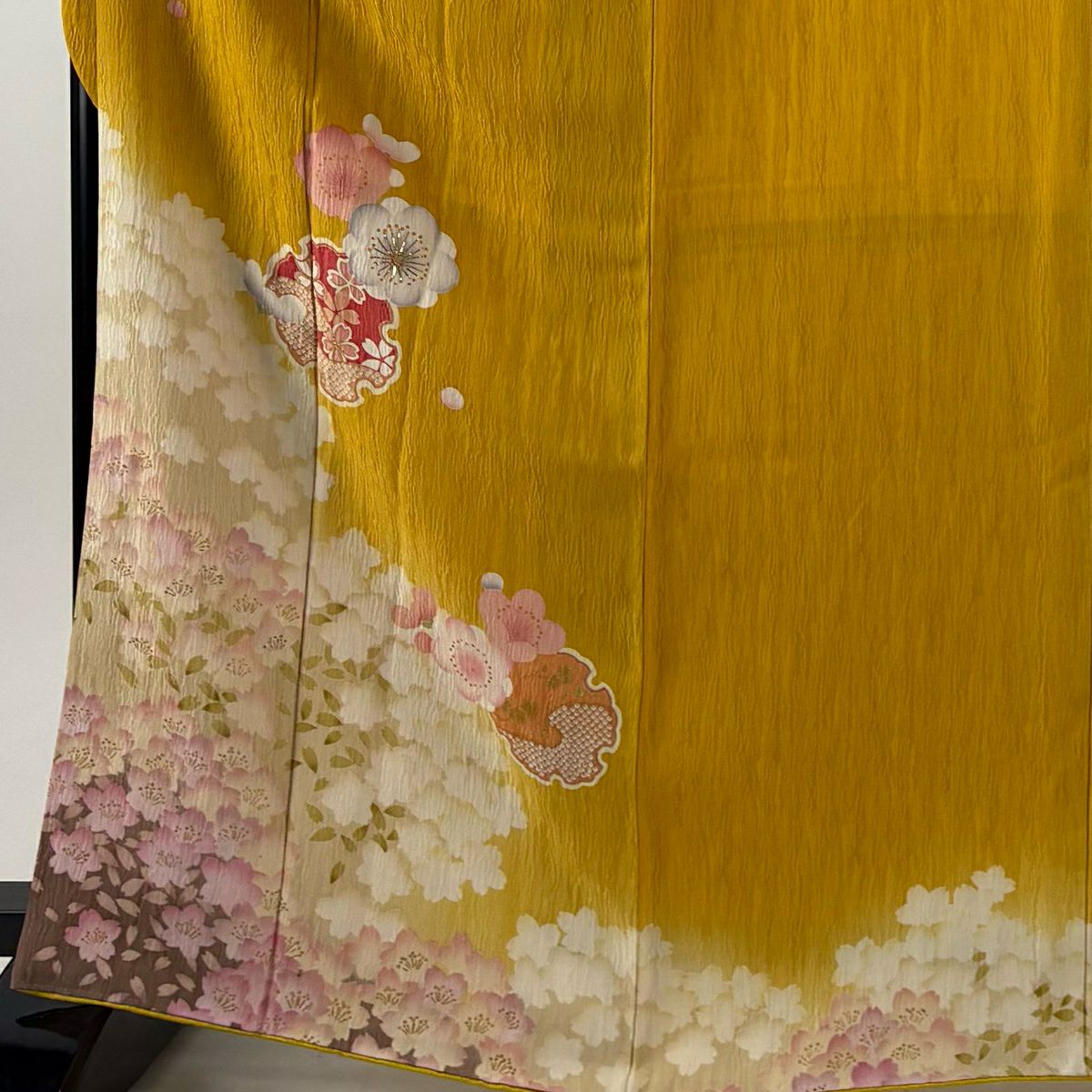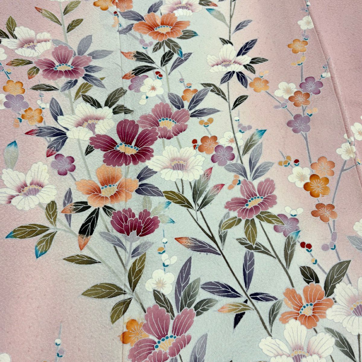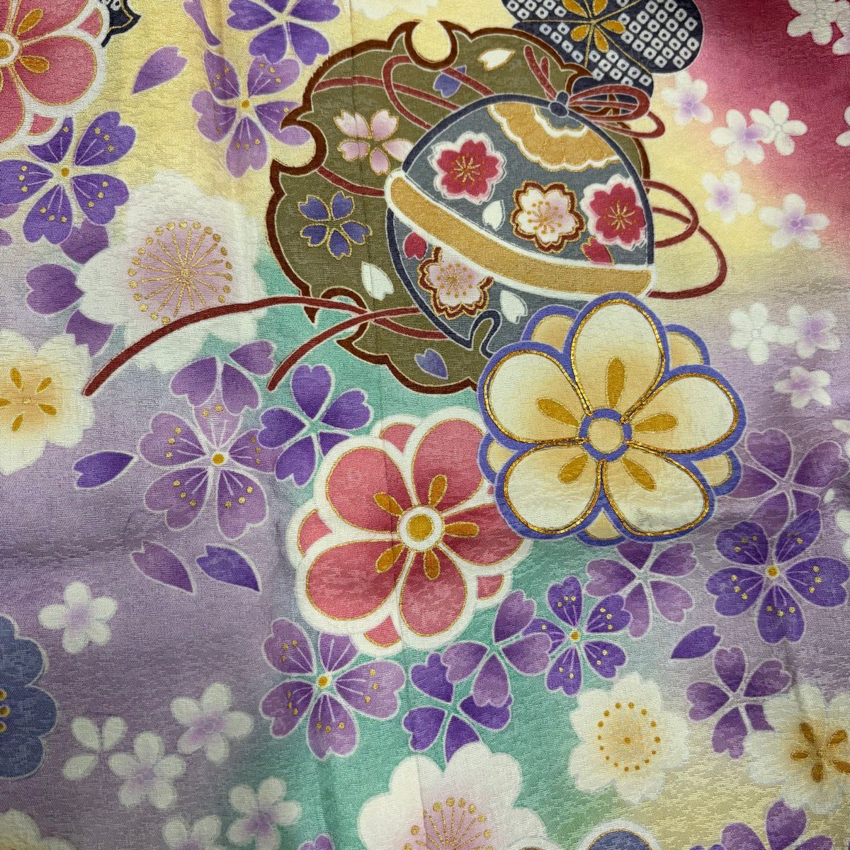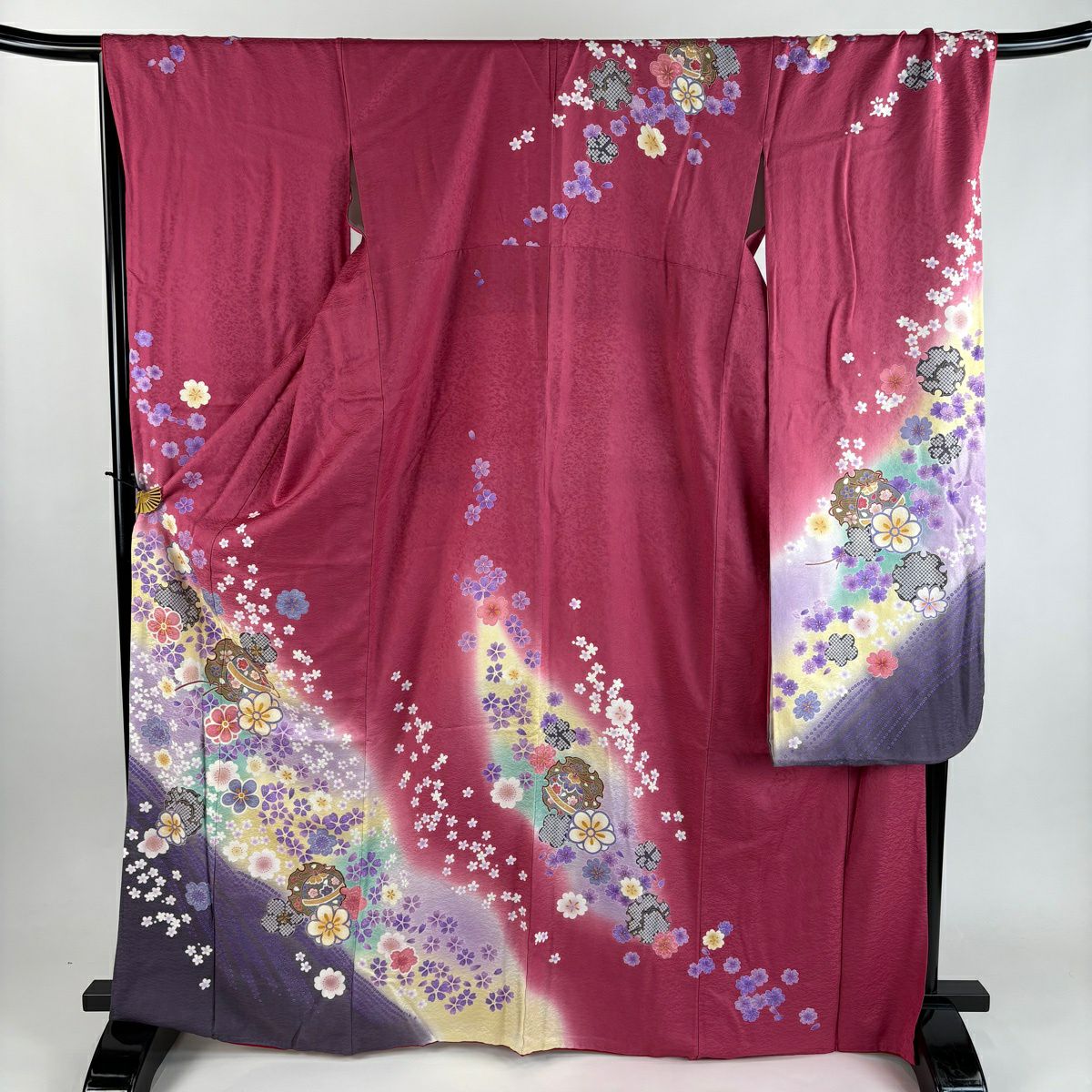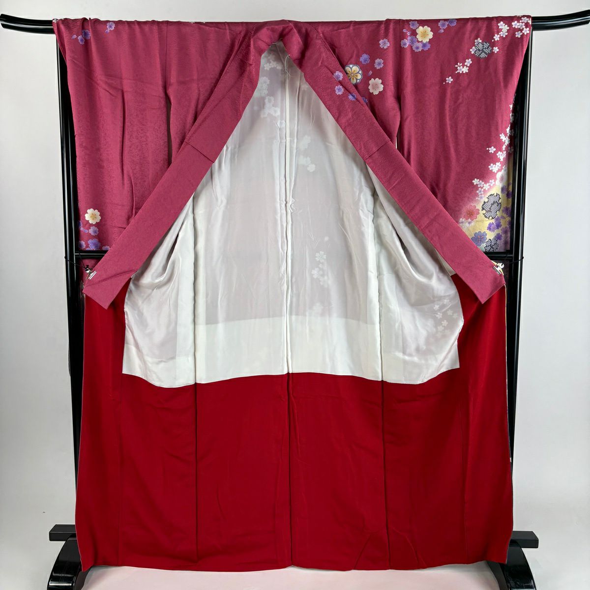 50%OFF 振袖 身丈166cm 裄丈67cm M 袷 桜 枝梅 金彩 染め分け 赤紫 正絹 秀品 K50