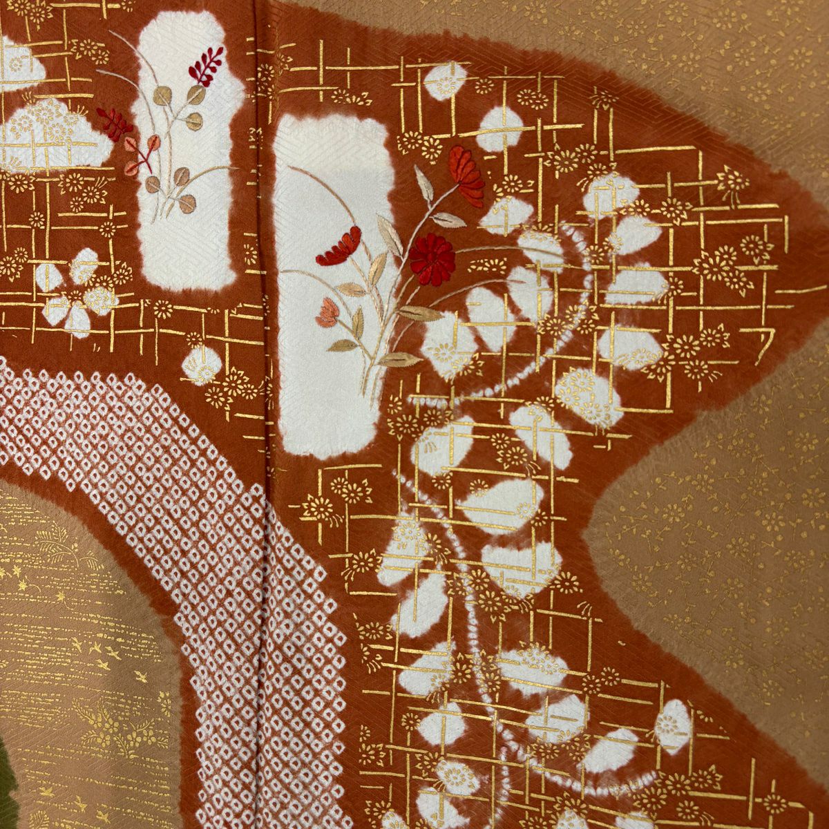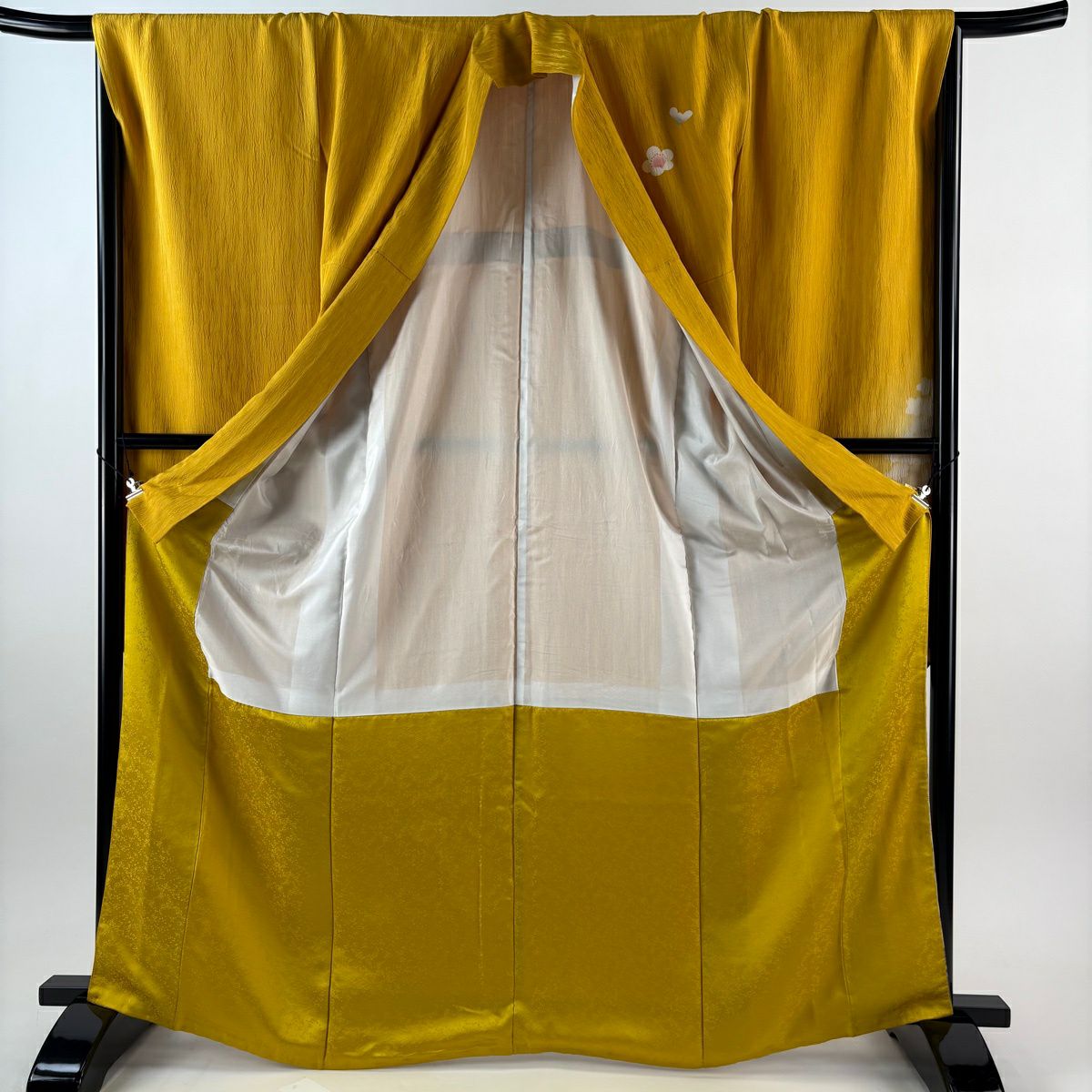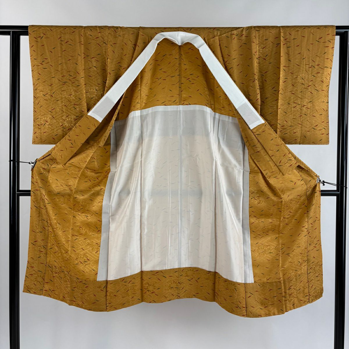 50%OFF 訪問着 身丈155cm 裄丈65cm M 袷 貝桶 鶴 金糸 金彩 オレンジ 正絹 秀品 K50