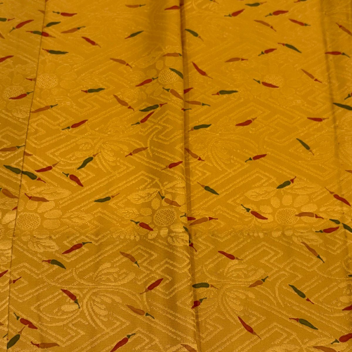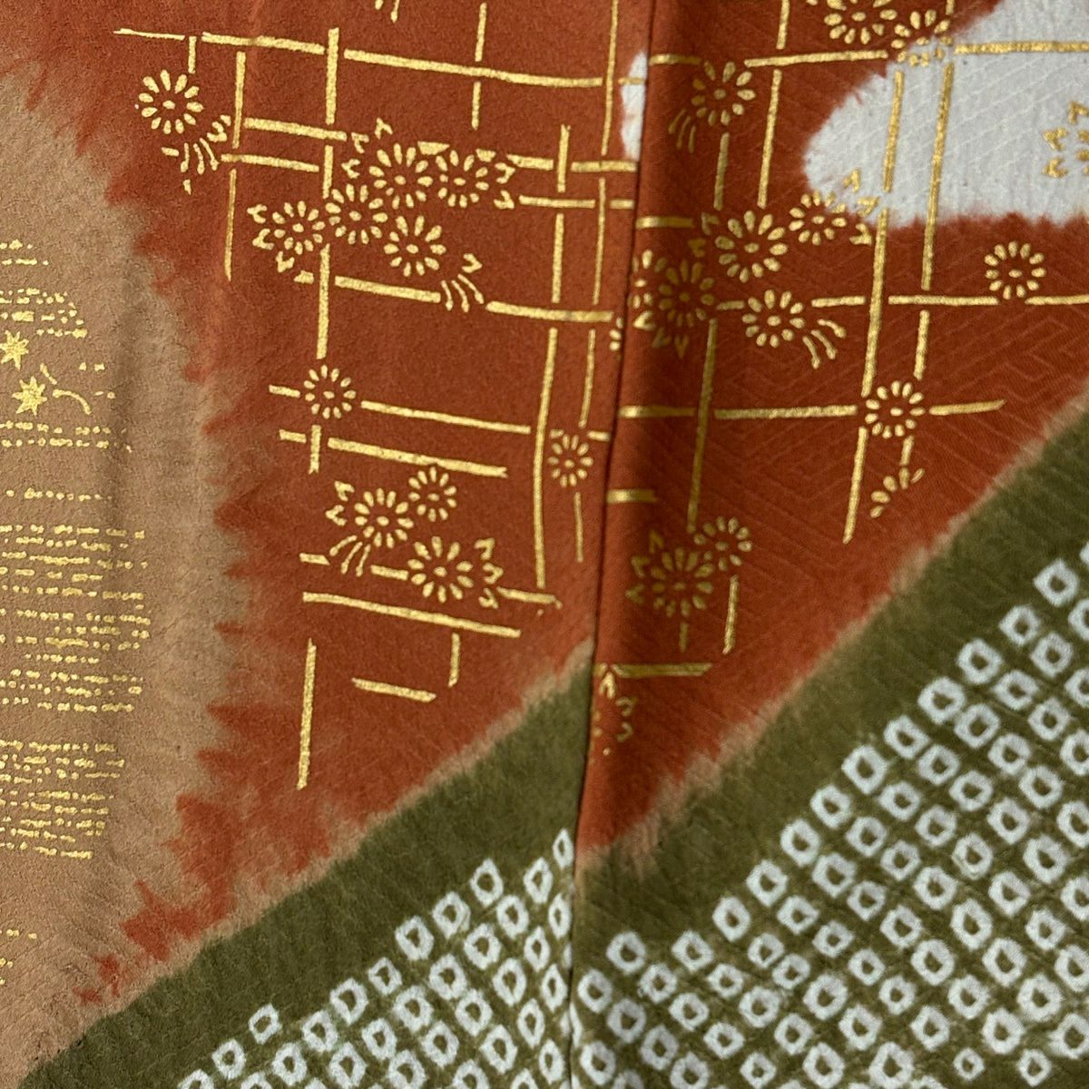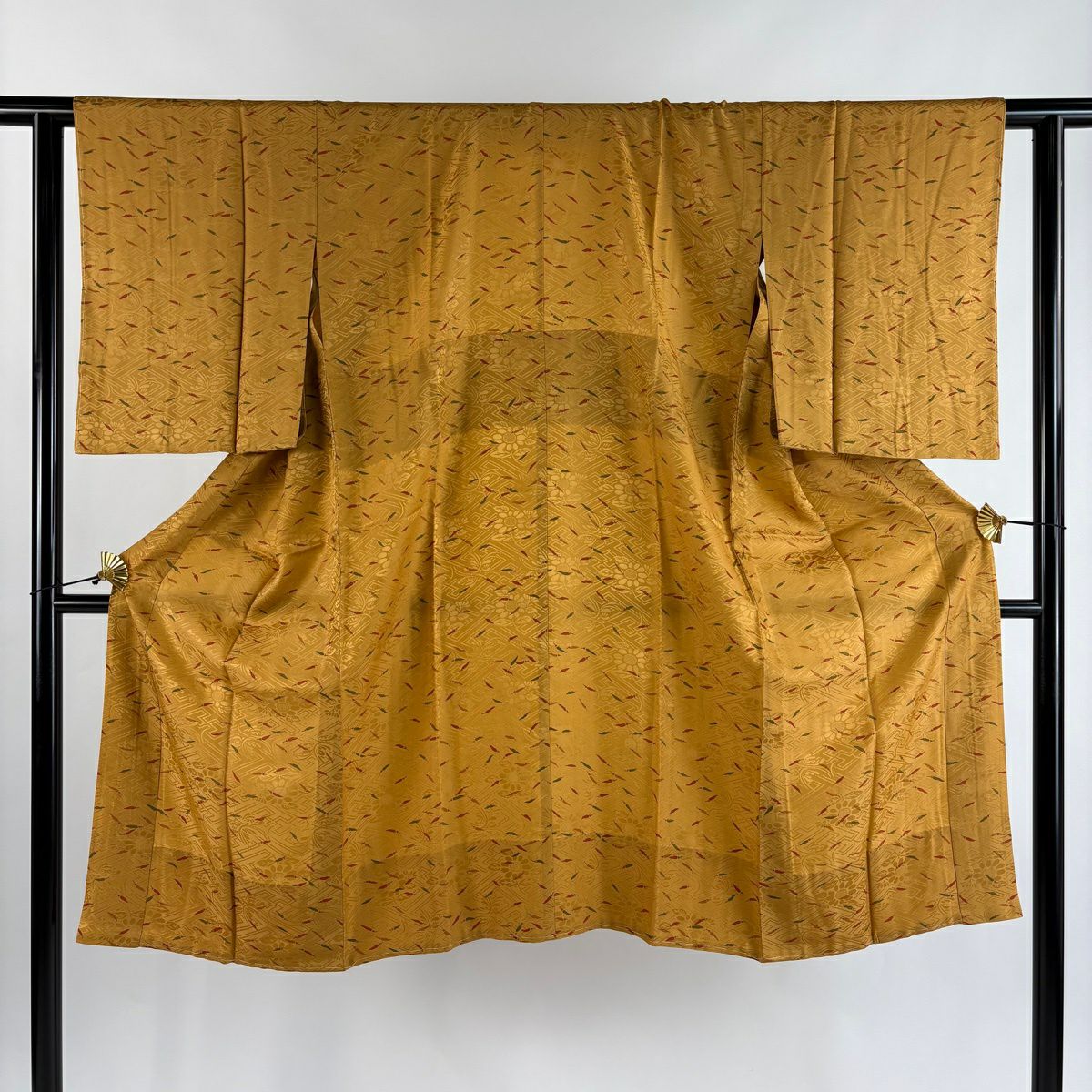 50%OFF 小紋 身丈156cm 裄丈64cm M 袷 干支柄 地紋 金彩 オレンジ 正絹 秀品 K50