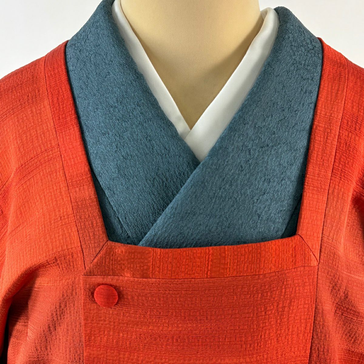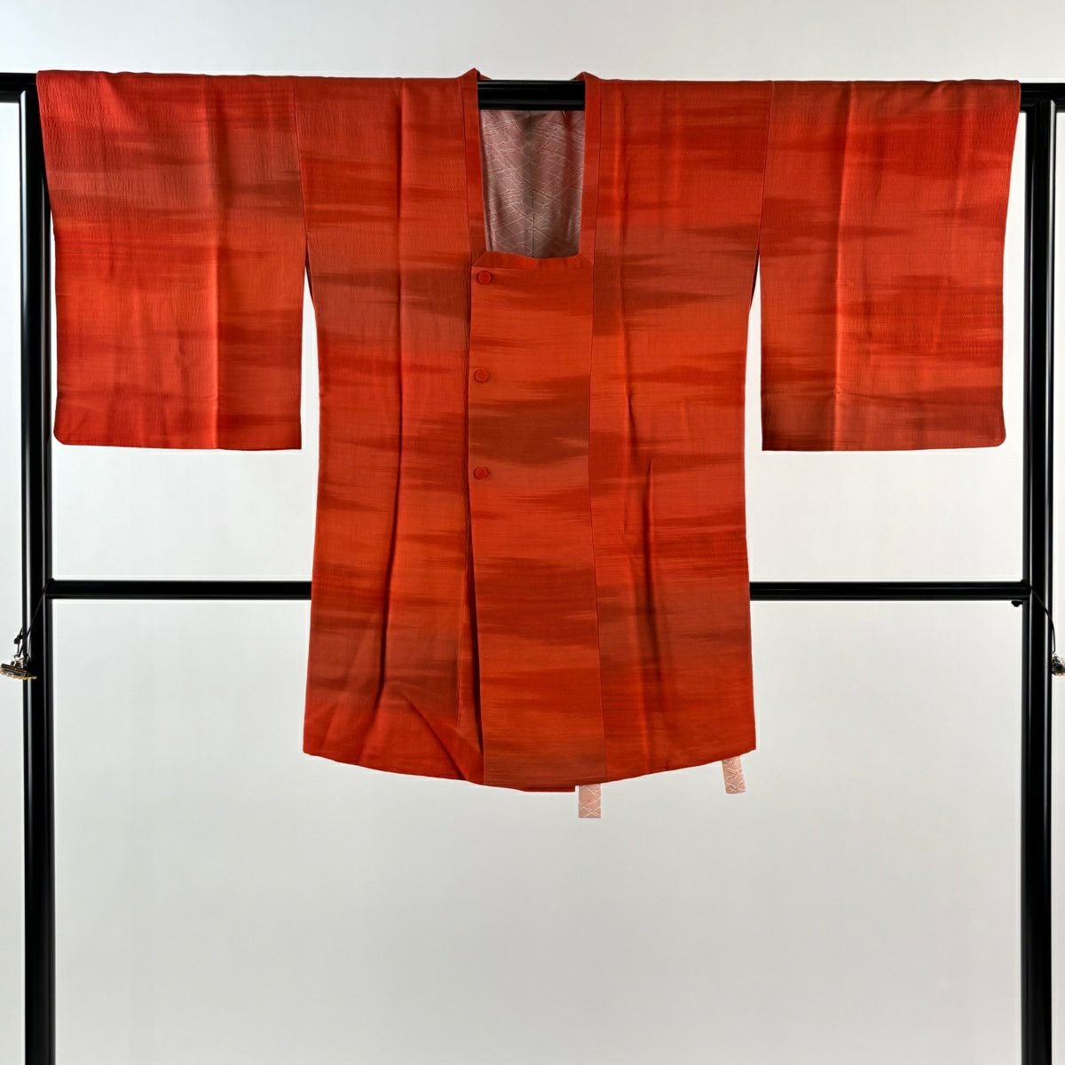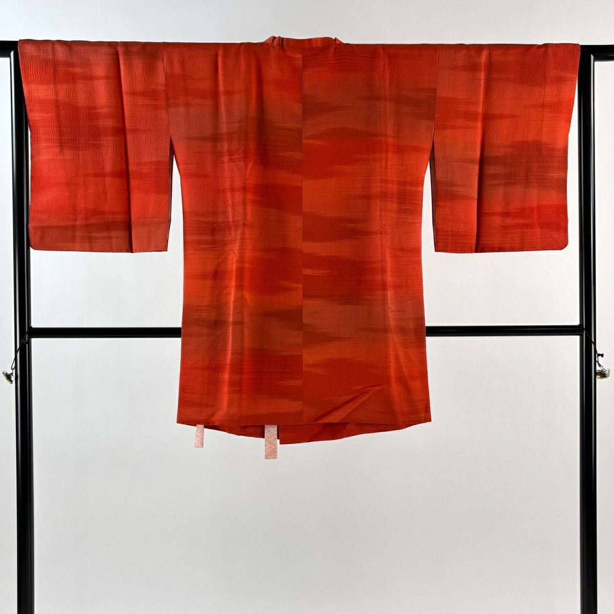 50%OFF 小紋 身丈156cm 裄丈64cm M 袷 干支柄 地紋 金彩 オレンジ 正絹 秀品 K50