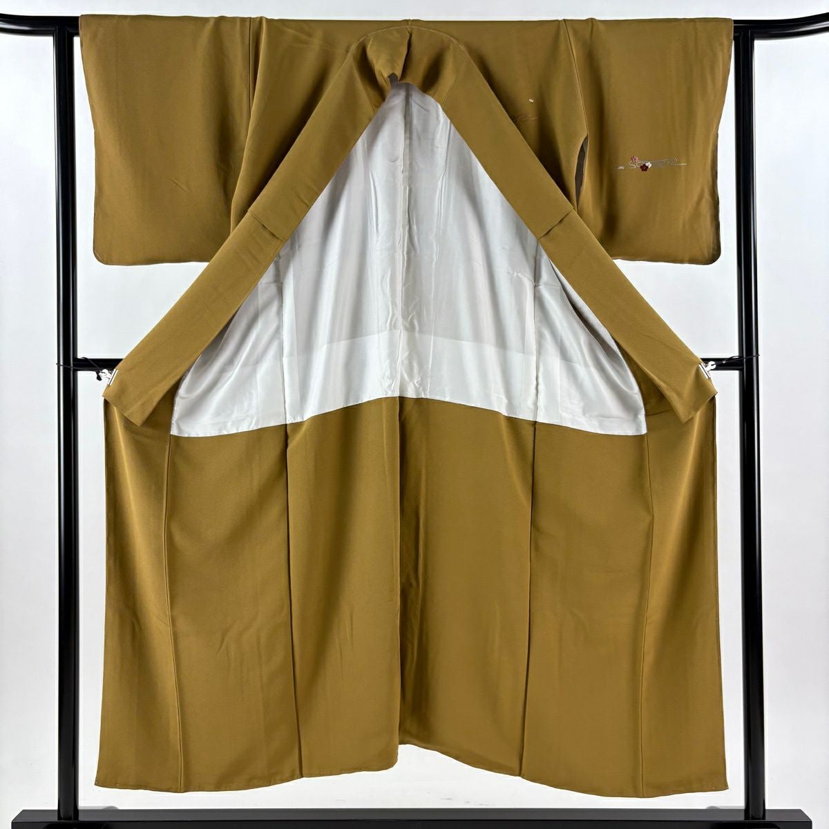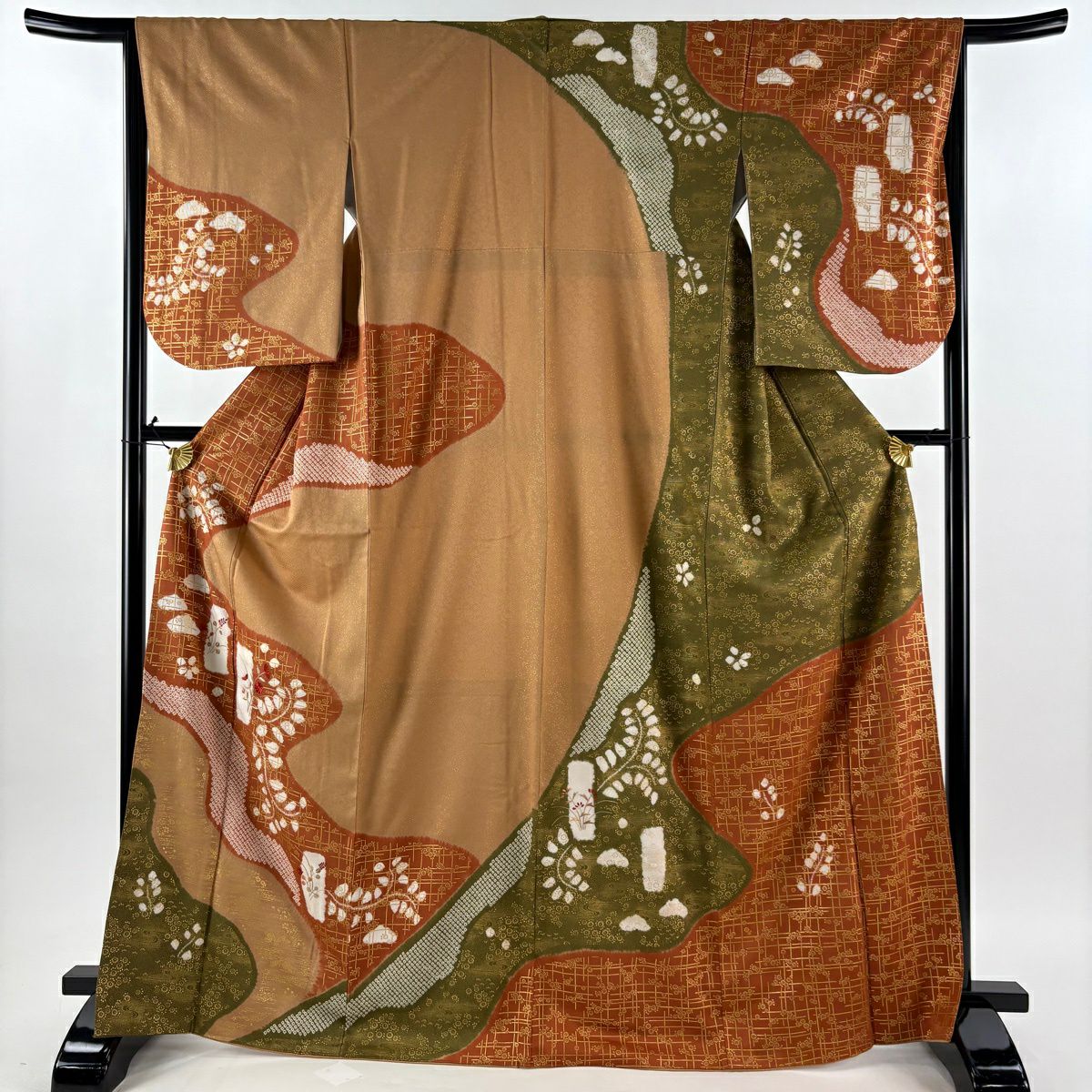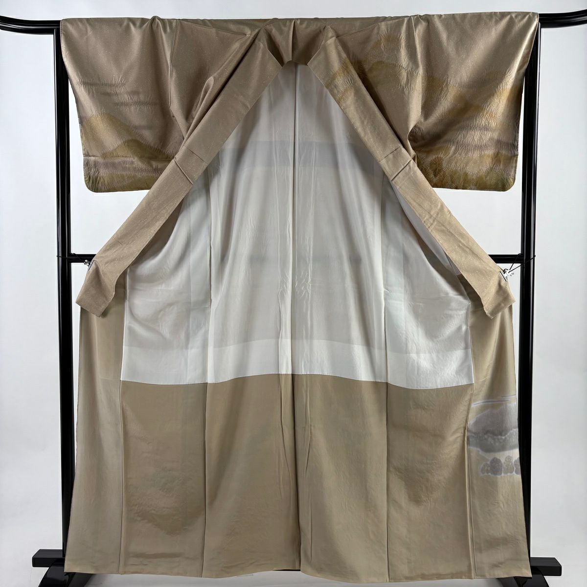 50%OFF 色留袖 身丈165cm 裄丈67cm M 袷 菊 熨斗 金糸 金銀彩 薄茶色 正絹 秀品 K50