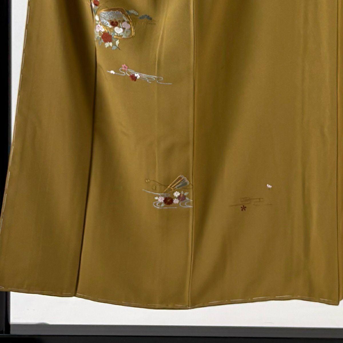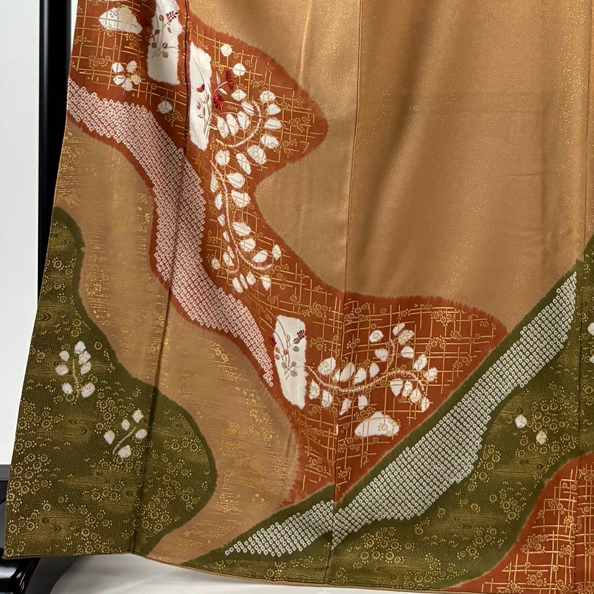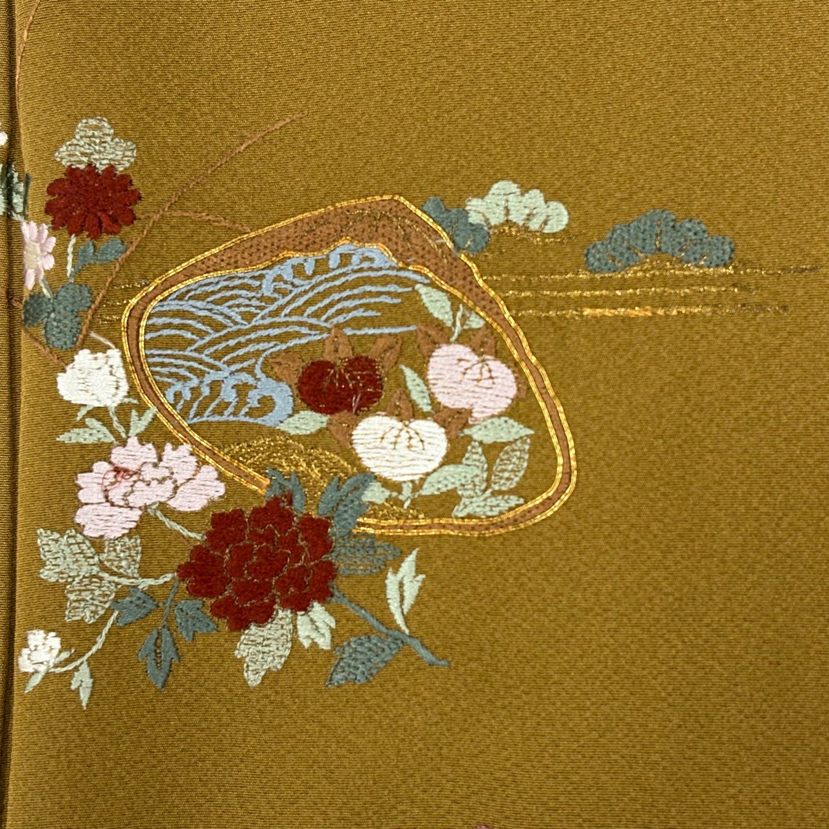 50%OFF 色留袖 身丈165cm 裄丈67cm M 袷 菊 熨斗 金糸 金銀彩 薄茶色 正絹 秀品 K50