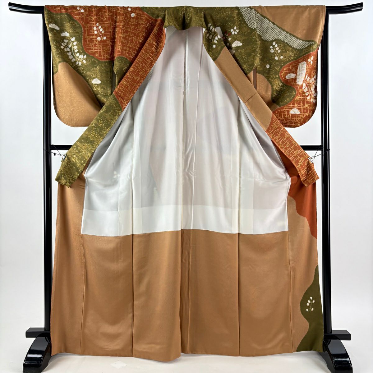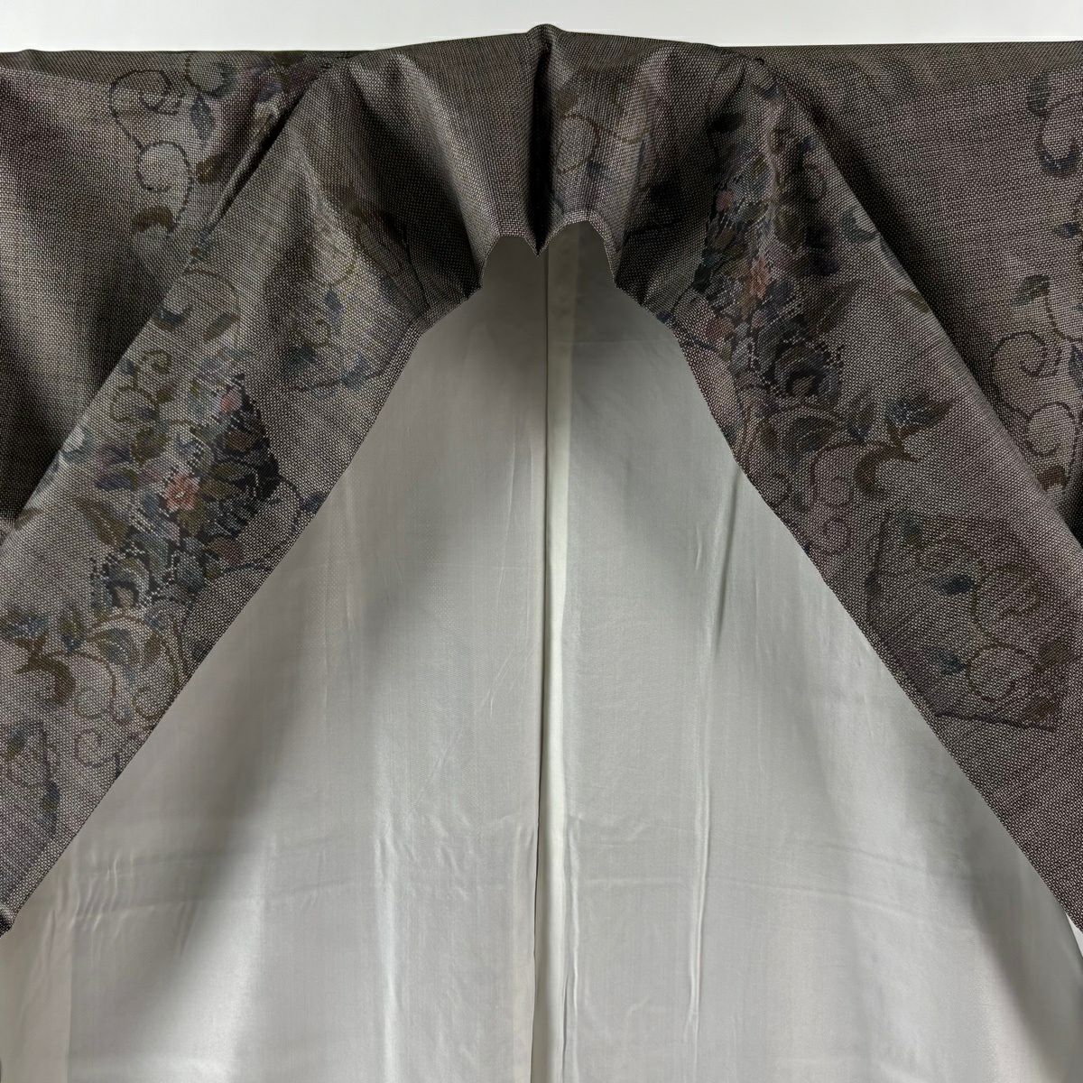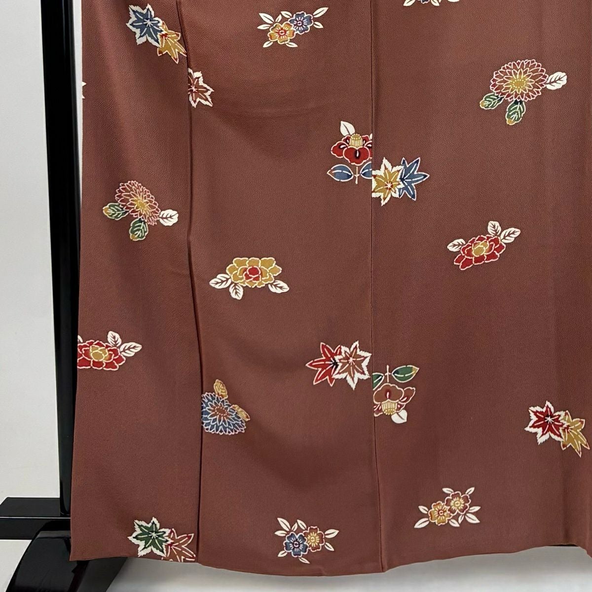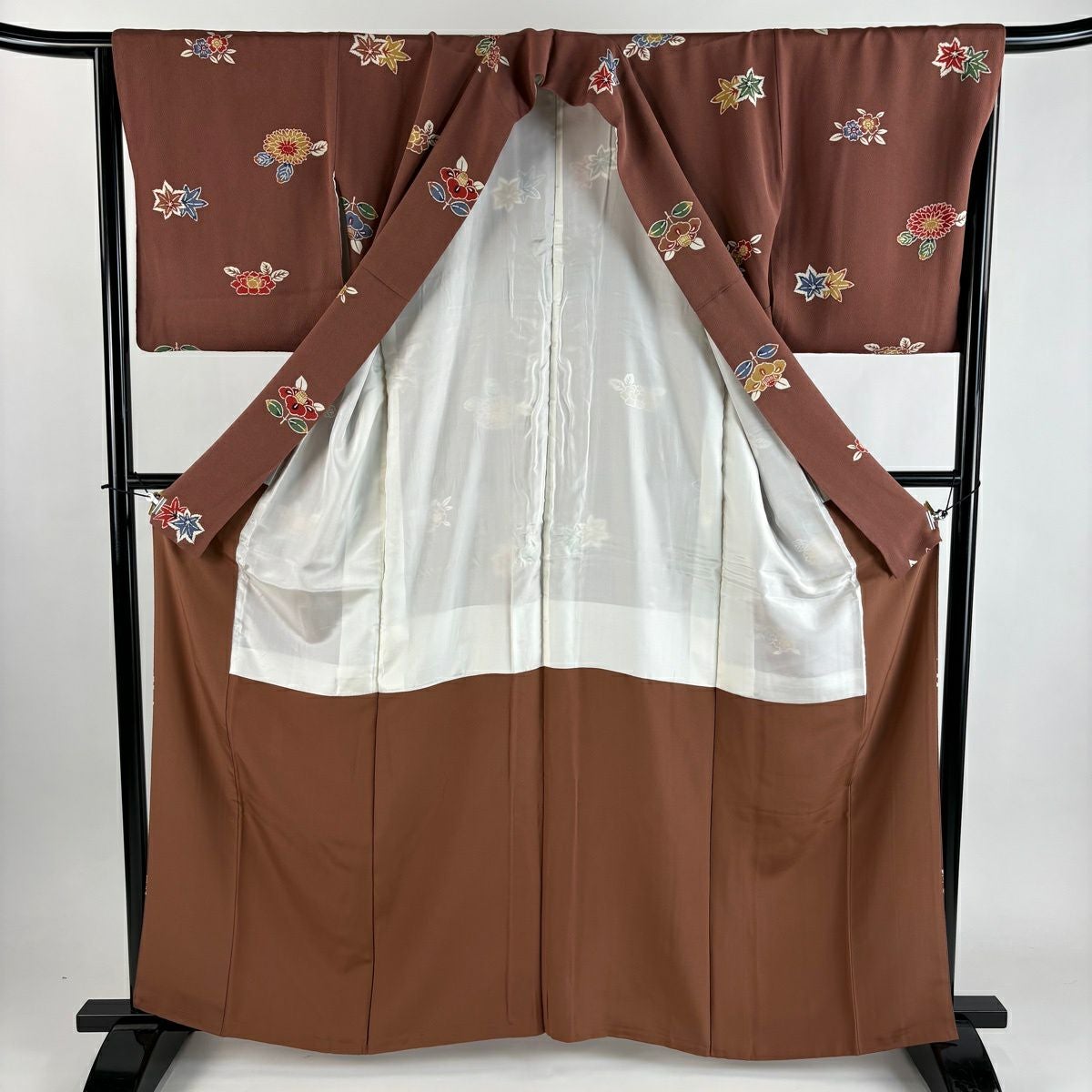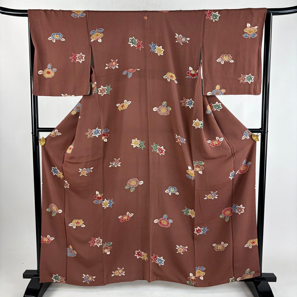 50%OFF 訪問着 身丈159.5cm 裄丈63.5cm S 袷 草花 シルエット 焦茶色 正絹 秀品 K50