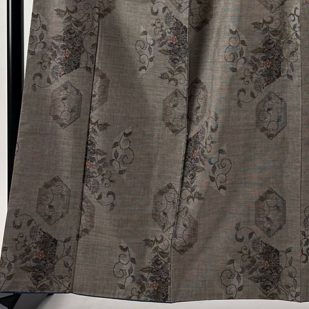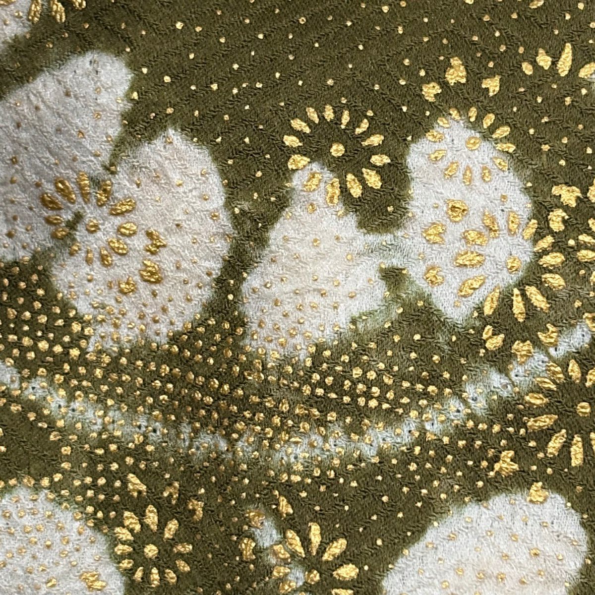 50%OFF 【美品】 小紋 身丈162cm 裄丈66.5cm M 袷 地紋 花 茶緑色 正絹 秀品 K50