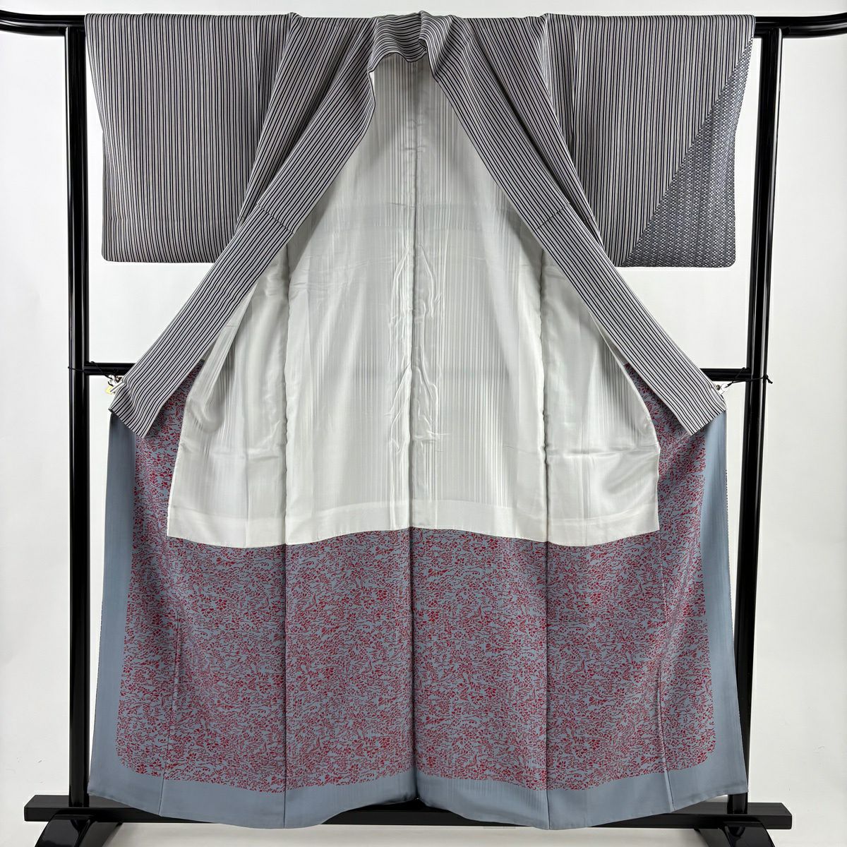 50%OFF 【美品】 付下げ 身丈154cm 裄丈65cm M 袷 落款あり 波 黒灰 正絹 秀品 K50