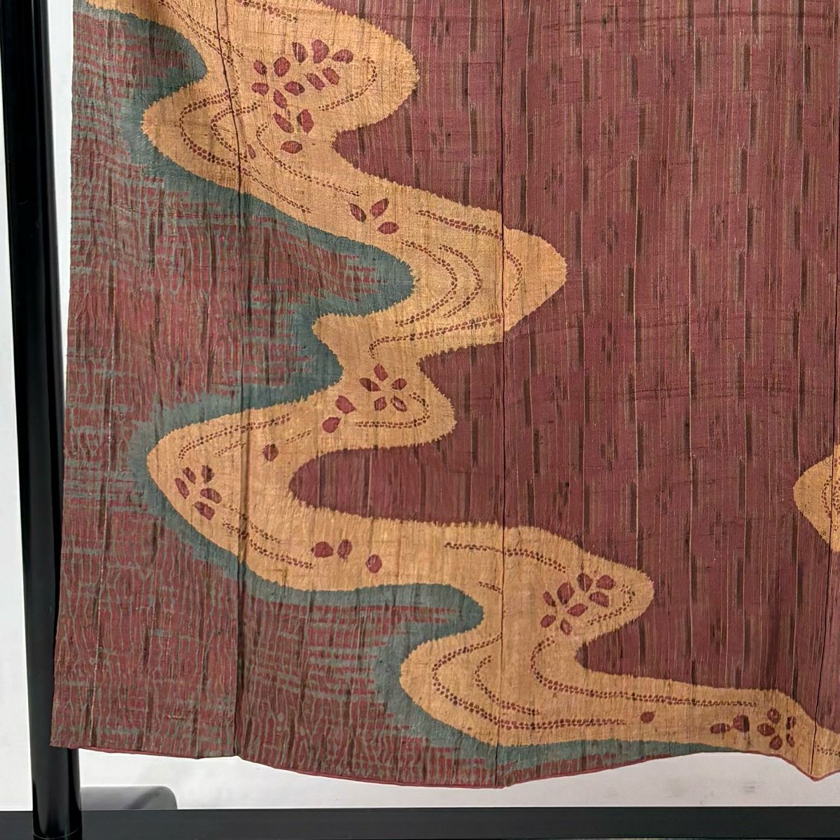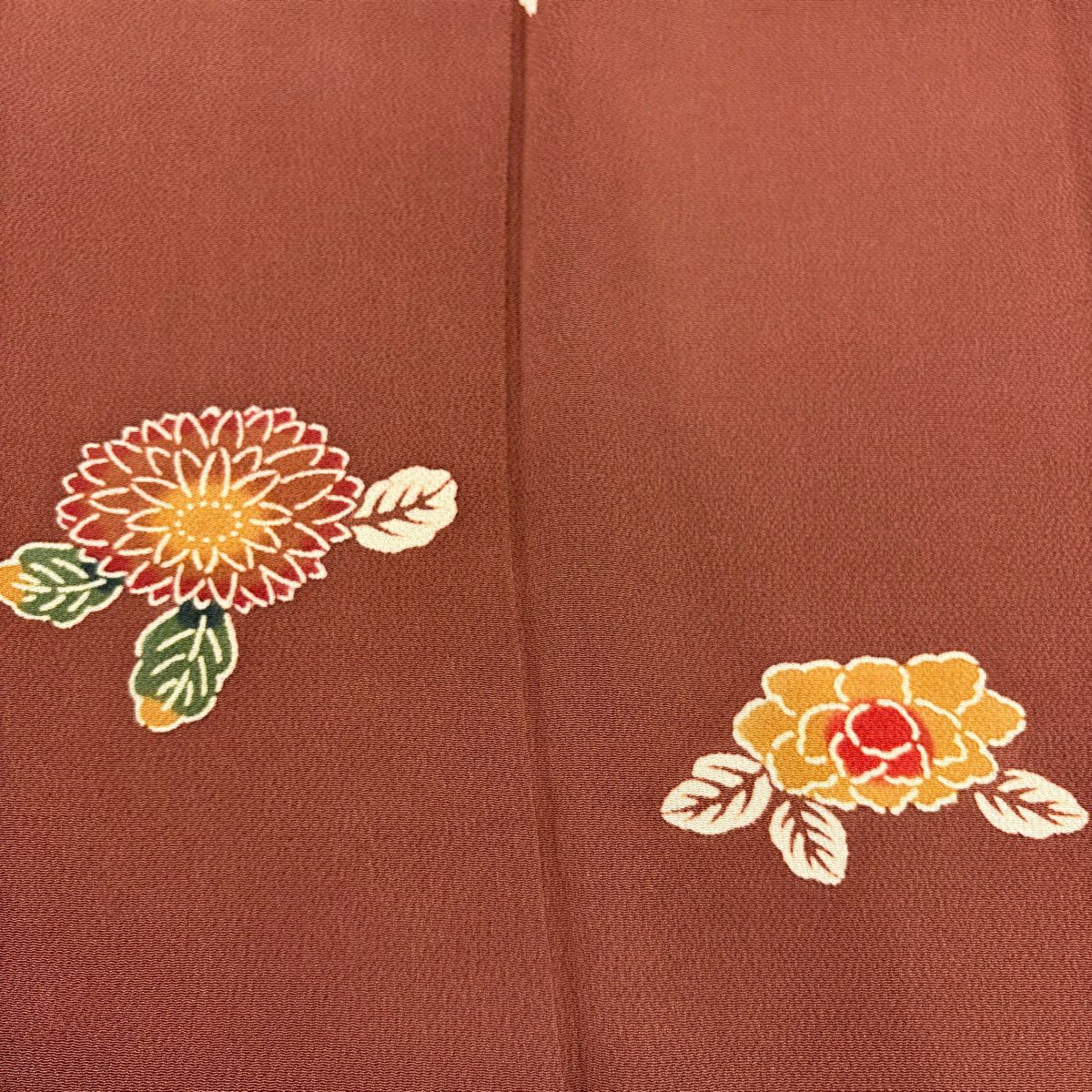 50%OFF 【美品】 紬 身丈158cm 裄丈64.5cm M 袷 色紙 草花 焦茶色 正絹 秀品 K50