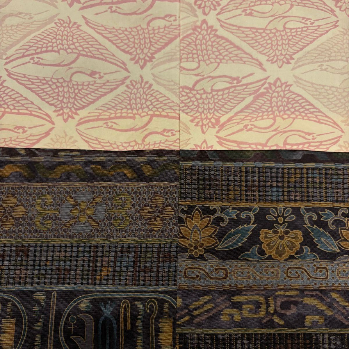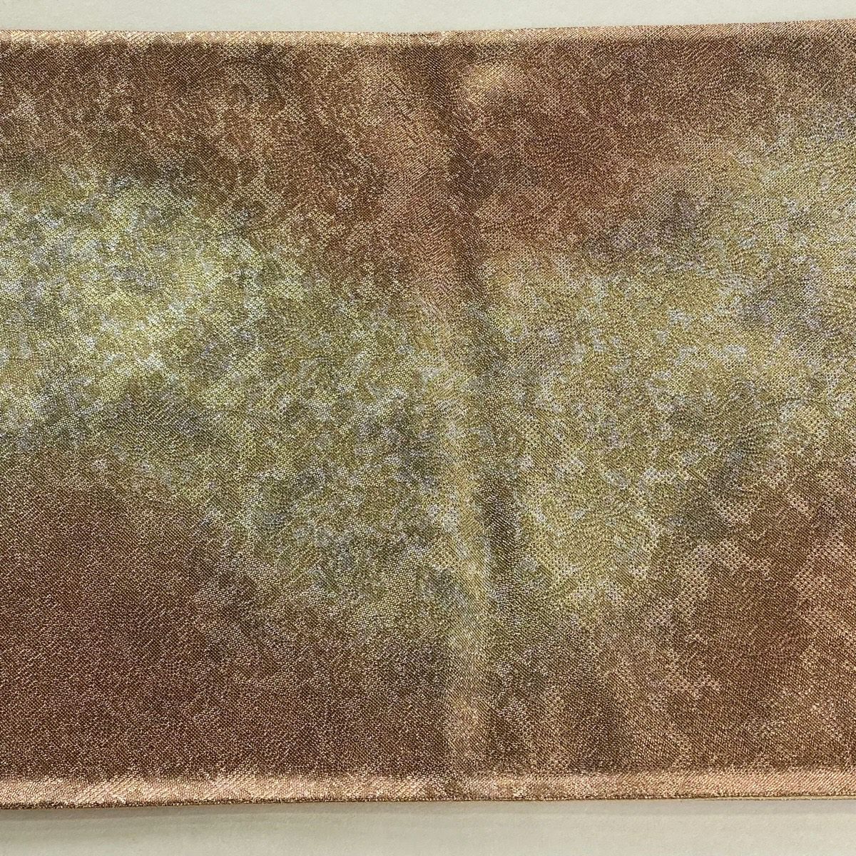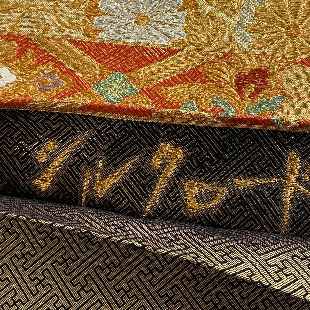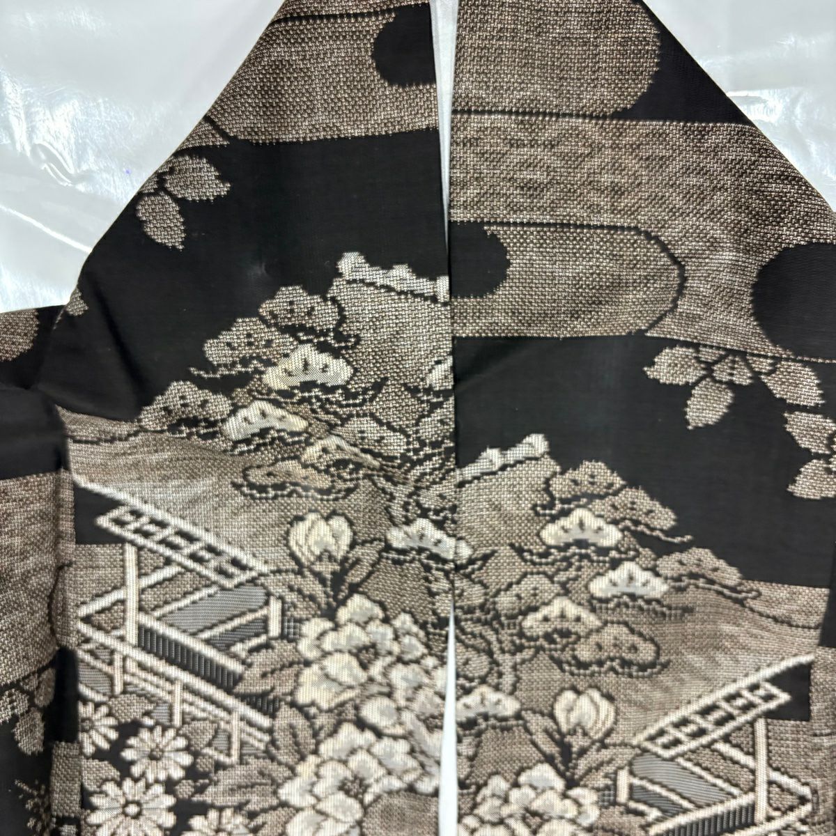 【最終値引き】 77%OFF 【美品】 袋帯 秀品 若松 幾何学模様 金銀糸 箔 薄茶色 六通 正絹 K70