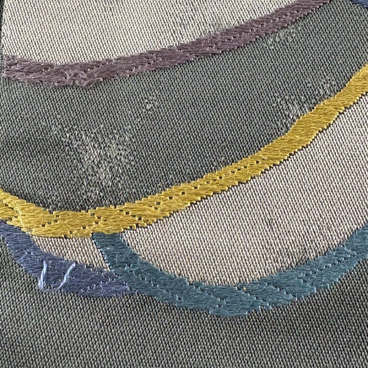 【在庫一掃】 付下げ 身丈157.5cm 裄丈64cm M 袷 檜扇 人物 刺繍 金彩 よもぎ色 正絹 秀品