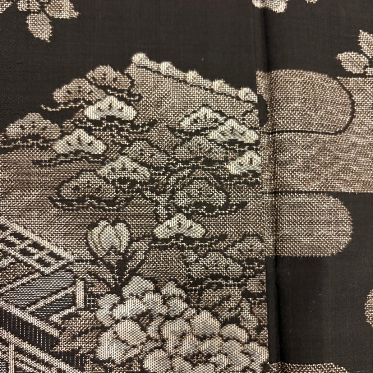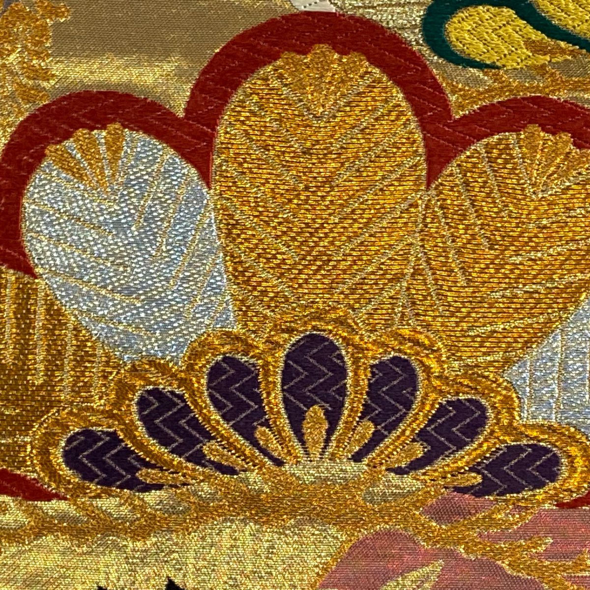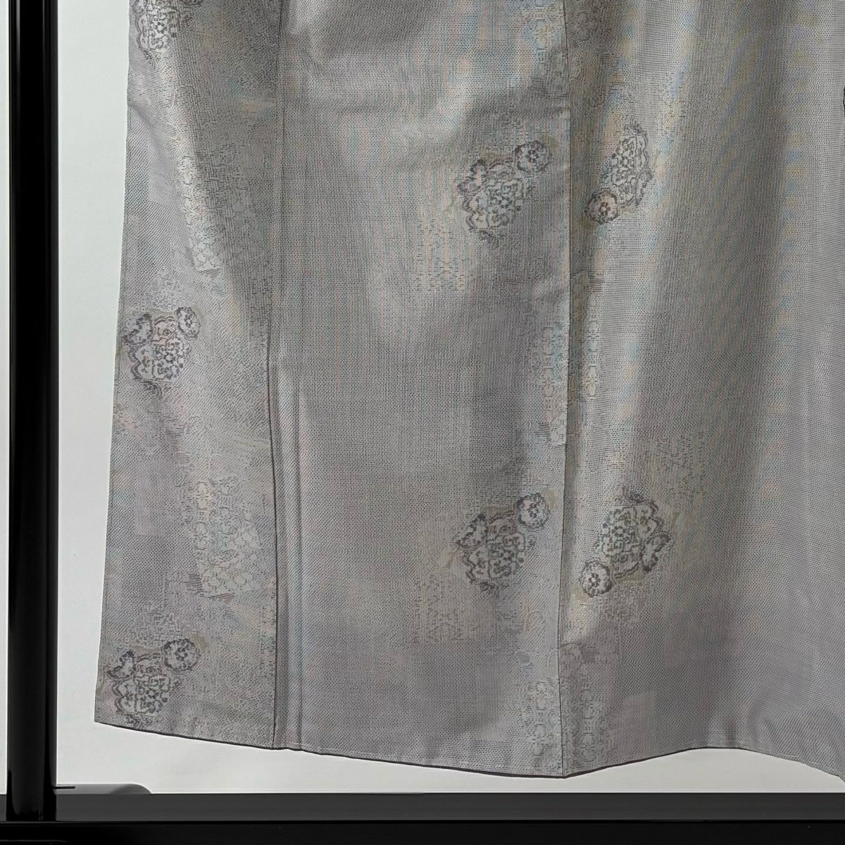 【最終値引き】 70%OFF 袋帯 秀品 川島織物 落款あり 菊 松 唐織 銀糸 灰紫 六通 正絹 K70