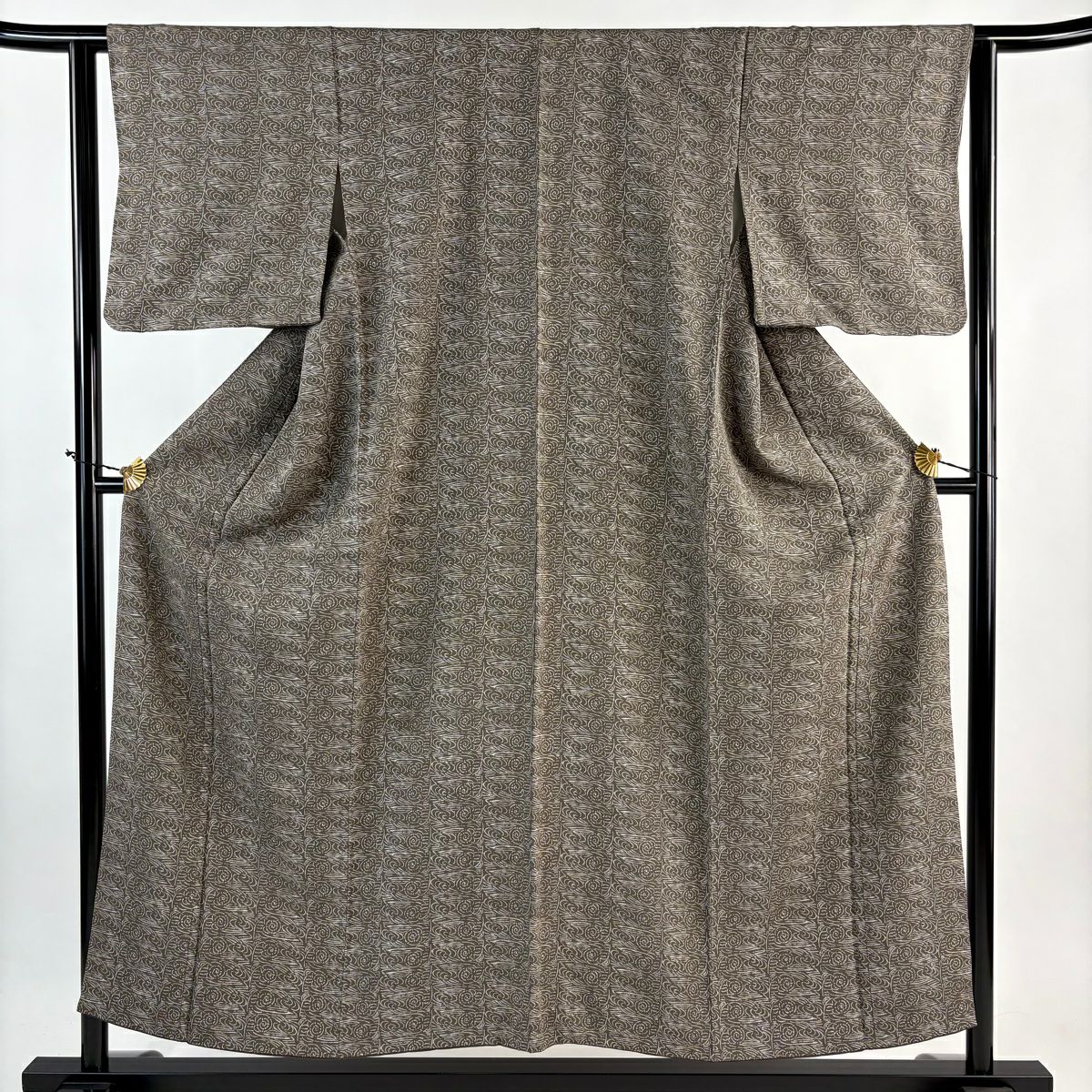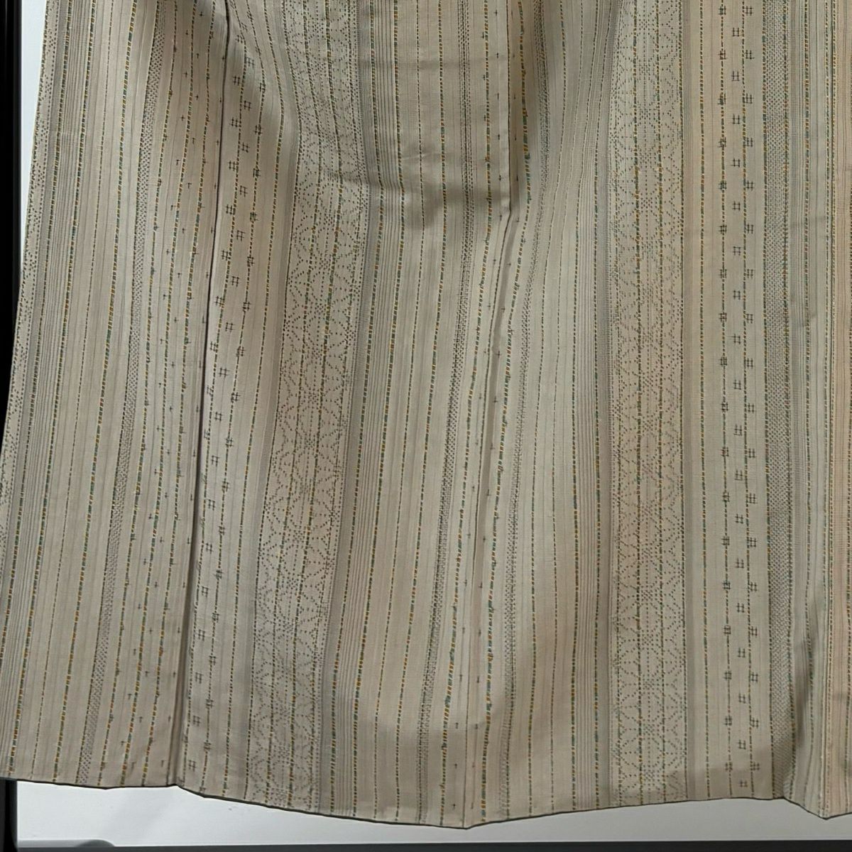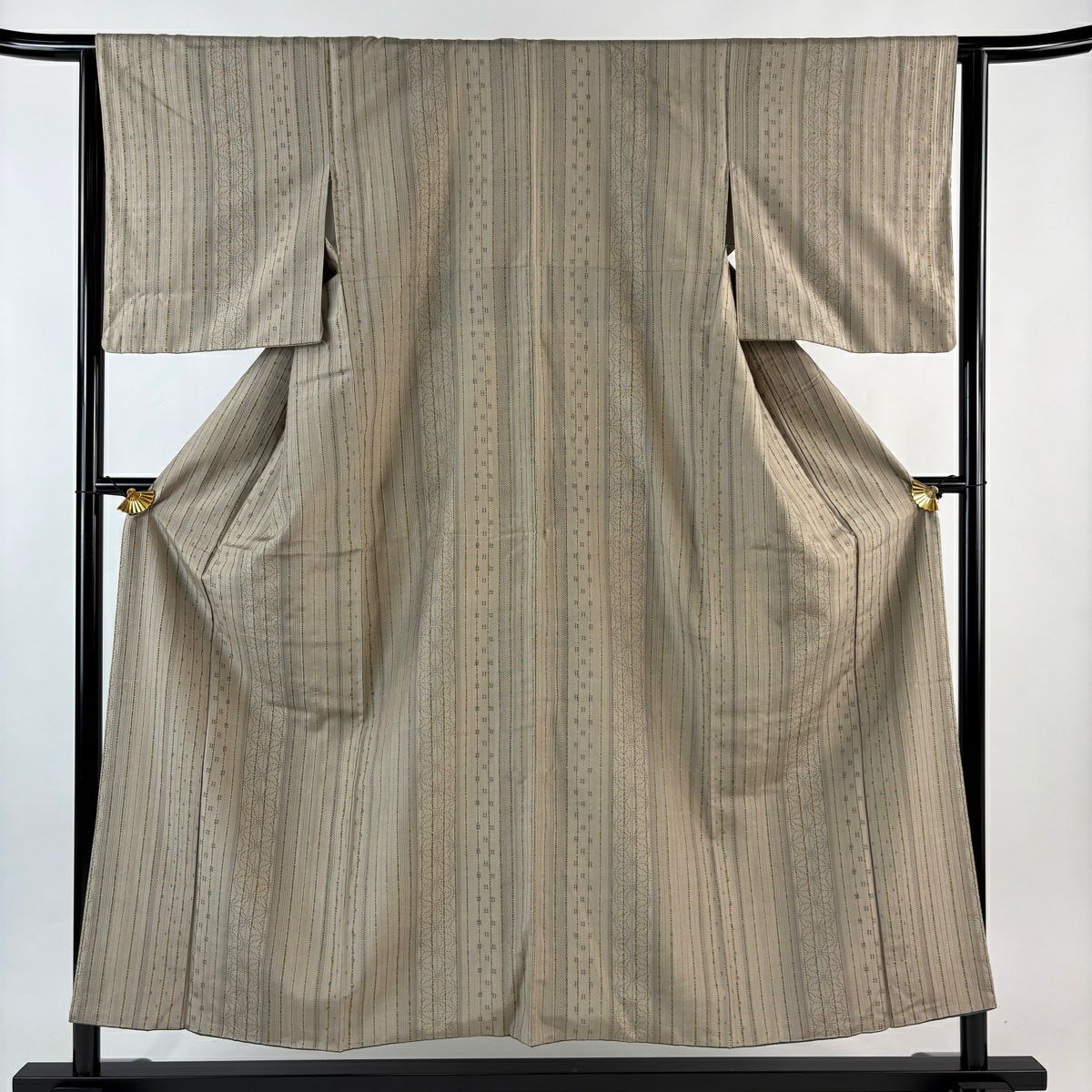 【在庫一掃】 【美品】 小紋 身丈152.5cm 裄丈62cm S 袷 紬地 幾何学 ベージュ 正絹 秀品
