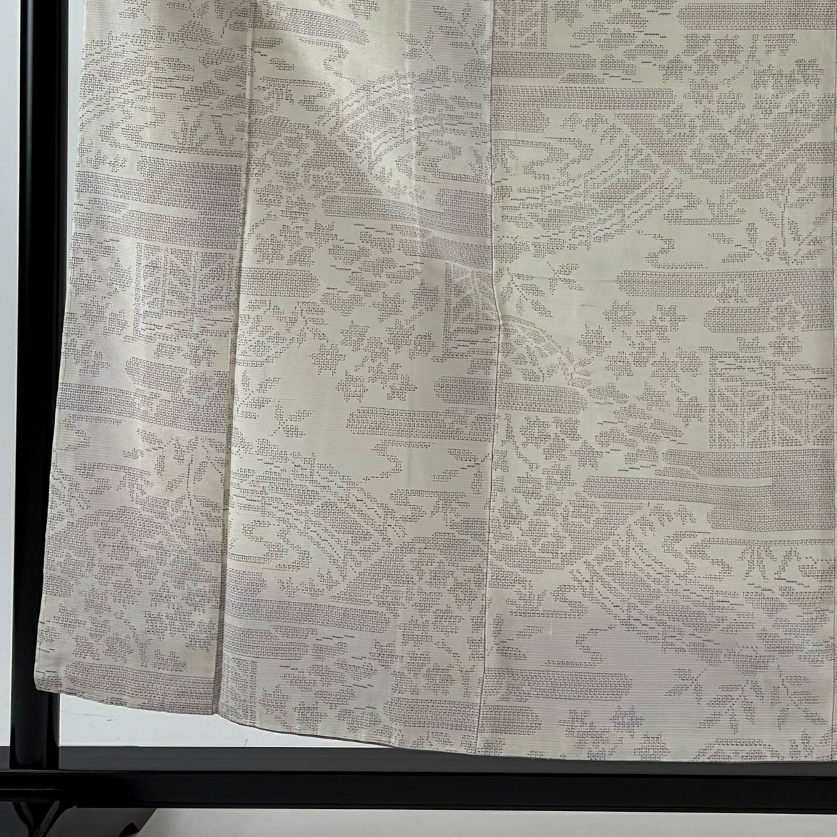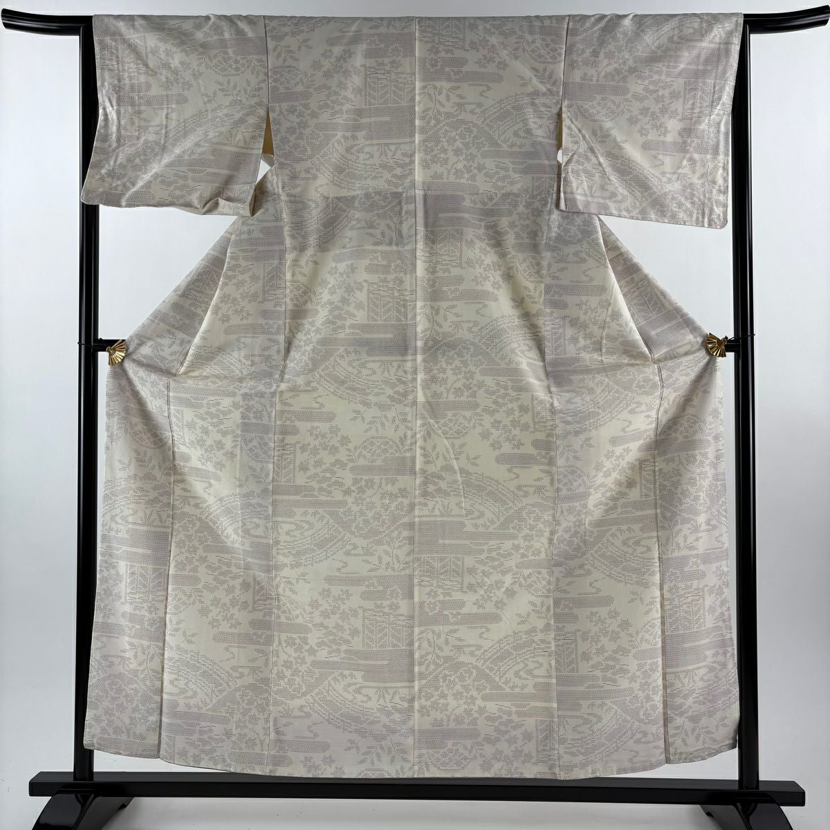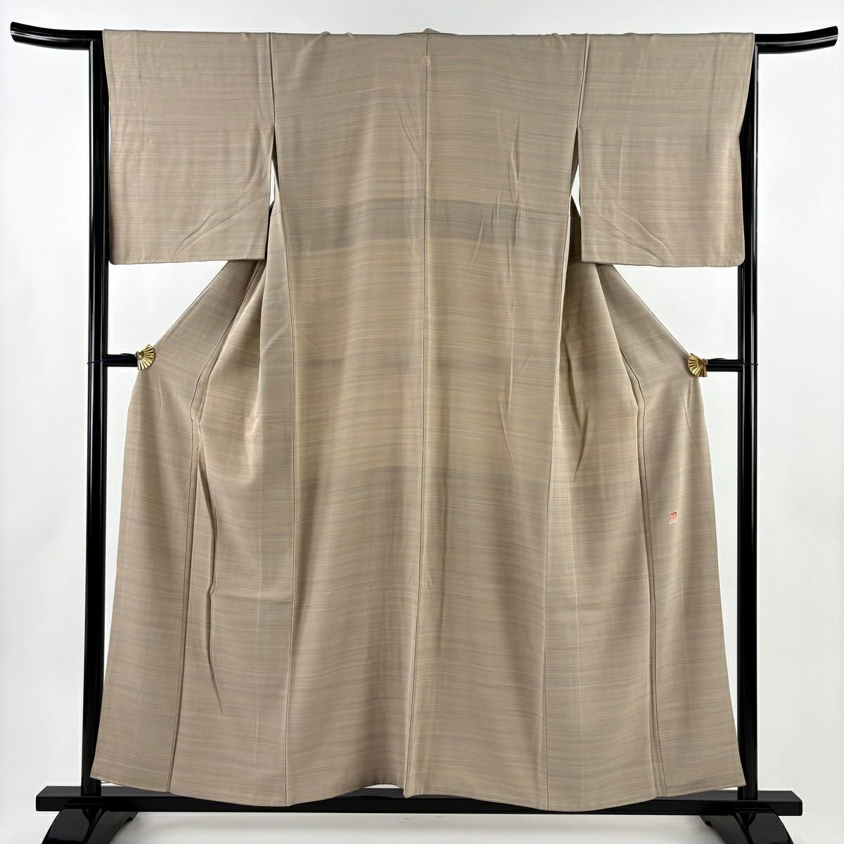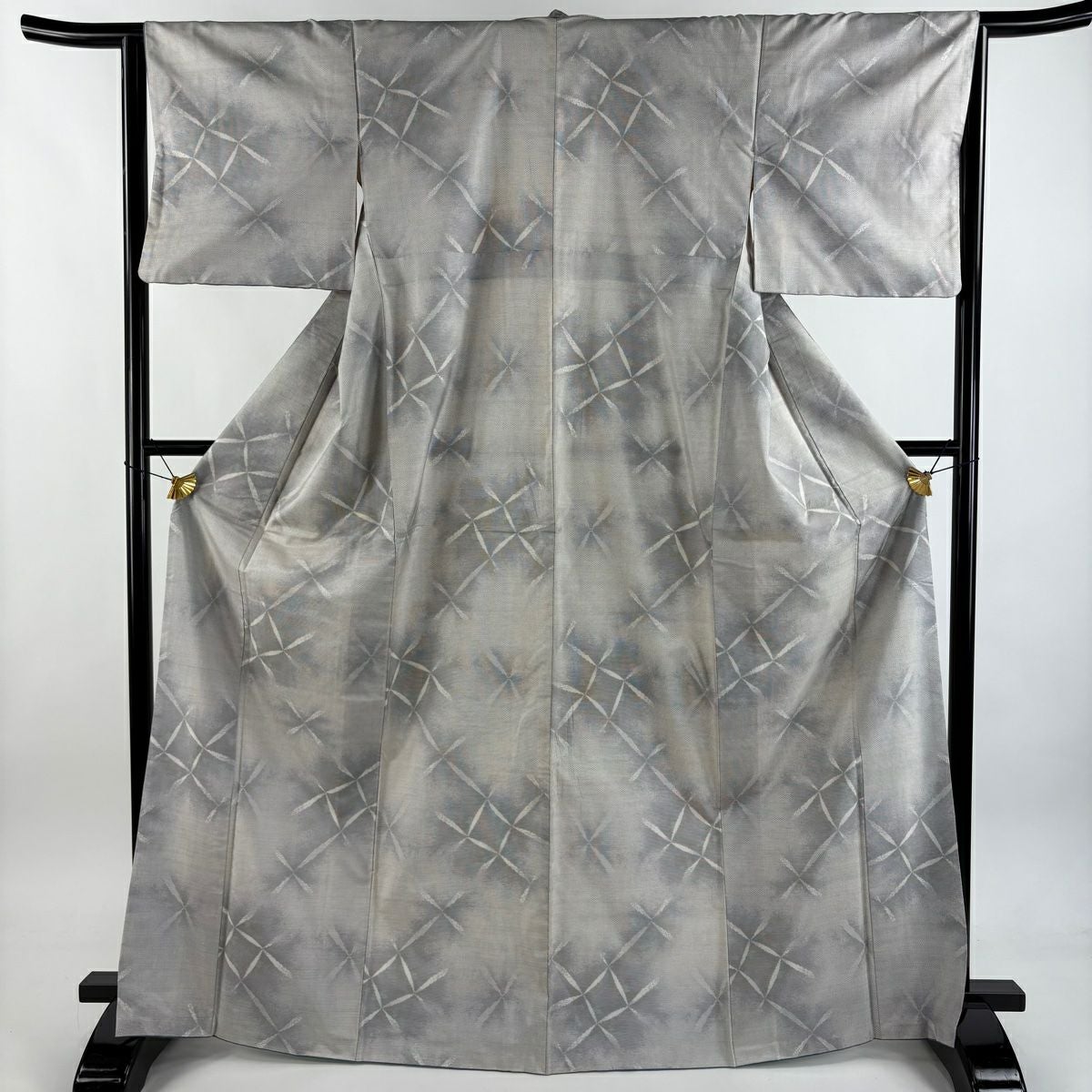 【在庫一掃】 【美品】 小紋 身丈152.5cm 裄丈62cm S 袷 紬地 幾何学 ベージュ 正絹 秀品