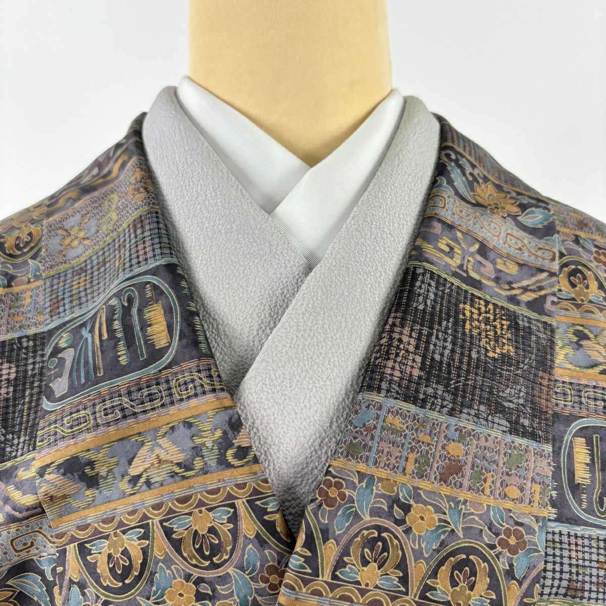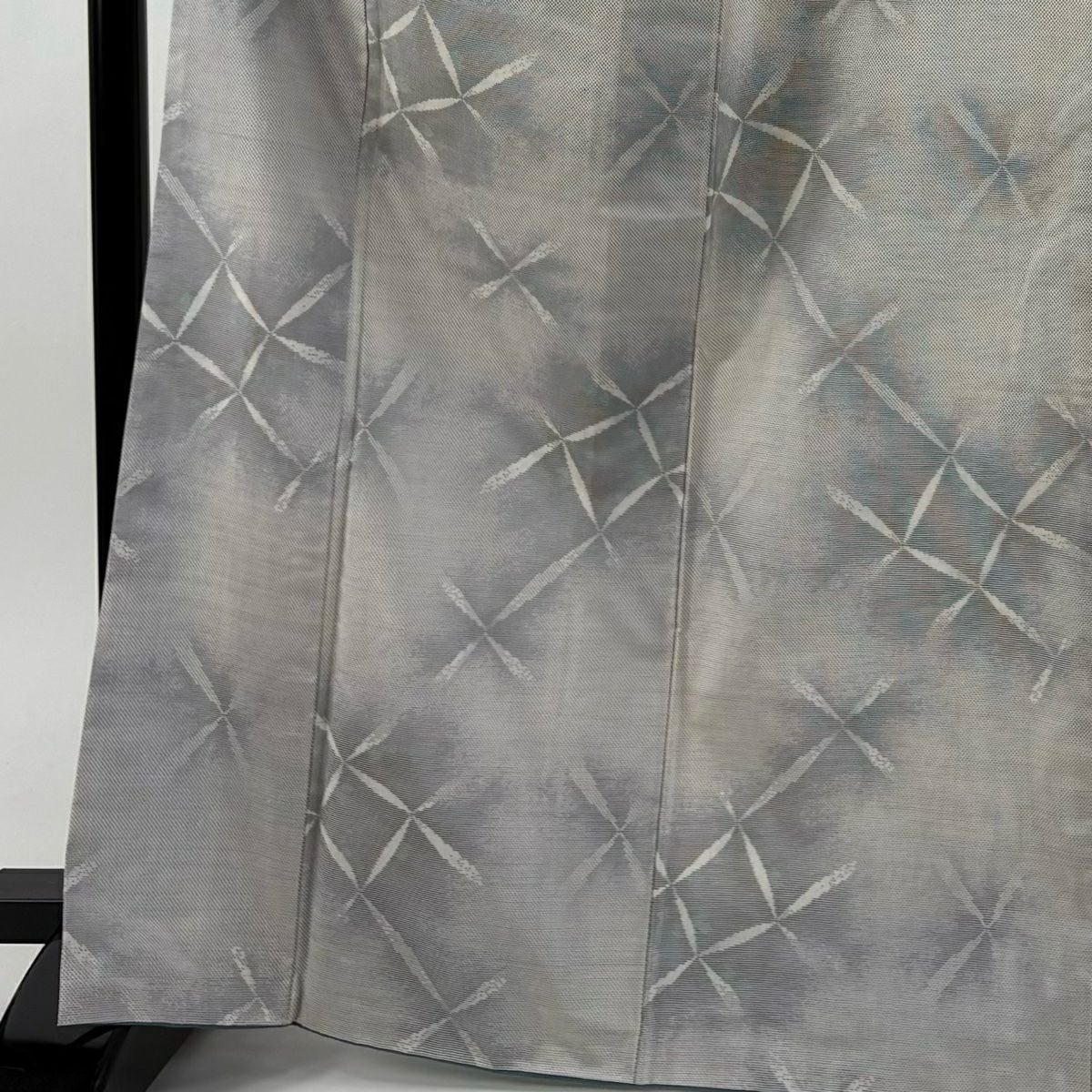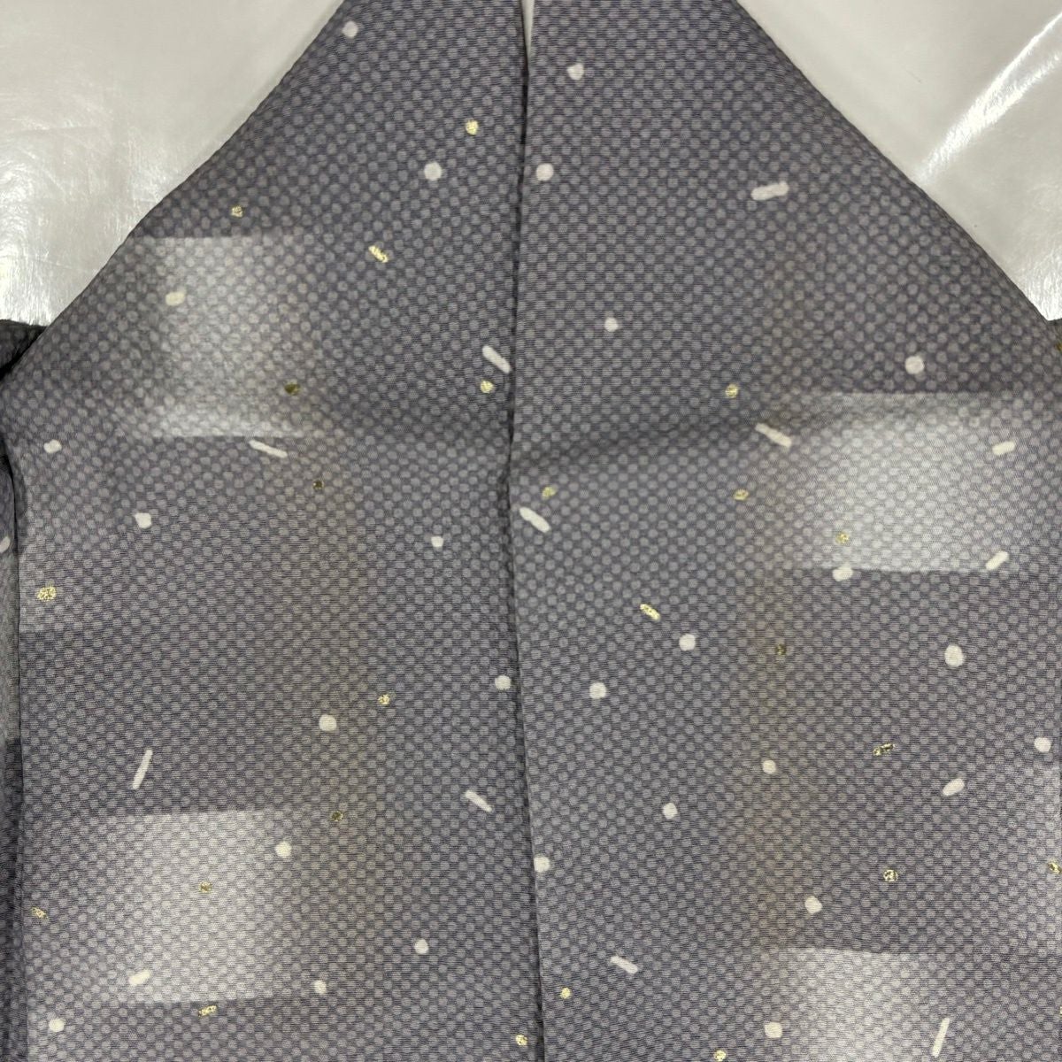 【最終値引き】 70%OFF 紬 身丈169cm 裄丈64cm M 袷 幾何学模様 灰紫 正絹 秀品 K70