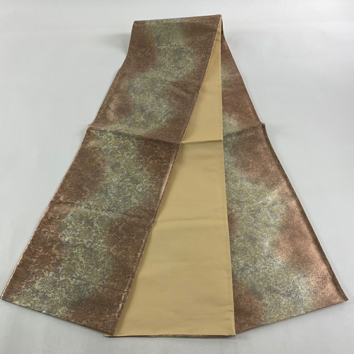 【最終値引き】 77%OFF 【美品】 袋帯 秀品 証紙あり ぼかし柄 草花 箔 薄茶色 全通 正絹 K70