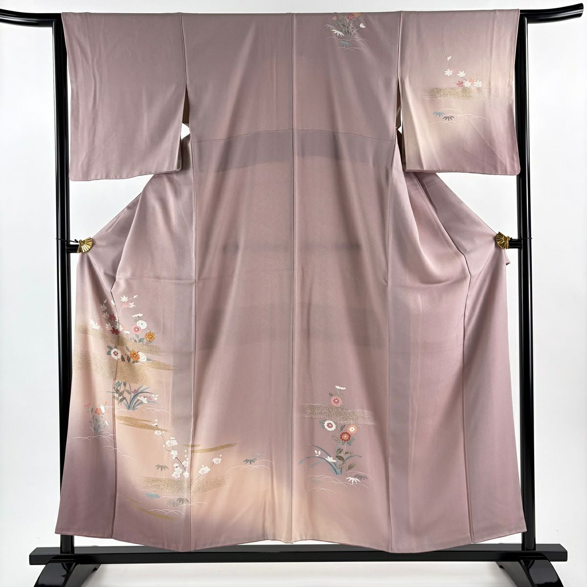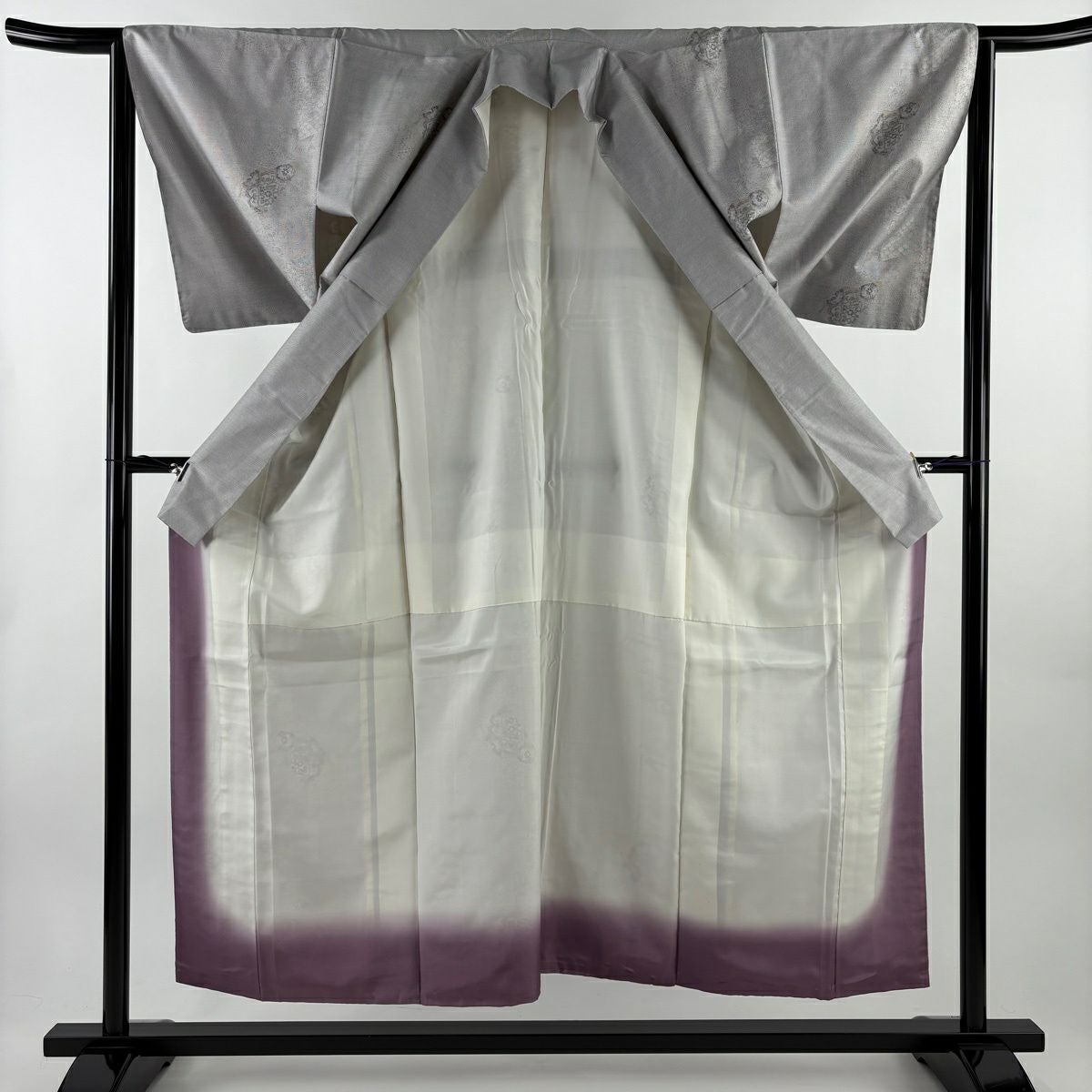 【在庫一掃】 訪問着 身丈154cm 裄丈62.5cm S 袷 色紙 草花 金彩 染め分け 灰紫 正絹 秀品