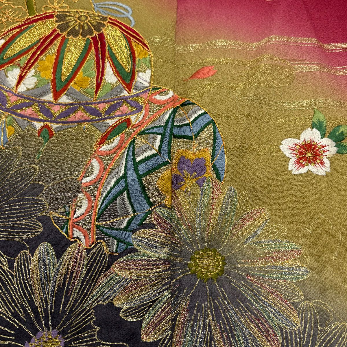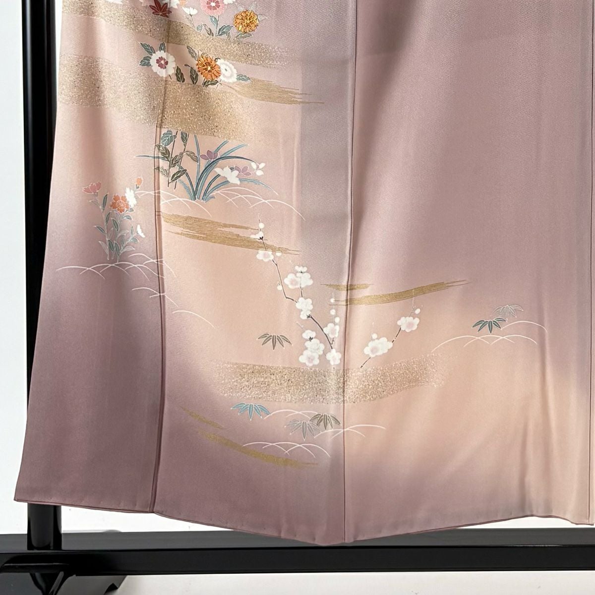 【在庫一掃】 訪問着 身丈159.5cm 裄丈63.5cm S 袷 牡丹 菊 金彩 ぼかし ピンク 正絹 秀品
