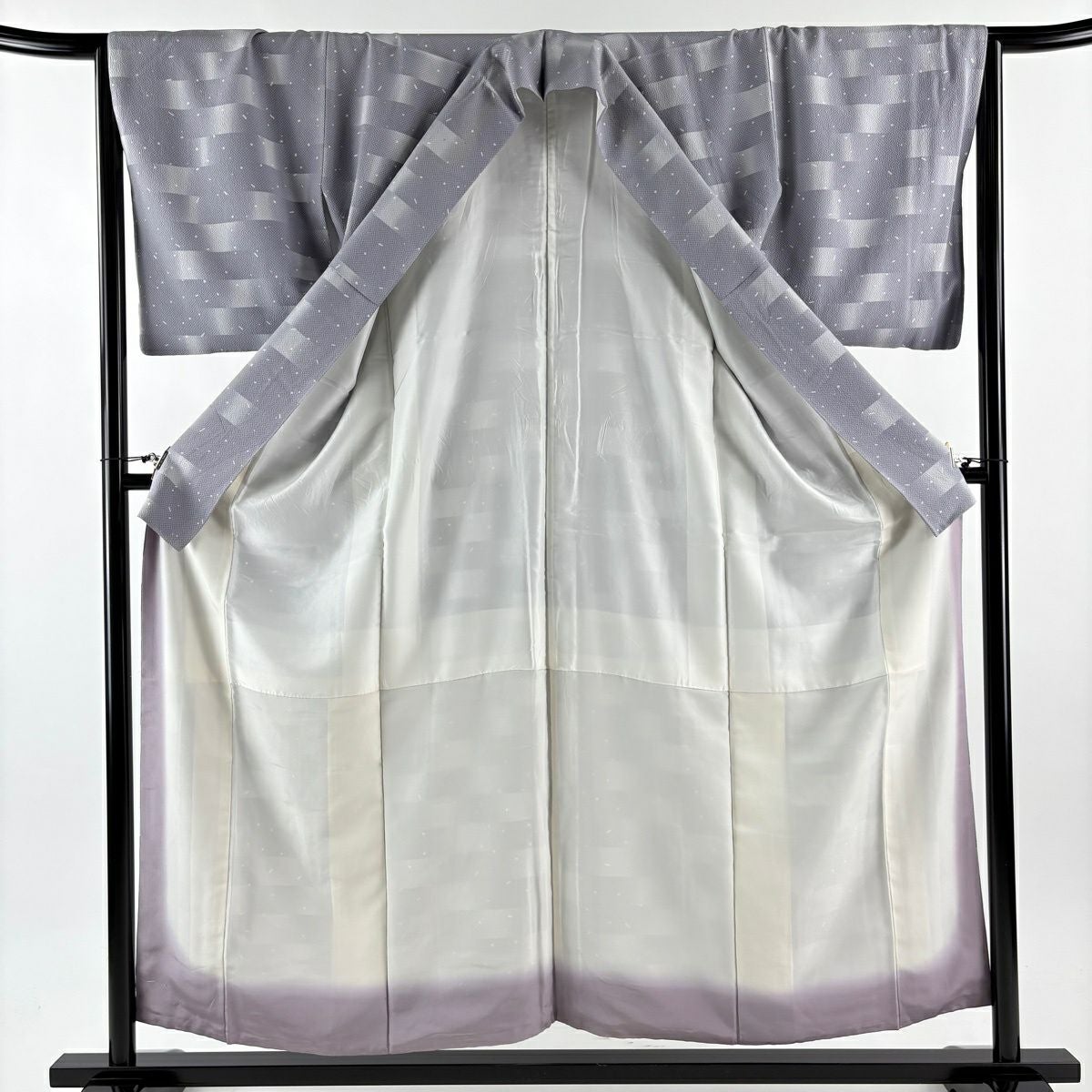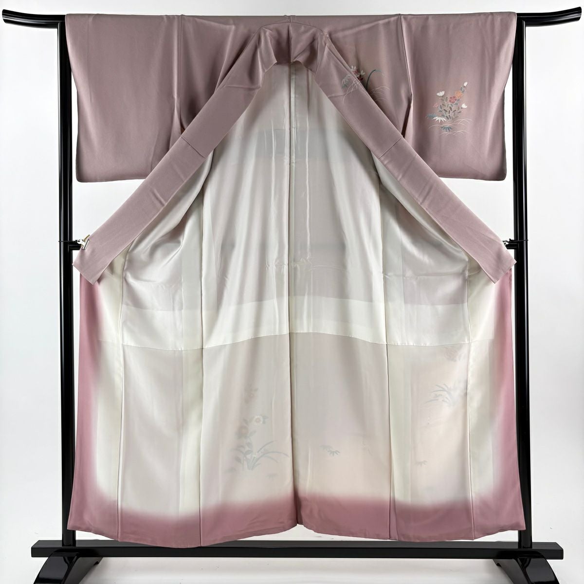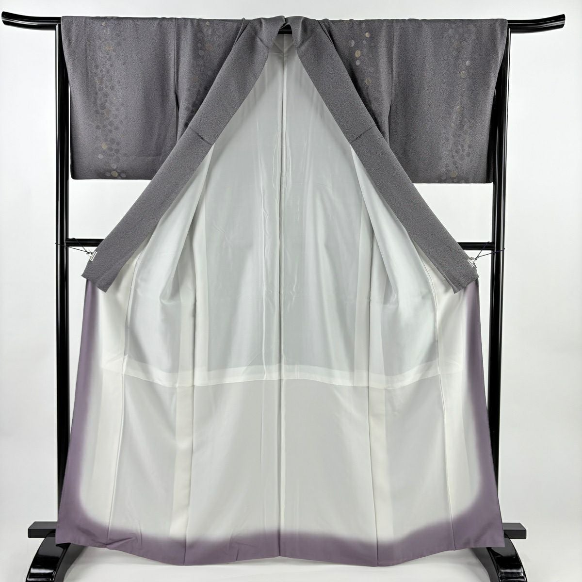 【在庫一掃】 訪問着 身丈155cm 裄丈61.5cm S 袷 笠松 霞 刺繍 金彩 灰紫 正絹 秀品 一つ紋