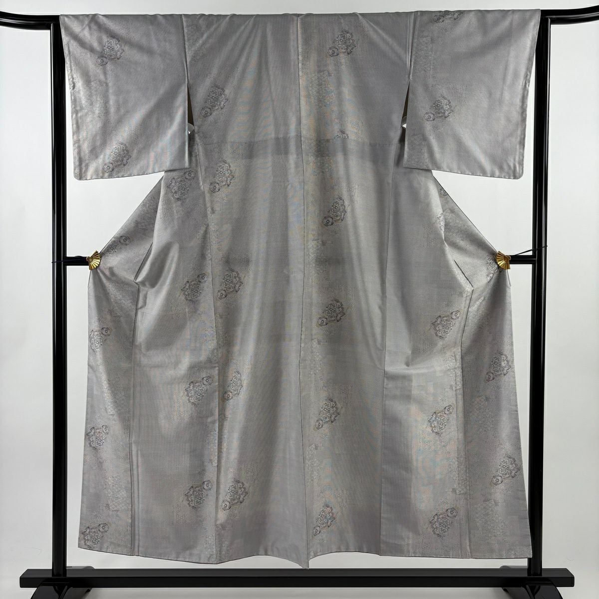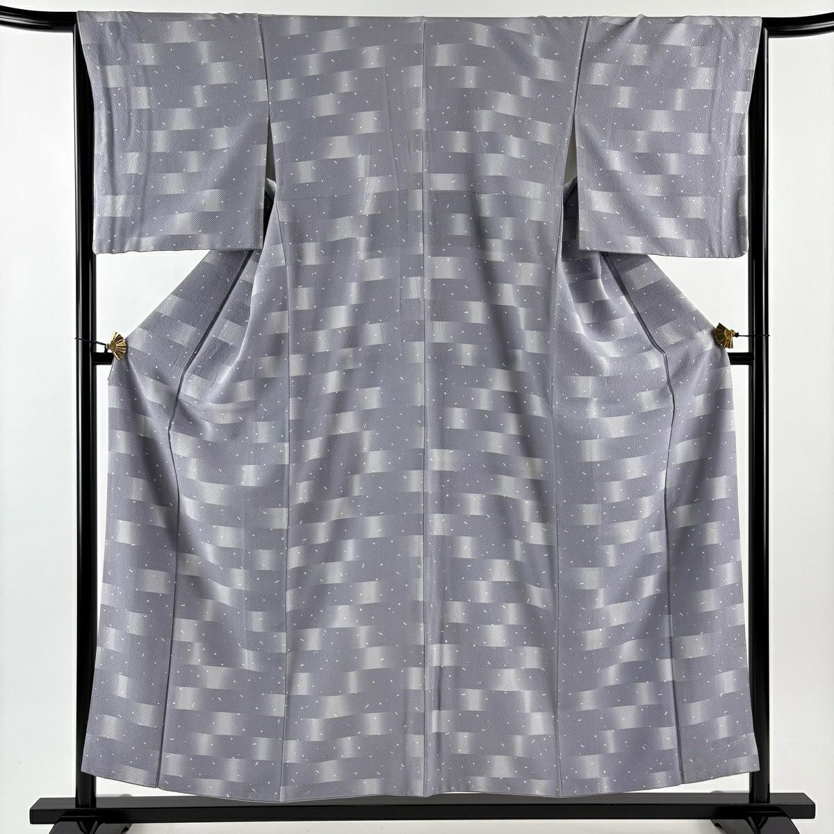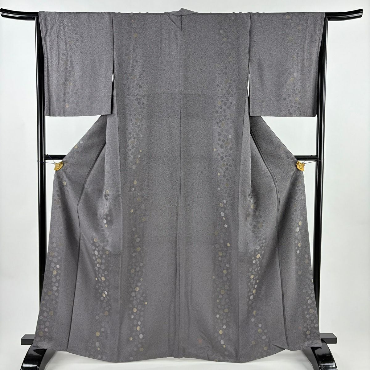 【在庫一掃】 訪問着 身丈155cm 裄丈61.5cm S 袷 笠松 霞 刺繍 金彩 灰紫 正絹 秀品 一つ紋