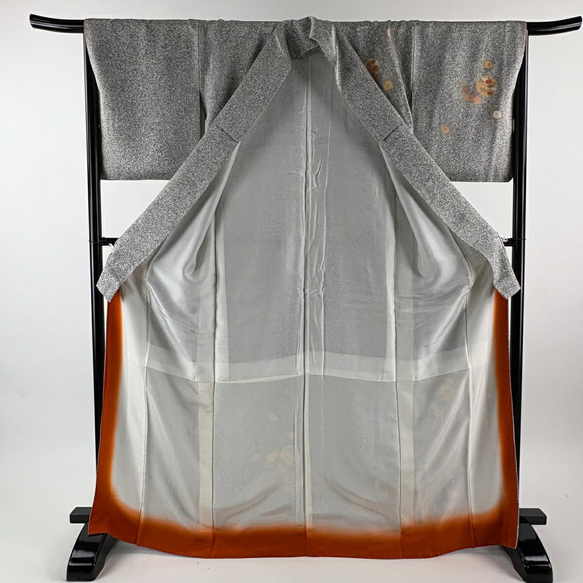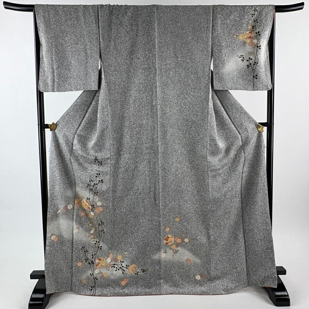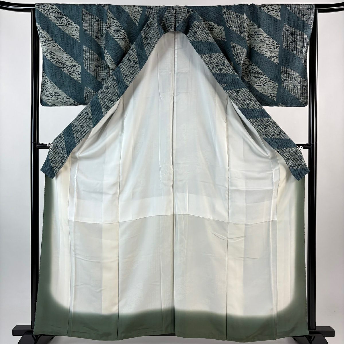 【在庫一掃】 訪問着 身丈155cm 裄丈62.5cm S 袷 草花 流水 染め分け ぼかし 灰緑 正絹 秀品