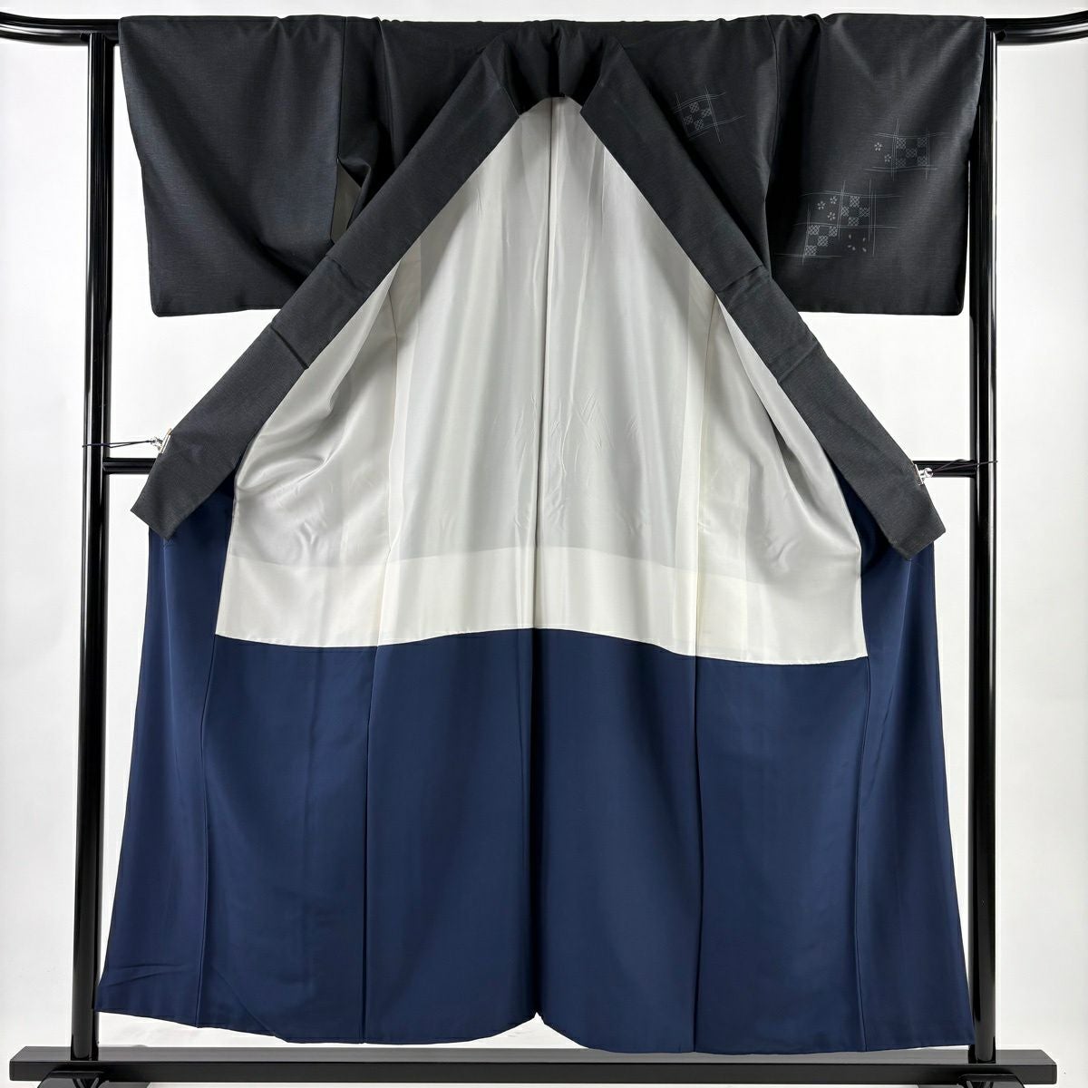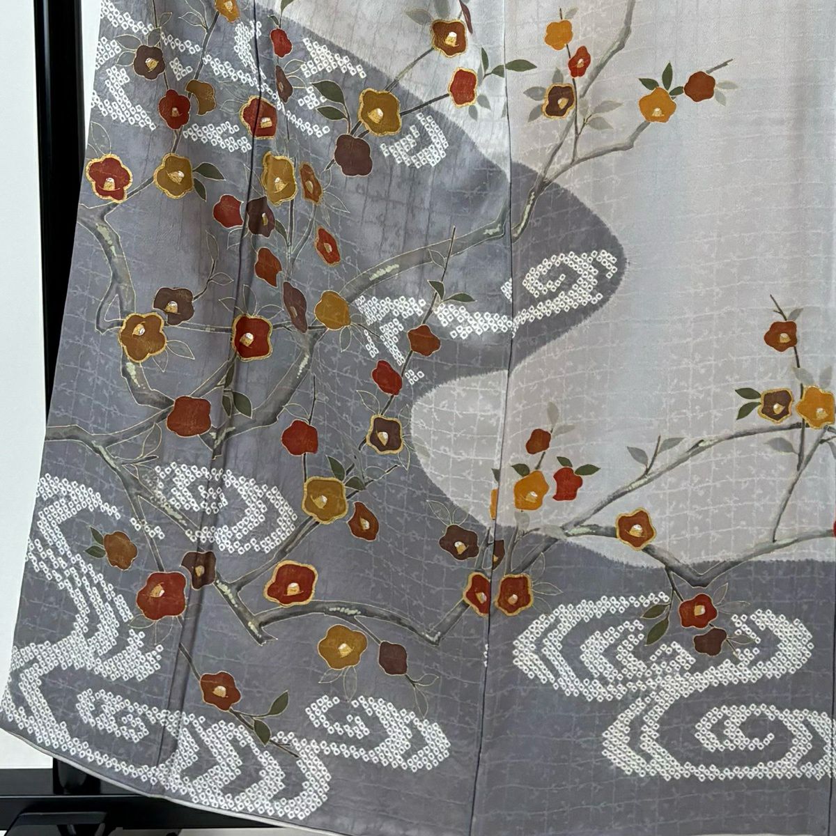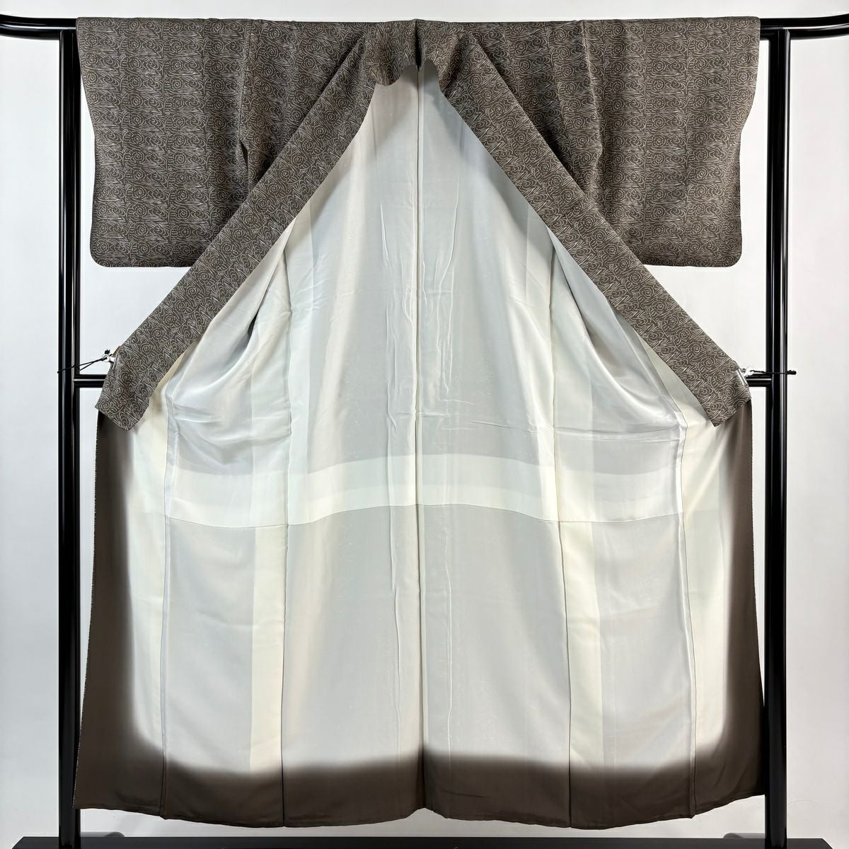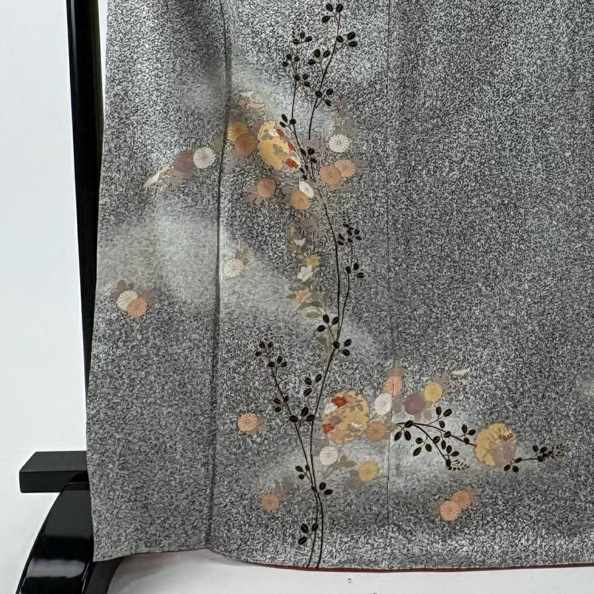 【在庫一掃】 訪問着 身丈155cm 裄丈62.5cm S 袷 草花 流水 染め分け ぼかし 灰緑 正絹 秀品