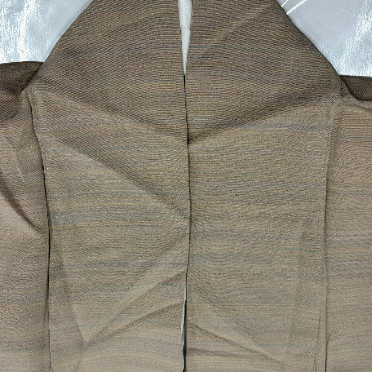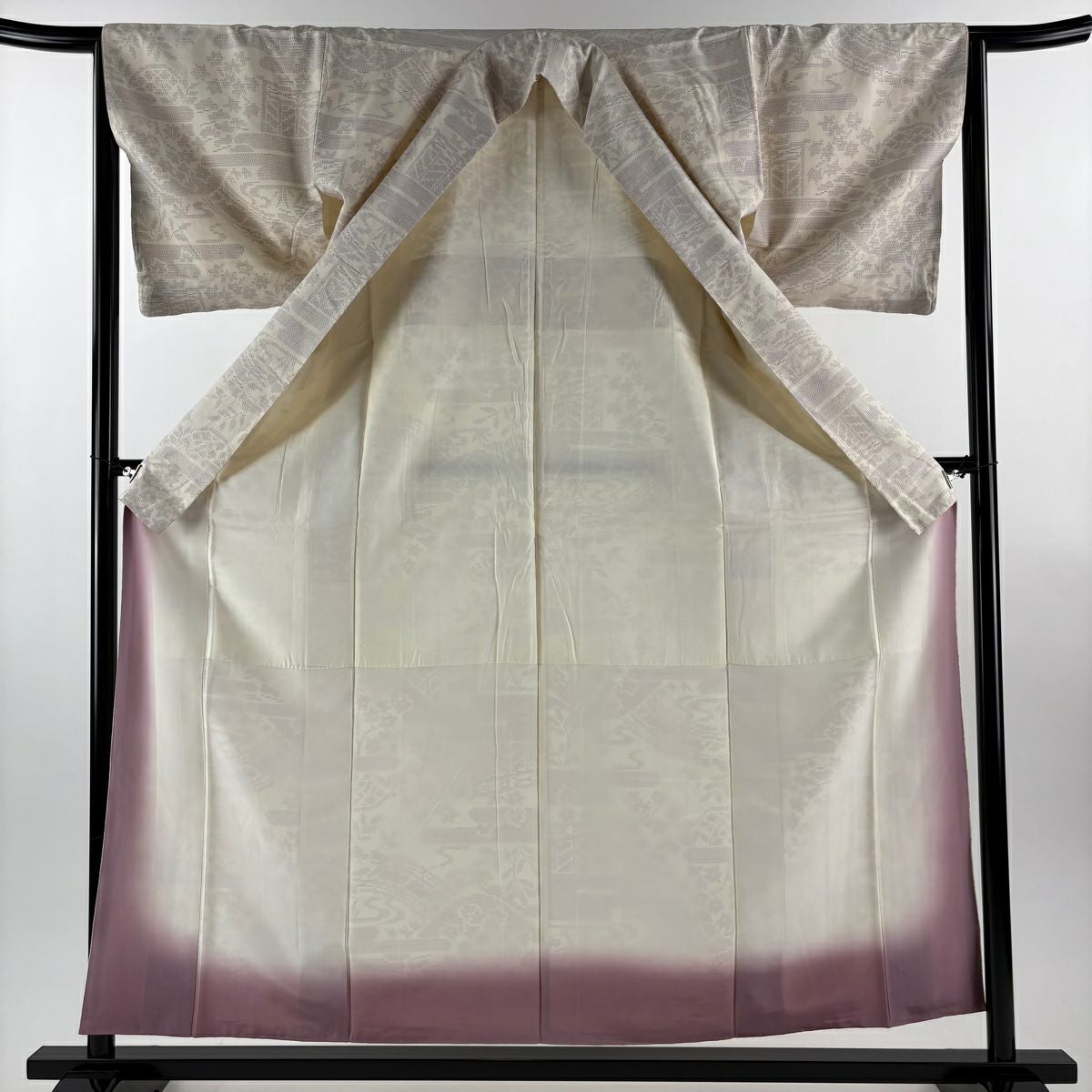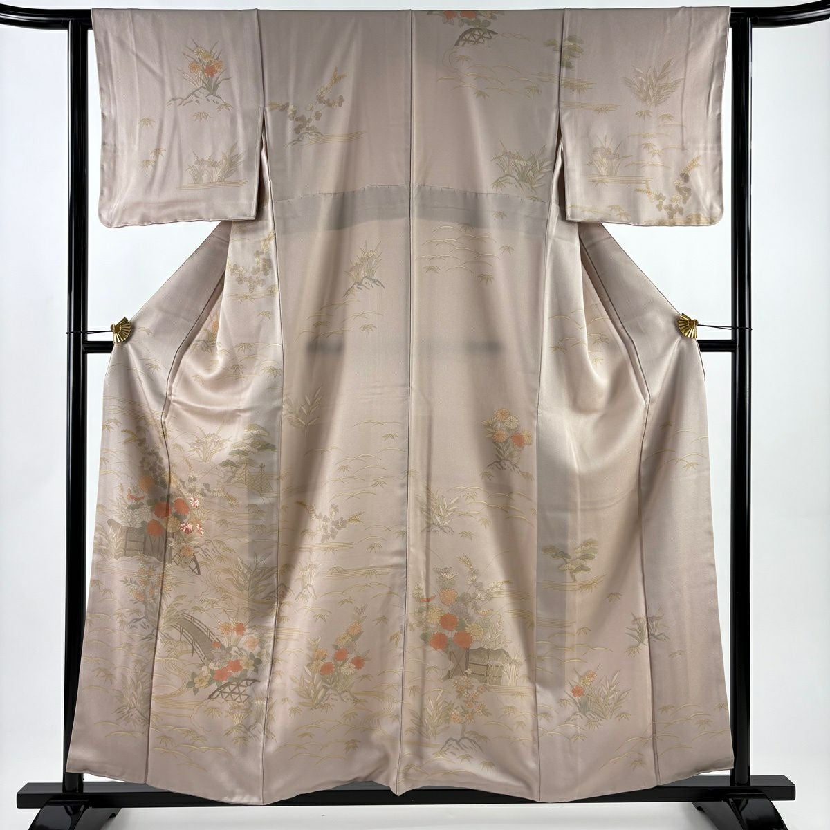 【在庫一掃】 訪問着 身丈159cm 裄丈63cm S 袷 家屋 松竹梅 ぼかし 薄茶色 正絹 秀品 一つ紋