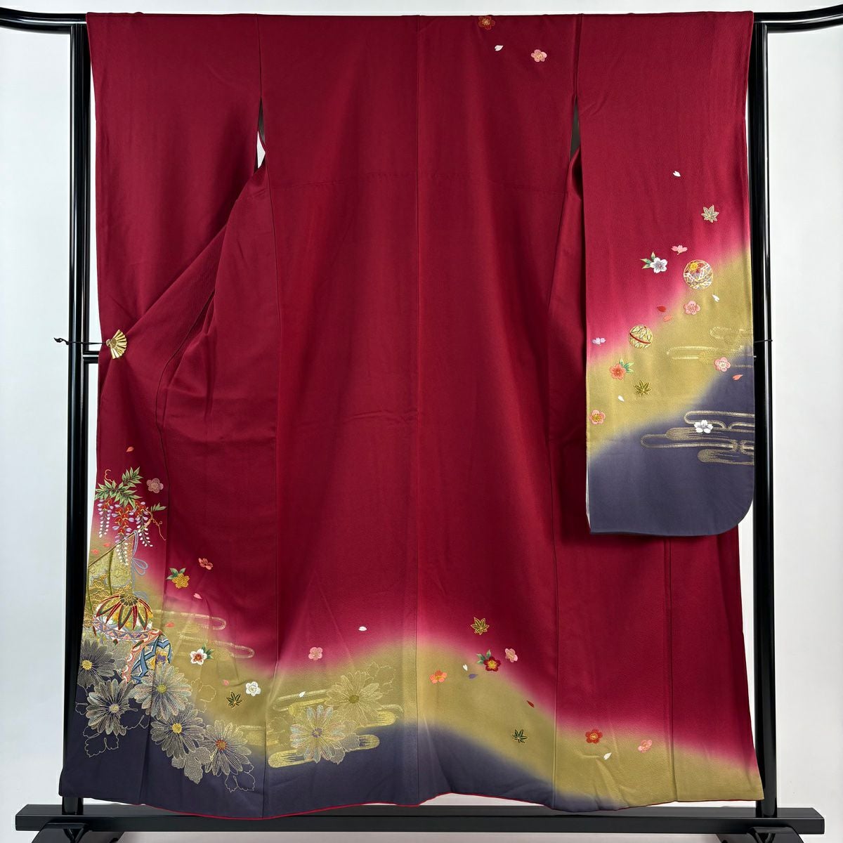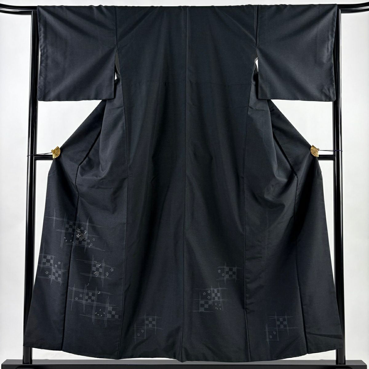 【在庫一掃】 付下げ 身丈160cm 裄丈65cm M 袷 宝尽くし 格子 刺繍 小豆色 正絹 秀品 一つ紋