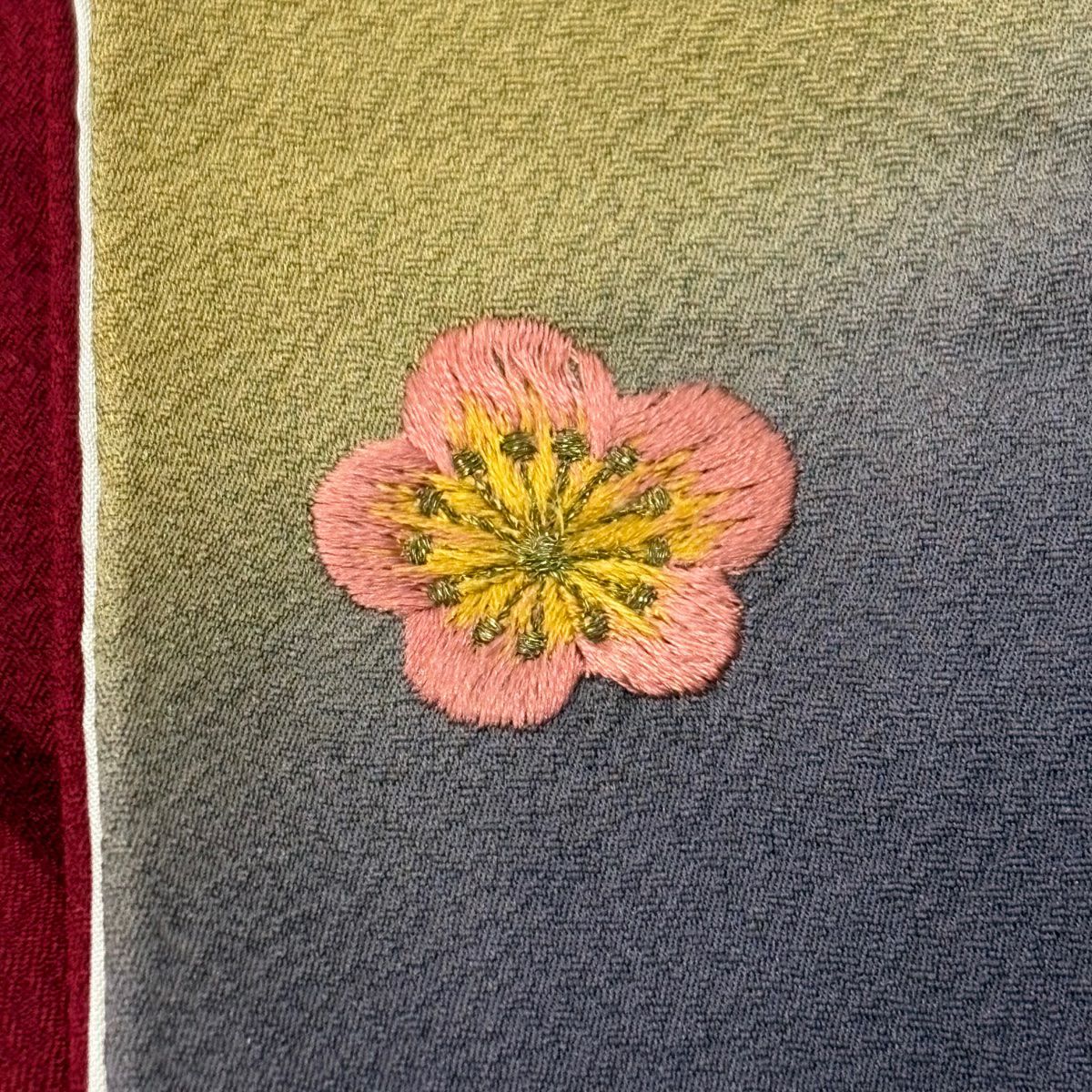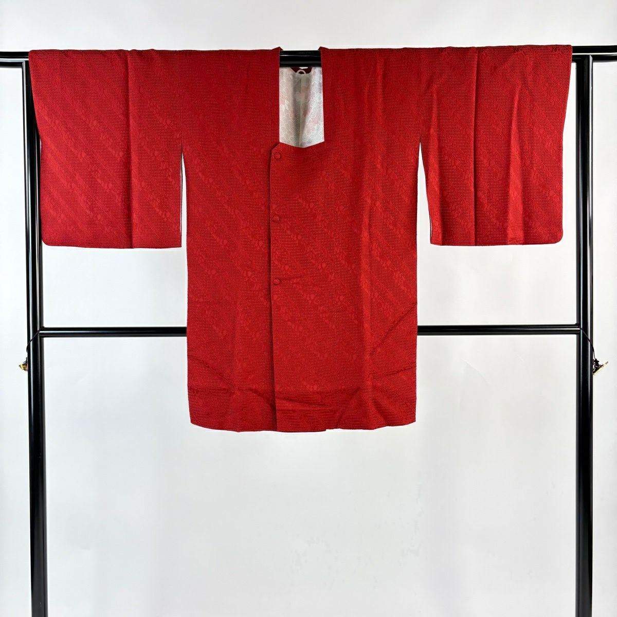 【在庫一掃】 道行 身丈88cm 裄丈64cm M 和装コート 角衿 草花 雪芝 刺繍 箔 茜色 正絹 秀品