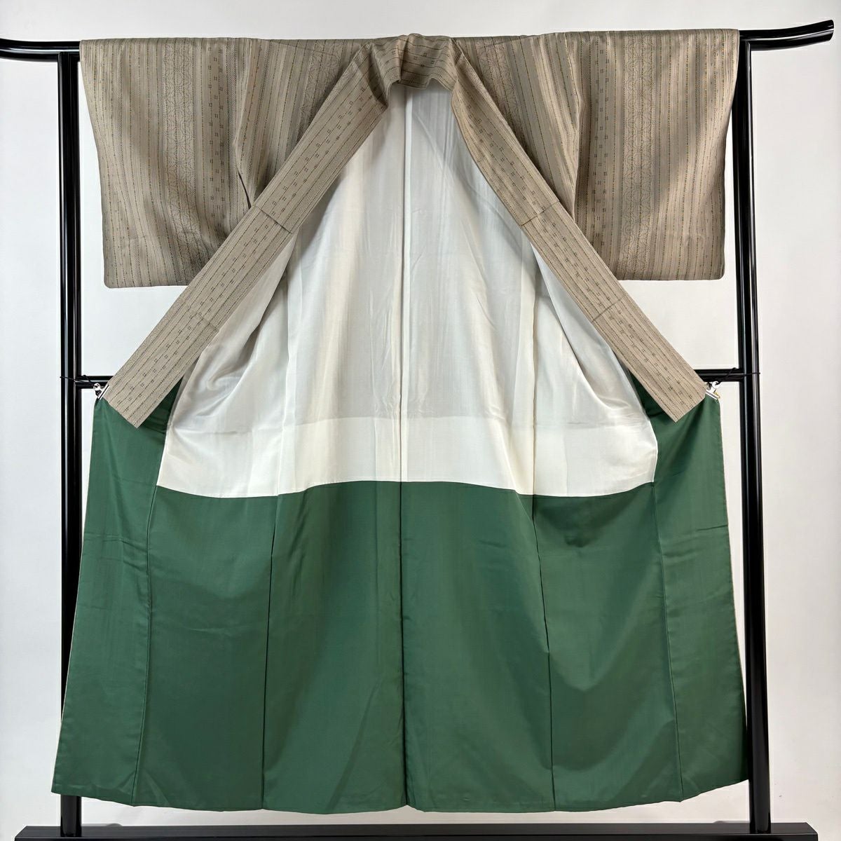 【在庫一掃】 訪問着 身丈151.5cm 裄丈62.5cm S 袷 落款あり 草花 籠目 金彩 鶯色 正絹 秀品