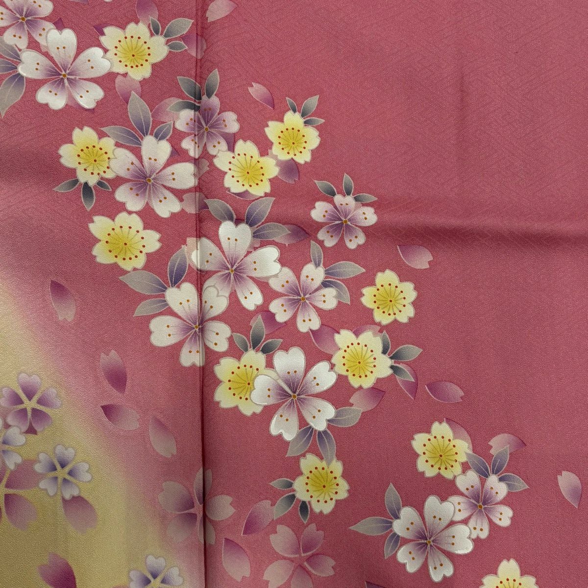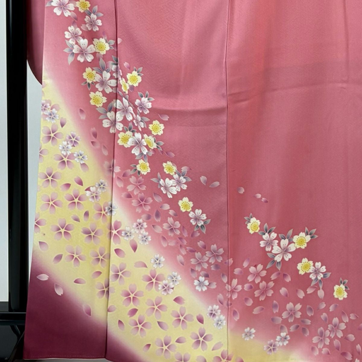 【在庫一掃】 訪問着 身丈164.5cm 裄丈65.5cm M 袷 桜 波 金銀彩 ぼかし ピンク 正絹 秀品
