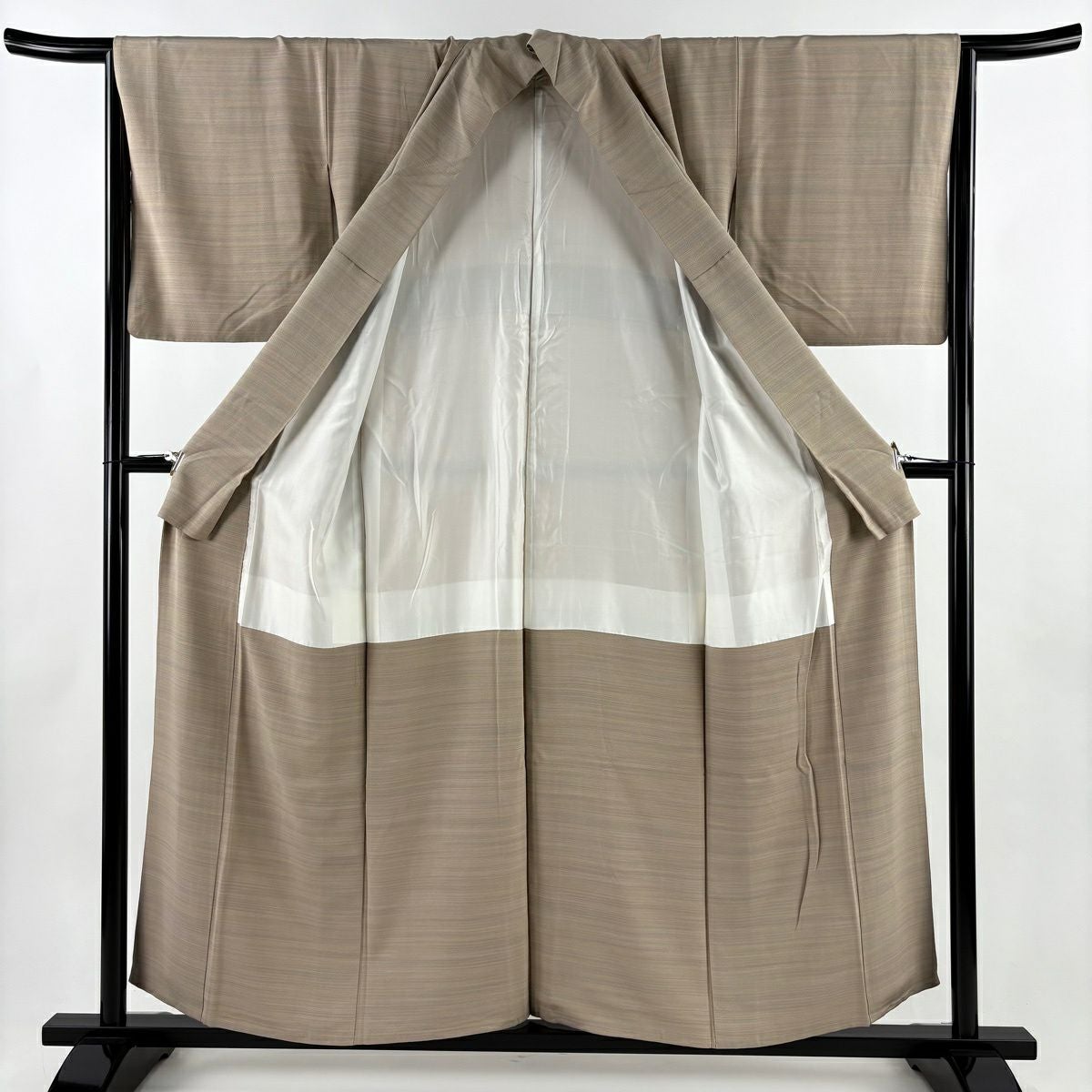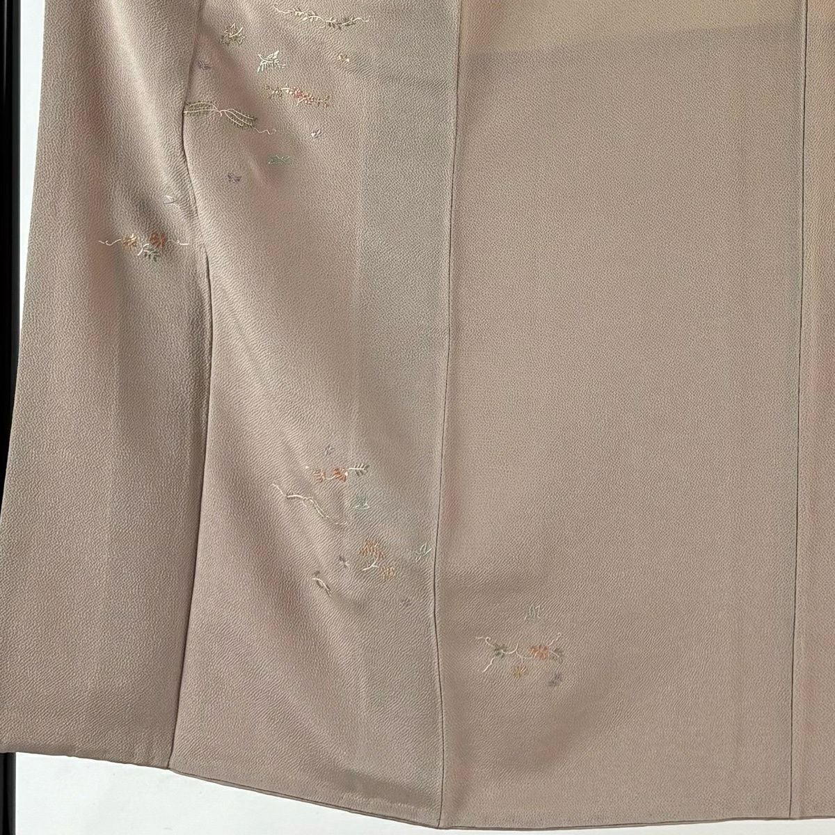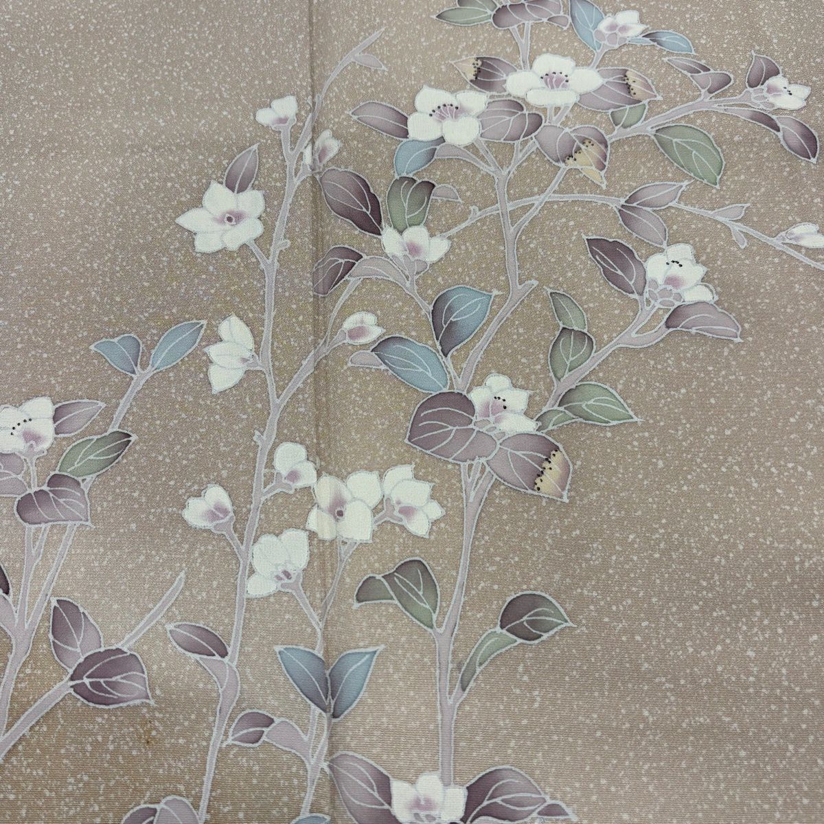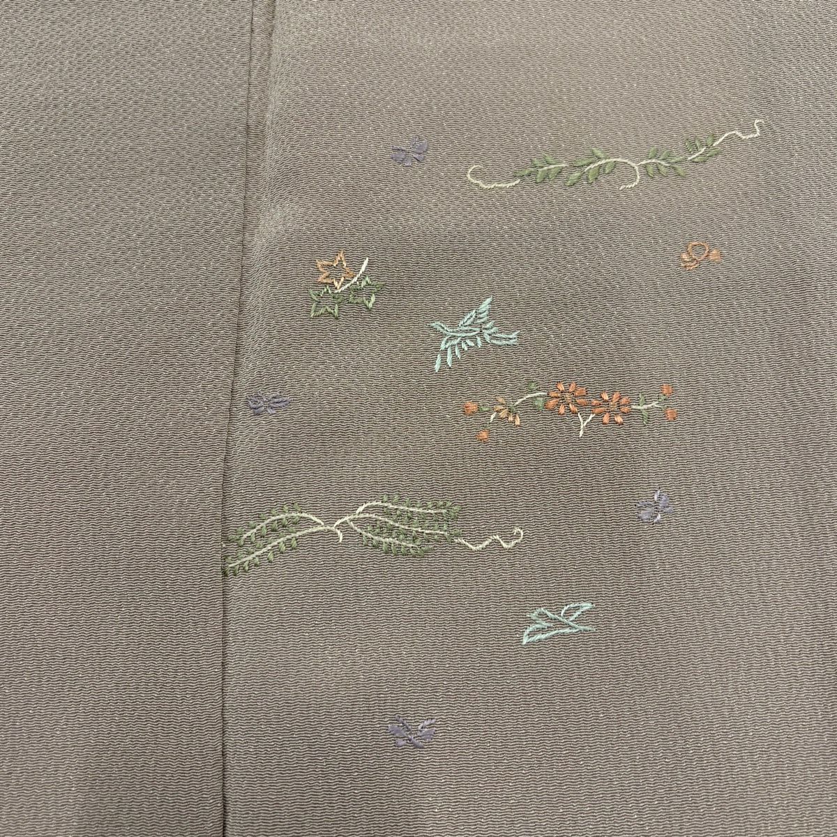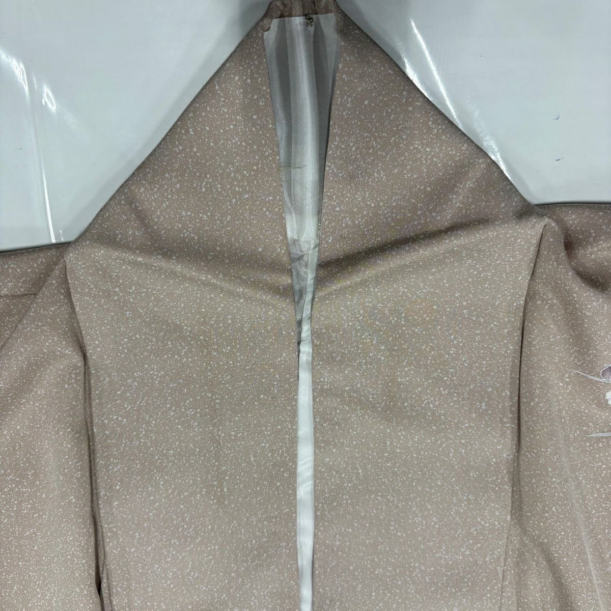 【在庫一掃】 付下げ 身丈152cm 裄丈63cm S 袷 扇 草花 刺繍 絞り 薄茶色 正絹 秀品 一つ紋