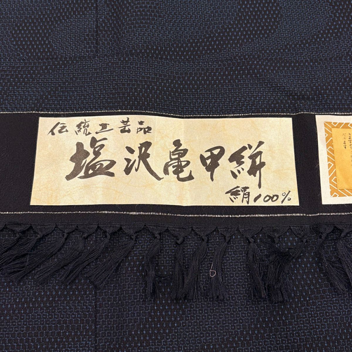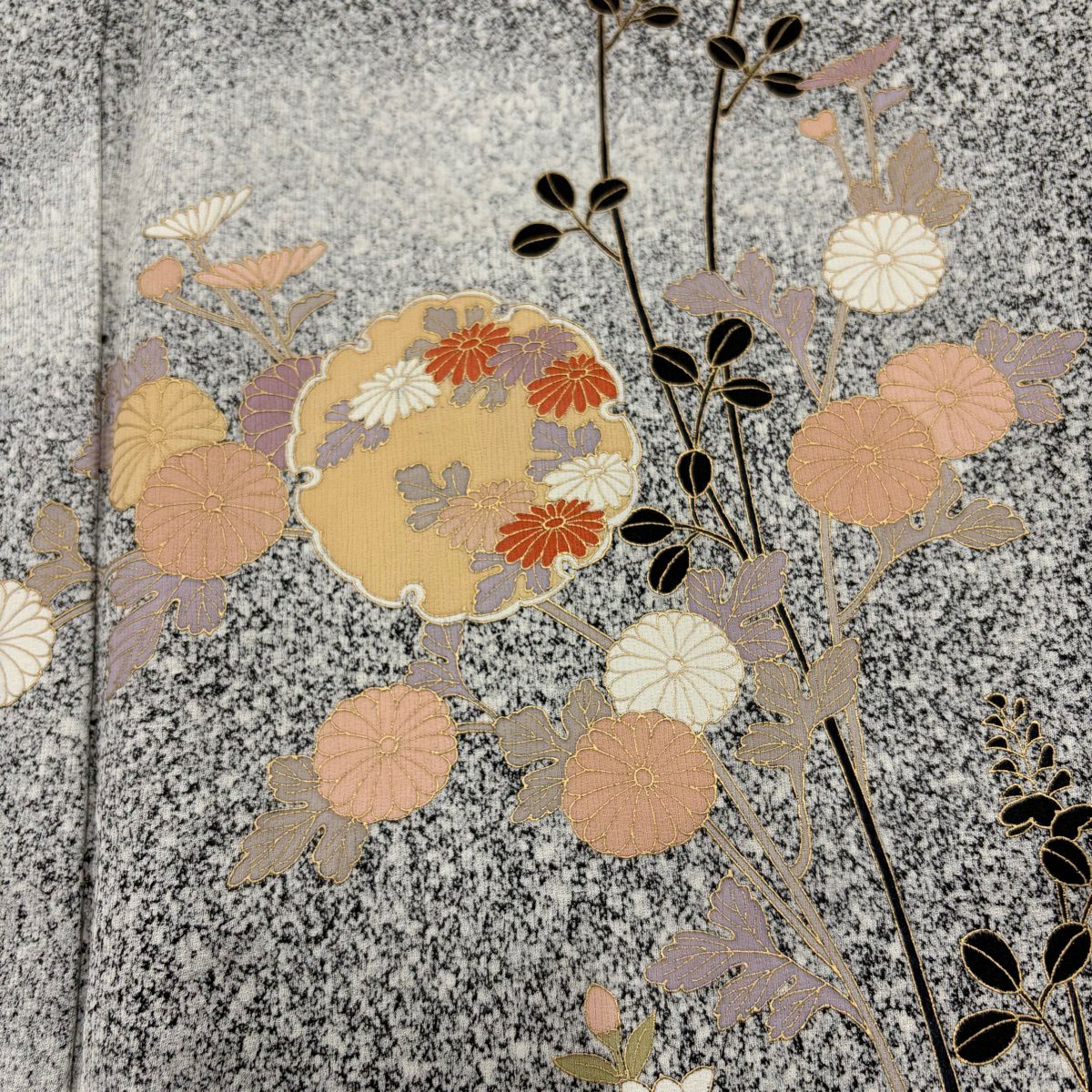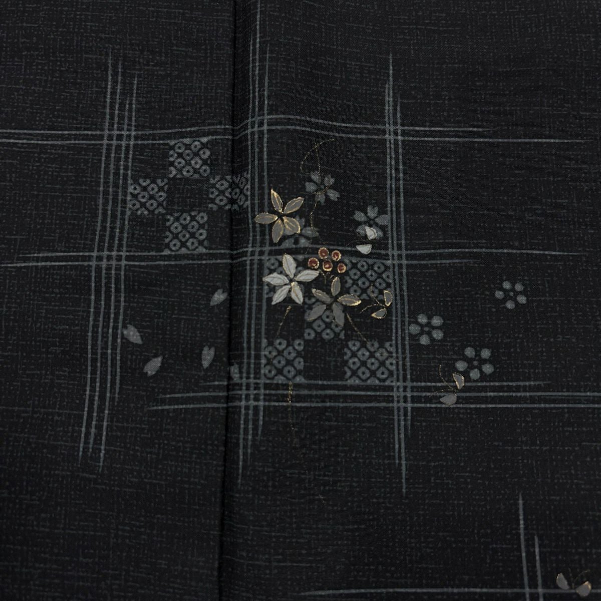 【在庫一掃】 小紋 身丈153cm 裄丈61cm S 袷 南部幸雄 落款あり 菊 笹 縮緬 灰紫 正絹 秀品
