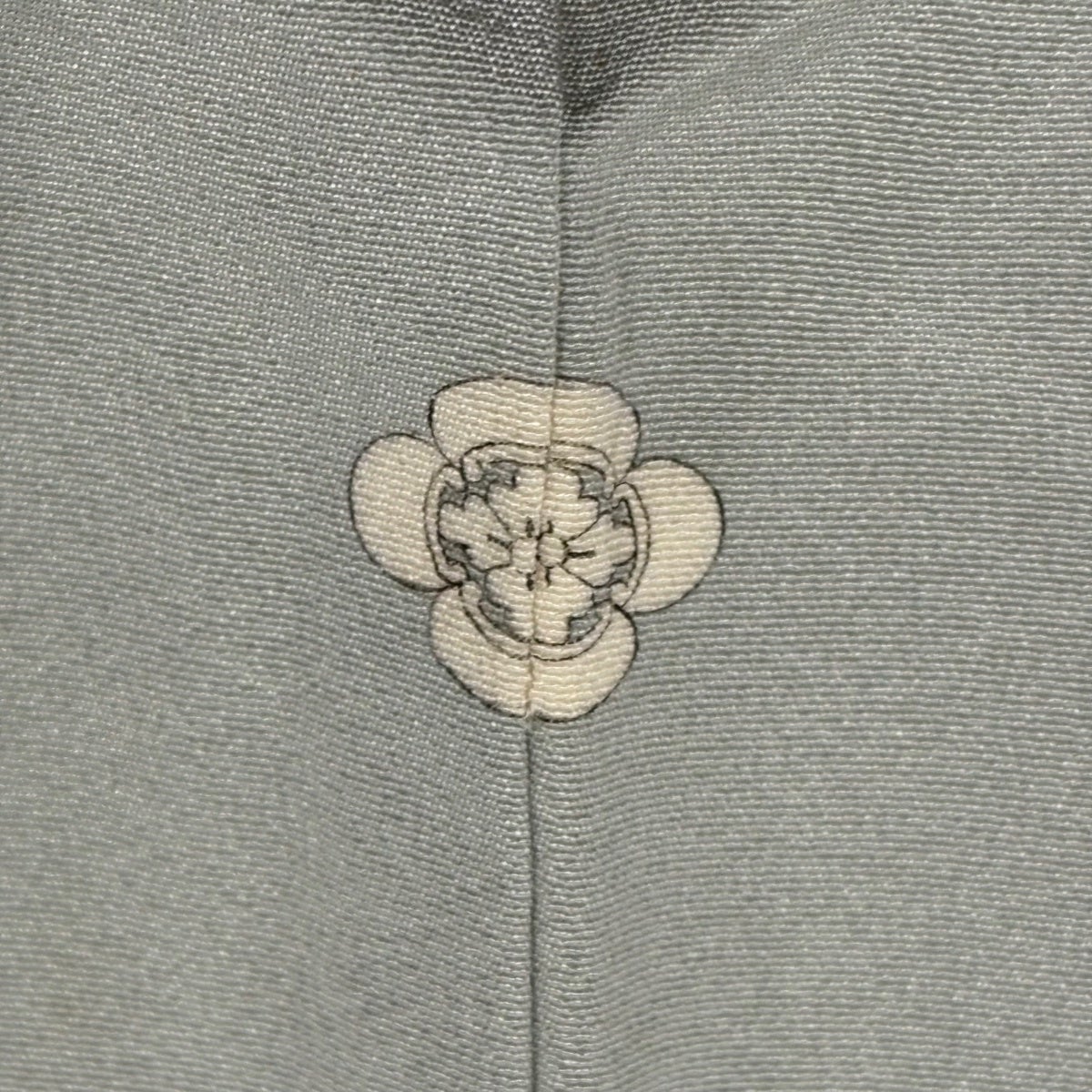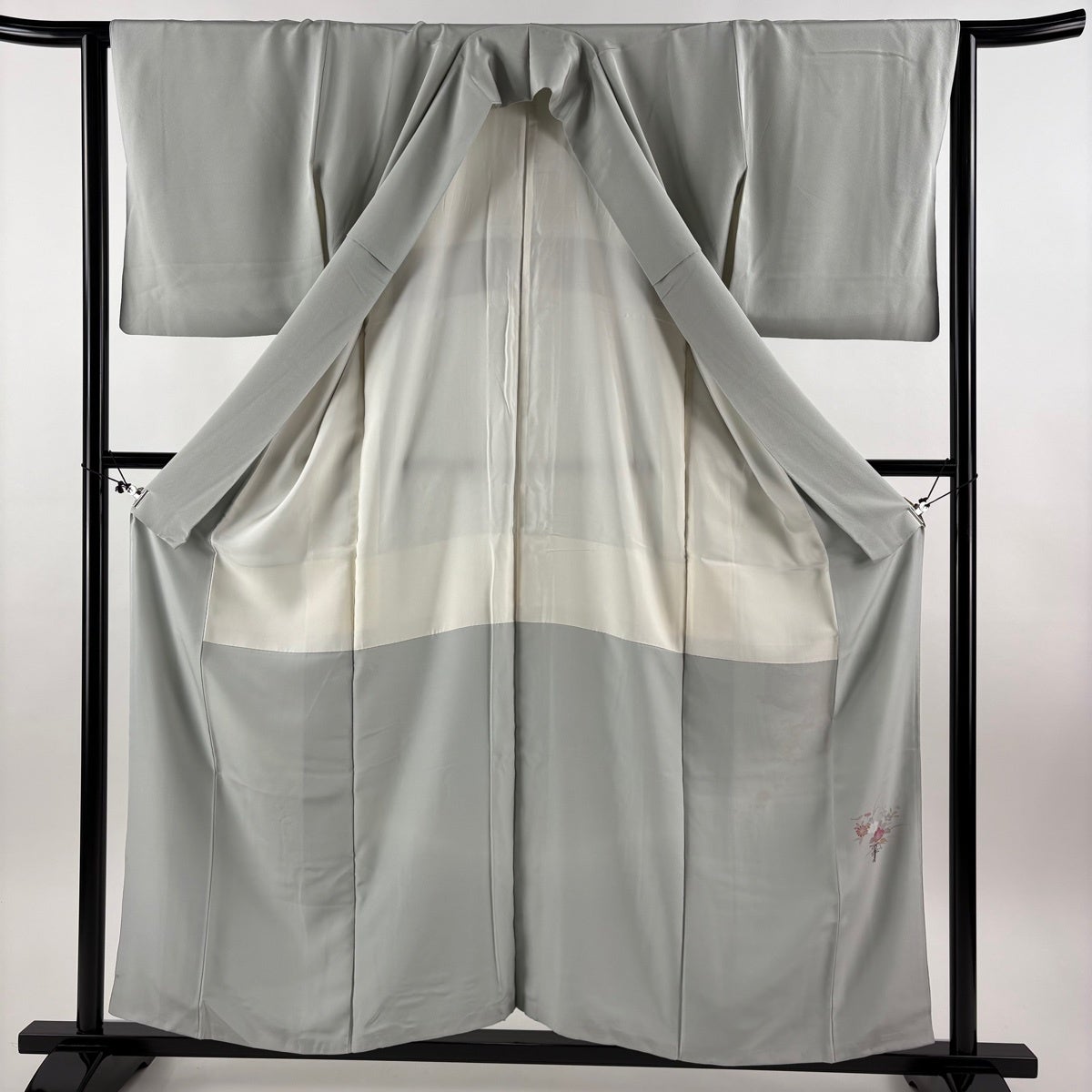 付下げ 身丈160.5cm 裄丈64cm M 袷 蘇州刺繍 御所車 雲文 刺繍 ぼかし 灰緑 正絹 秀品 一つ紋
