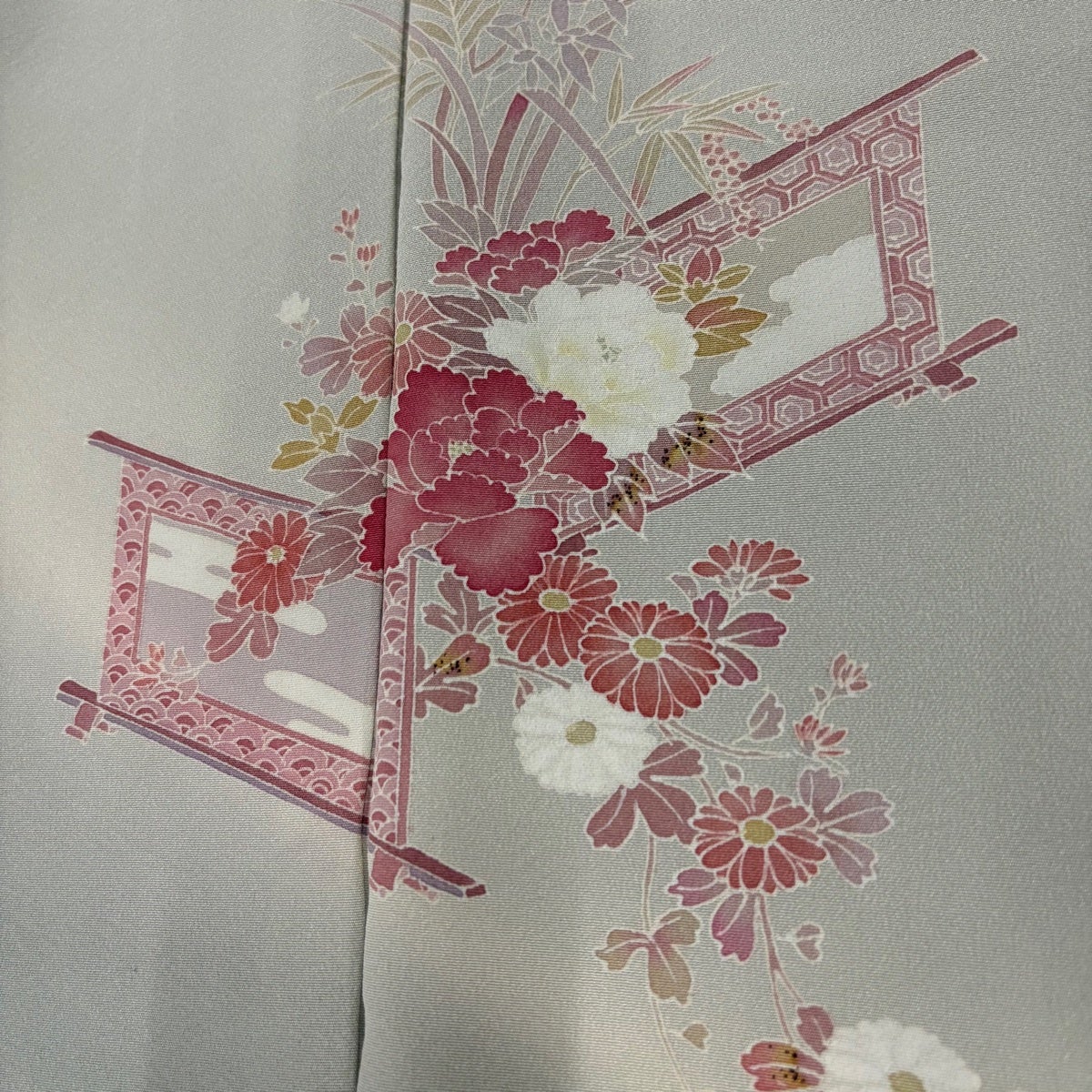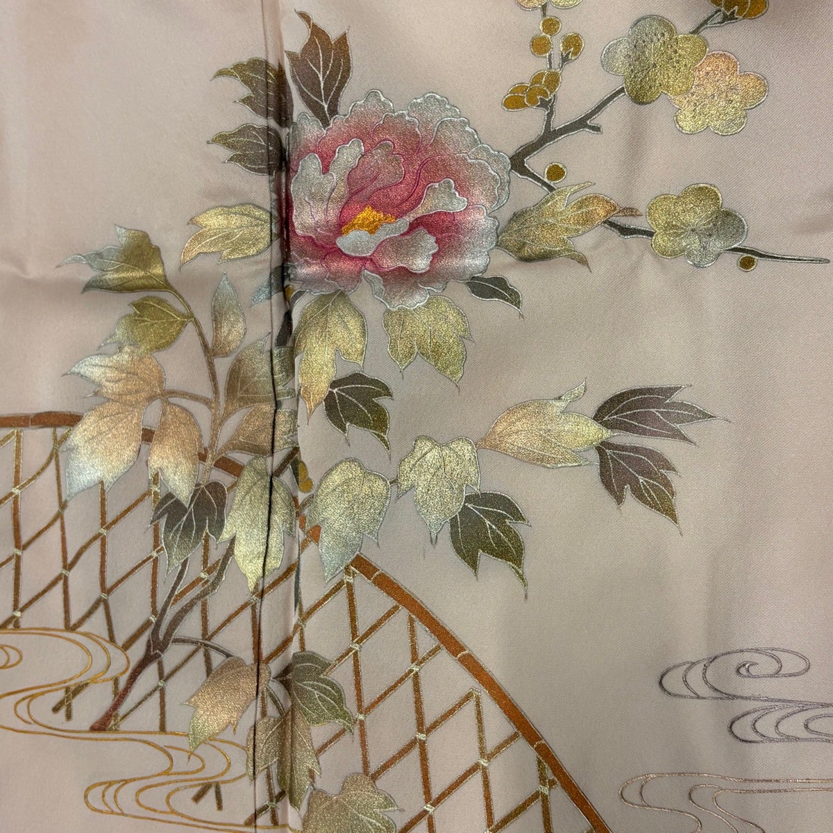 付下げ 身丈158cm 裄丈63.5cm S 袷 和田光正 落款あり 牡丹 籬 金銀彩 薄ピンク 正絹 秀品